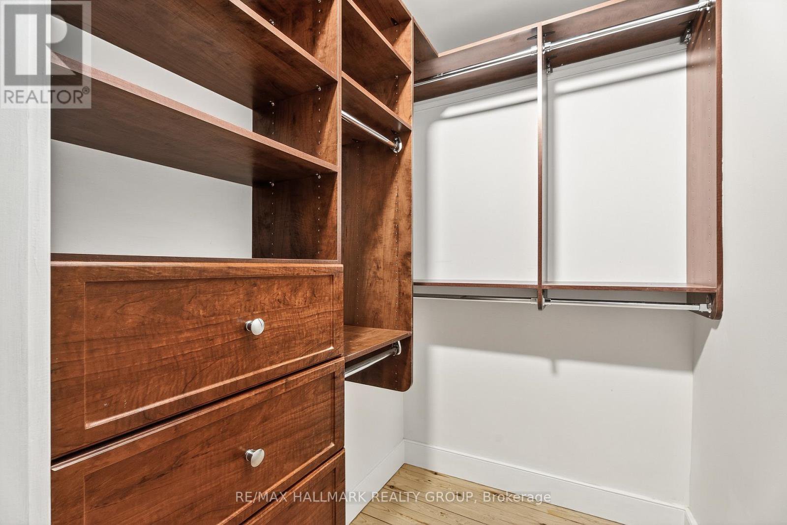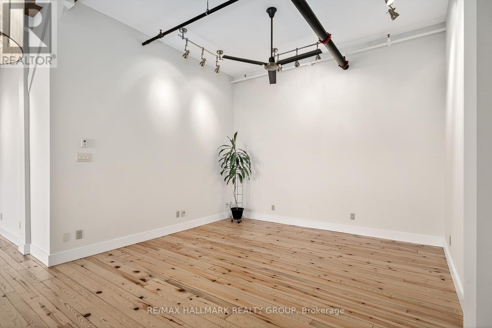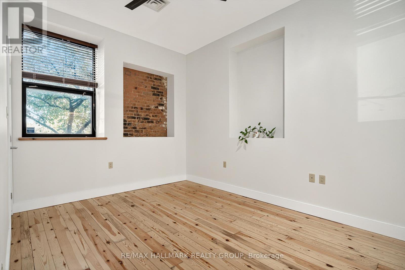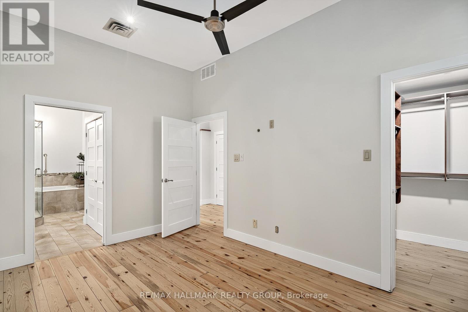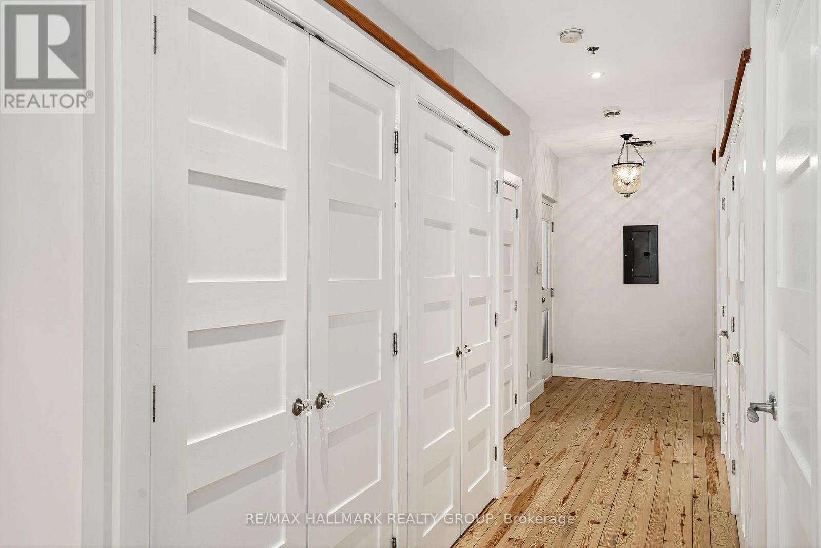 ONE OF A KIND CONDO overlooking the Mississippi River in the heart of Almonte! Welcome to Thornburn Mill, a historic and highly sought-after building that blends timeless character with modern comfort. This stunning 1 bedroom, 2 bathroom corner unit offers 1,177 sq. ft. of beautifully renovated living space featuring soaring high ceilings, natural rustic hardwood floors, and an abundance of natural light throughout. Step inside to a bright, welcoming entrance leading to the primary bedroom, complete with a custom walk-in closet and a luxurious 5-piece ensuite showcasing double sinks with granite counters, a glass shower, a deep soaker tub, and in-suite laundry. The grand hallway leads to a wall full of convenient storage, perfect for keeping everything organized, as well as a stylish powder room ideal for guests. The open concept living area is perfect for both entertaining and everyday living. A custom kitchen features newer stainless steel appliances, granite countertops, custom cabinetry, under-cabinet lighting, and a sit-up counter. The spacious living room centers around a cozy fireplace and large windows with breathtaking river views. The extra living space is generous and versatile, easily spacious enough for a dining room & a home office, den, or a future guest space. Step onto your private wraparound balcony, a rare feature that provides privacy and stunning views of the river and surrounding greenery, perfect for relaxing or entertaining. Additional highlights include one conveniently located parking spot, a large storage locker, and a pet-friendly, smoke-free building that radiates charm and tranquility. Located just steps from Almonte's vibrant downtown, you'll enjoy easy access to shops, restaurants, cafés, scenic walking trails, and the town's historic beauty. This exceptional condo combines heritage character with modern finishes, offering a truly unique living experience.
