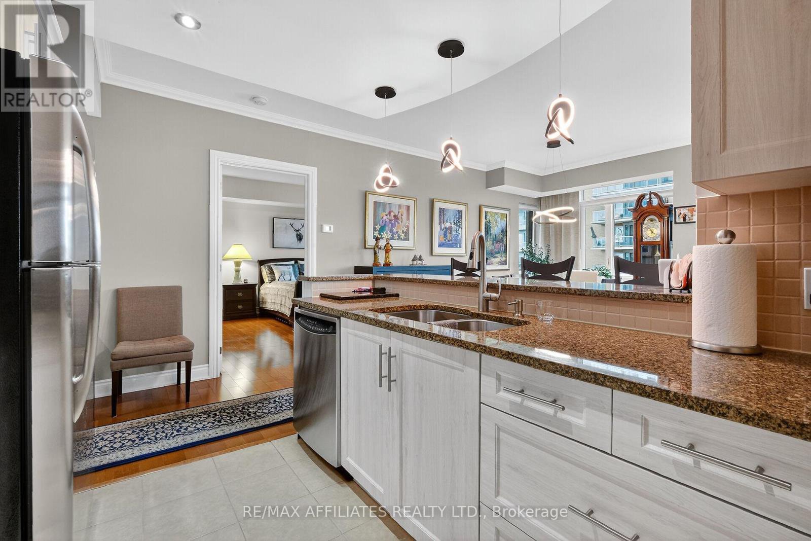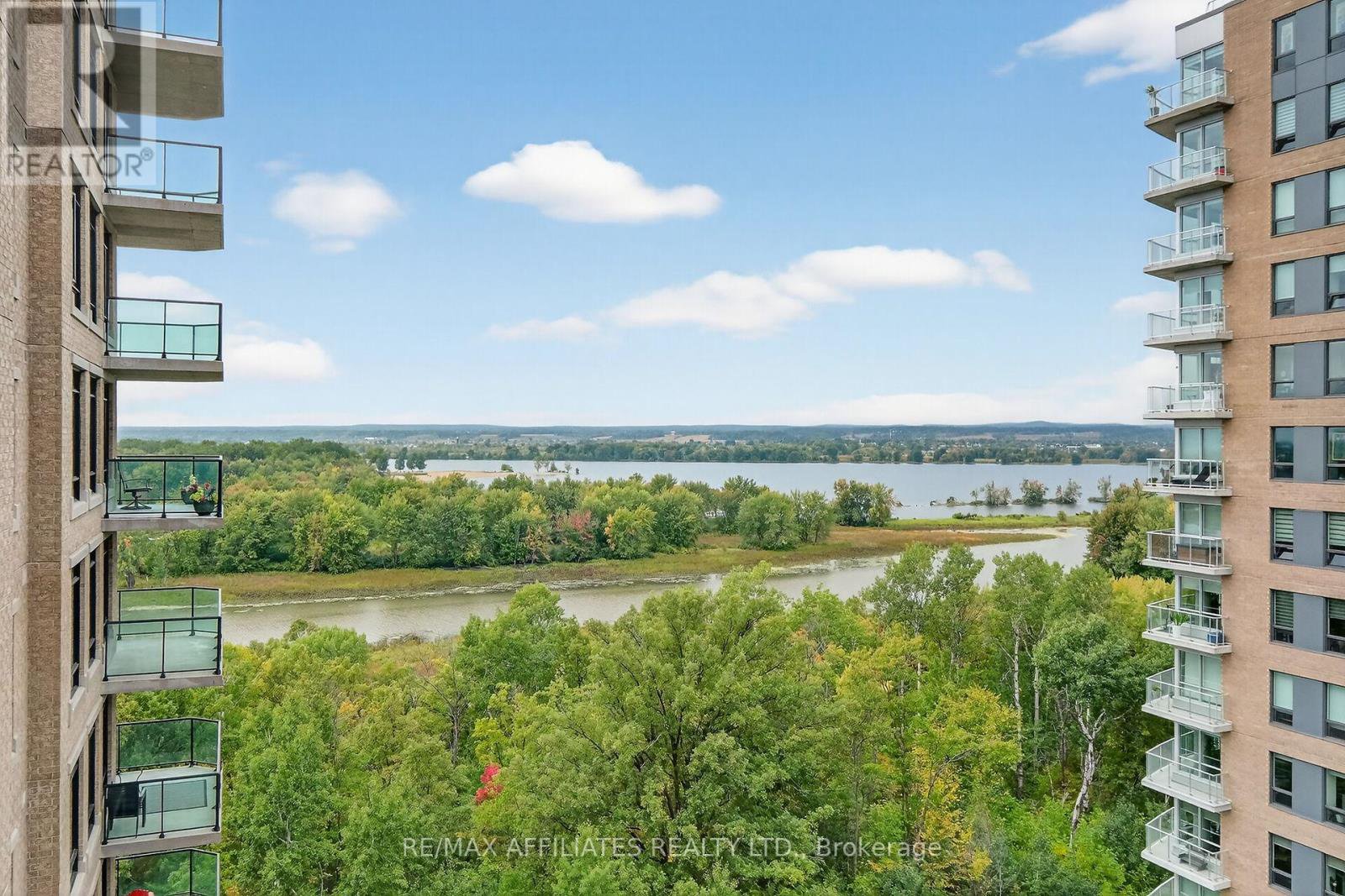 Stunning 2-Bedroom, 2-Bathroom Corner Condo with Exceptional Panoramic Views. Discover elevated living in this immaculate 9th-floor corner unit, offering sweeping vistas of the Ottawa River, Petrie Island, and sun-filled east and south exposures. Designed to impress, this move-in-ready condo features a generous wraparound balcony-perfect for relaxing, entertaining, and taking in the spectacular surroundings. Inside, an updated kitchen awaits, complete with granite countertops, LED lighting, and a convenient microwave hood fan. The open-concept living and dining areas boast rich hardwood flooring, an elegant electric fireplace, and a wall-mounted TV for added convenience. The spacious primary bedroom offers comfort and privacy with a walk-in closet and a luxurious 4-piece ensuite featuring a granite vanity, separate shower, and stylish tile flooring. A bright second bedroom with hardwood flooring and a double closet is ideal for guests, a home office, or family. The second full bathroom also includes a granite countertop. Additional highlights include a tiled foyer with a double closet, in-unit laundry with extra storage, one underground parking space, and a large private locker. Residents enjoy a well-managed building with excellent amenities, including a fitness centre, party room, and outdoor BBQ/lounge area. Condo fees conveniently cover heat, hydro, building insurance, common area maintenance, and reserve fund contributions. Perfectly situated just steps from scenic Ottawa River trails and moments from shopping, transit, and more. Status certificate available upon request.