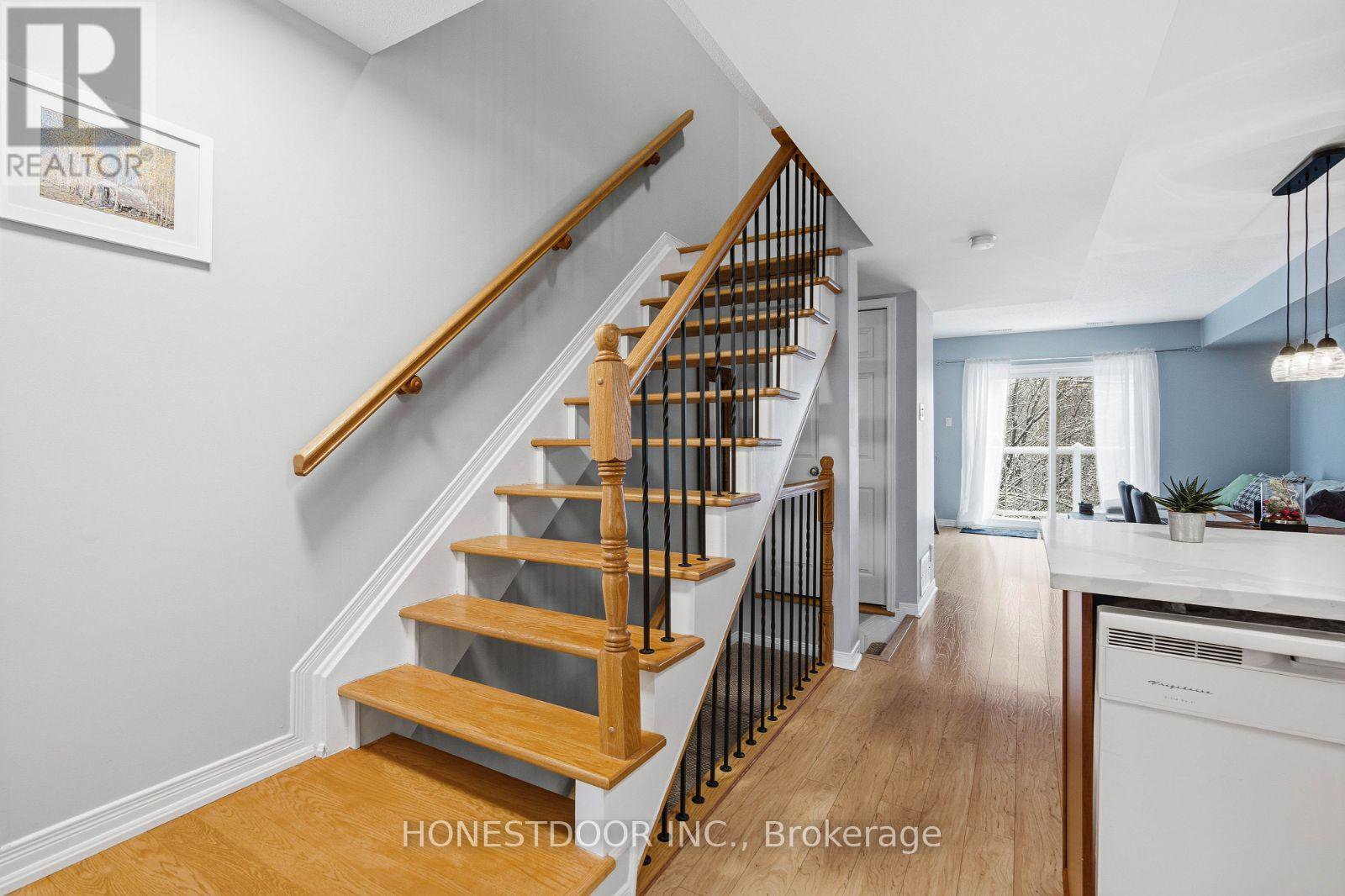 Visit the REALTOR website for further information about this Listing. Welcome to 81 Strathaven Private, a bright and spacious 2-bedroom plus large den stacked townhome located in a quiet pocket of Cyrville. The versatile den offers excellent flexibility and can easily be used as a third bedroom, office, or playroom to suit your needs. This home backs directly onto Ken Steele Park, providing no rear neighbors, exceptional privacy, and peaceful green views year-round. Two parking spaces are included with the unit, offering valuable convenience ,flexibility and ability to rent out for extra monthly income. The main level features an open-concept layout with outstanding natural light, updated laminate and ceramic flooring, and a modern floating staircase. The kitchen includes quartz countertops, new sinks, updated fixtures, and an added coffee station/pantry for extra storage. The upper level offers two well-sized bedrooms, a full bathroom, and convenient in-unit laundry with vinyl flooring. This location is ideal for anyone seeking quick access to downtown. The property is approximately a 15-minute bike ride or a 10-minute drive to the core. Cyrville LRT Station is a short 10-minute walk away, and the nearby Aviation Parkway provides excellent routes for biking, jogging, and commuting. Highway 417, St-Laurent Shopping Centre, Costco, Gloucester Centre, Cineplex, Adonis, Decathlon, and numerous amenities are all just minutes away. Parks, trails, and greenspace surround the community. The condo corporation is well-managed with a healthy reserve fund. Monthly condo fees are $366 and include water.