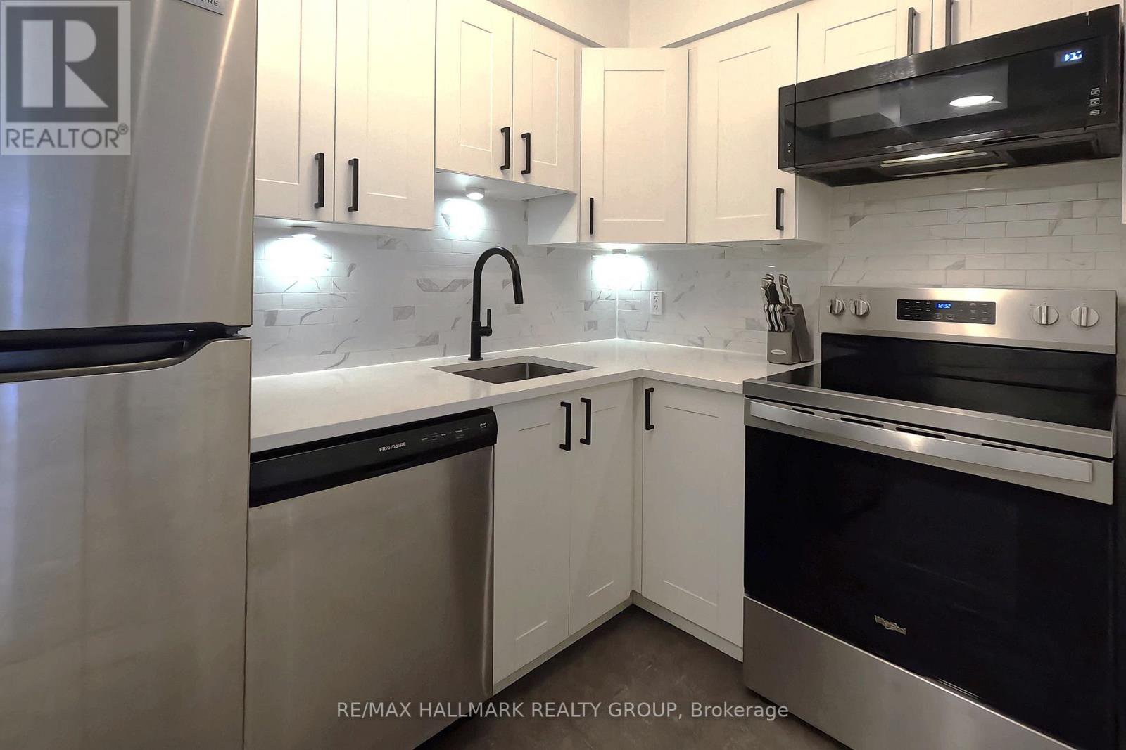 Welcome to this open-concept updated 1 bedroom, 1 bath executive unit in sought offer Manor Park. This condo features neutral tones throughout and lots of natural light. Kitchen is equipped with breakfast bar & plenty of cabinet space. Spacious master bedroom & a 4pc bath. Many amenities including gym, party/meeting room, sauna and a terrace complete with BBQ's on the main level. Bonus is the rooftop patio offering excellent views of the City and sunsets. Bike Storage in garage. This building has it all inside and out - surrounded by nature and yet only minutes to downtown, shops, restaurants, public transit, trails & the river. Great investment!