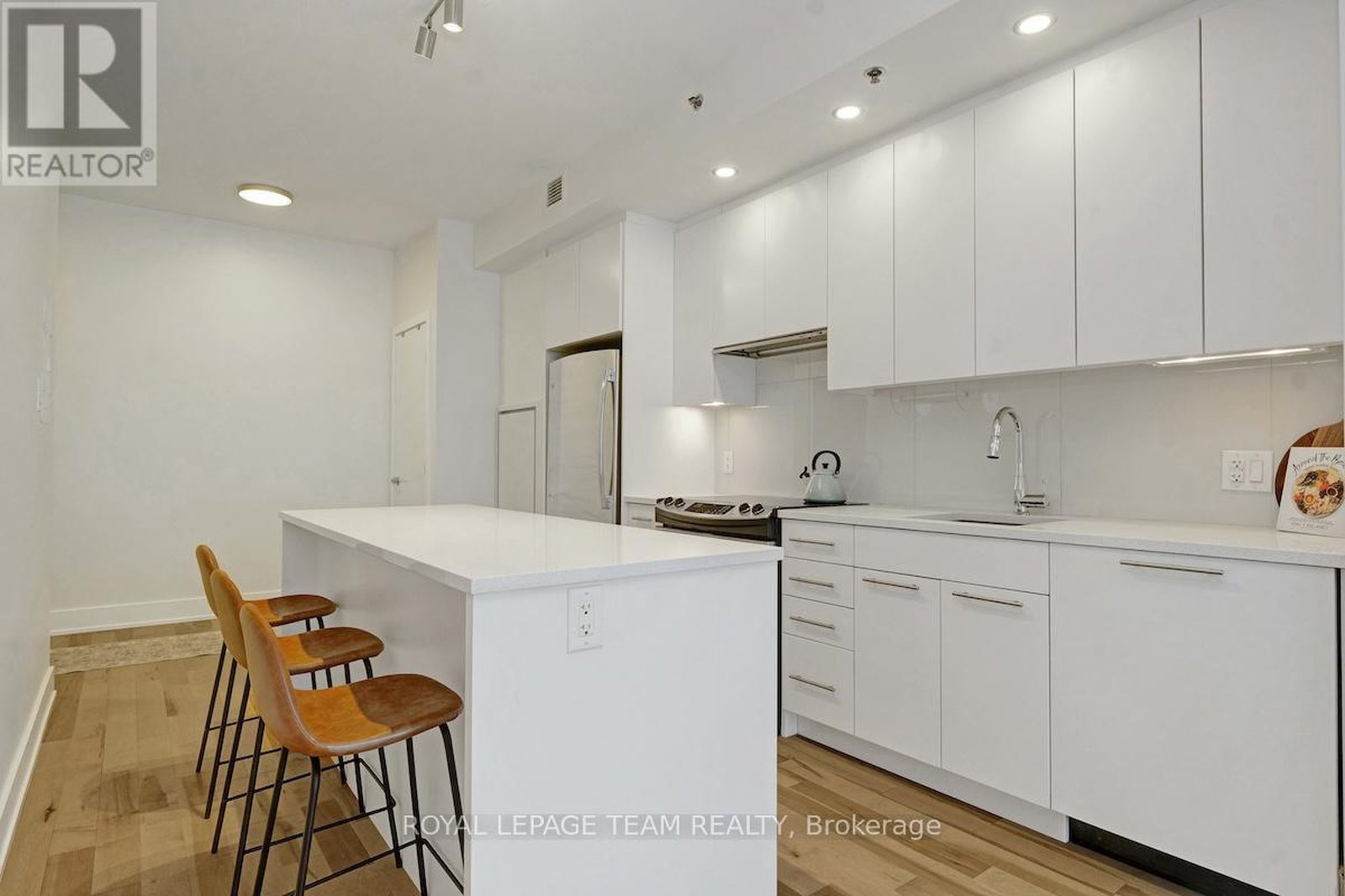 Exceptional Westboro condo nestled within one of the area's most desirable buildings, where the city's trendiest conveniences await just outside your door. Highly regarded neighbourhood known for its welcoming and energetic atmosphere, with endless cafés, restaurants, and boutiques, as well as a strong connection to nature-just minutes from the Trans-Canada Trail and the newly revitalized Westboro Beach. Unit boasts bright contemporary style and is well upgraded from top to bottom. Light engineered hardwood floors, fresh white paint, modern lighting, and minimalist window coverings create a perfectly timeless design. An open-concept layout stretches along a long, airy floorplan anchored by huge windows that flood the home with natural light. The beautiful white kitchen features a centre island with casual seating, quartz countertops, under-cabinet lighting, extended flat-panel cabinetry to the ceiling, sleek stainless-steel appliances, and a polished backsplash. Flowing into a cozy dining area and then to a sunlit living room with access to a covered balcony. Rounding out the main area are a convenient powder room and discreetly tucked-away in-unit laundry. Private primary suite where floor-to-ceiling windows create an inviting retreat complete with a large double-sided walk-in closet featuring a custom organization system, and a full ensuite bathroom with an oversized glass-panelled shower. Unit includes a heated underground parking space B3 and adjacent storage locker B156. The building itself offers an impressive array of amenities: a fitness centre, theatre room, meeting and games room, pet wash station, bike lockers, and a stunning rooftop terrace with dining areas, lounge seating, BBQs, and a hot tub. A strong, friendly in-house community hosts regular social events, adding to the warm, connected lifestyle this building is known for. Commuting is effortless with nearby transit, the future LRT stop, and proximity to Tunney's Pasture.