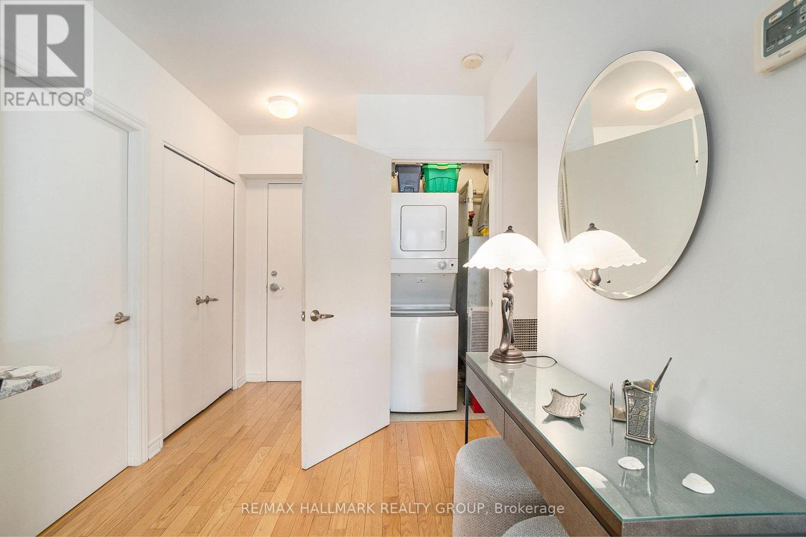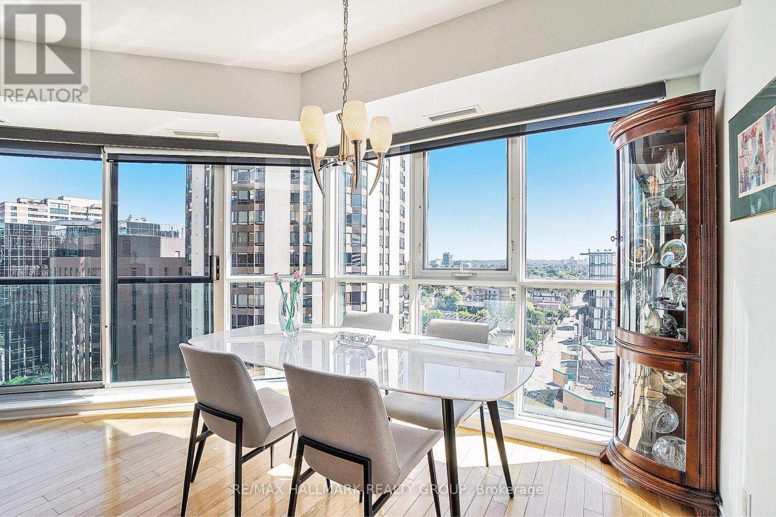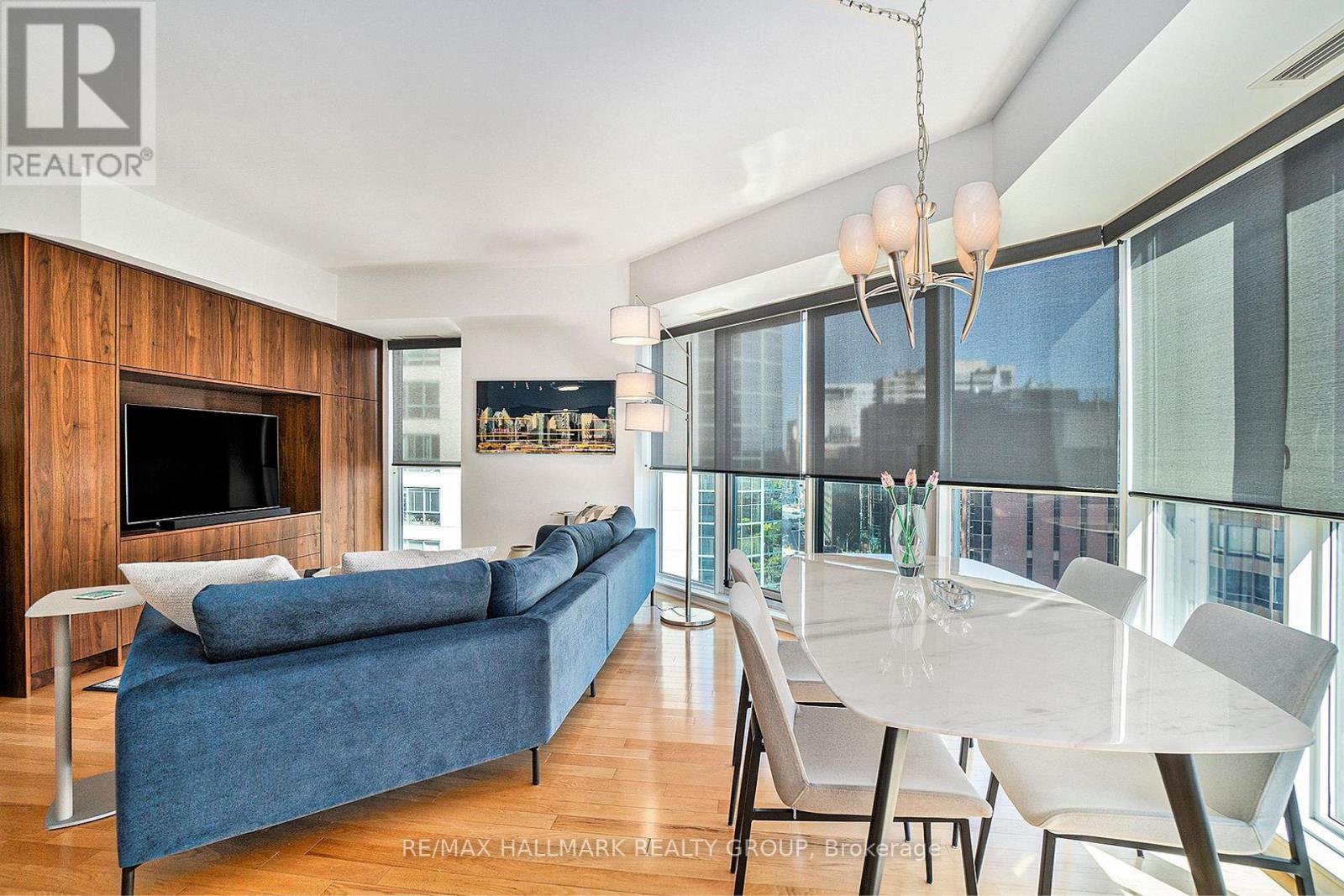 Welcome to The Pinnacle, a quiet, well-kept condo building in the heart of Centretown, where comfort meets convenience. This beautifully updated 2-bedroom, 2-bathroom corner unit offers 985 sq. ft. of sun-filled living space, framed by floor-to-ceiling windows that stretch across two walls. The layout is spacious and practical, with a large open-concept living and dining area that feels airy and relaxed. The kitchen is a standout, featuring stainless steel appliances (2022), quartz countertops, a tiled backsplash, and sleek, high-grade cabinetry with plenty of storage. Hardwood flooring runs throughout the unit, and custom living room built-ins add style and function. The primary bedroom includes its own ensuite, while the second full bathroom features a luxurious walk-in tub offering a spa-like place to unwind at the end of the day. Unit includes underground parking (Level 3, Spot 4A) and a storage locker (Level 2, Unit 76). The Pinnacle offers a party room, two elevators, and secure entry, with just five units per floor for a quieter atmosphere. Across the street, a community garden and park provide a peaceful green space to enjoy with your morning coffee, and the Tech Wall Dog Park is just a few blocks away. You're surrounded by top restaurants, cafes, grocery stores, and transit connections, all just minutes from your door. Quick closing available!