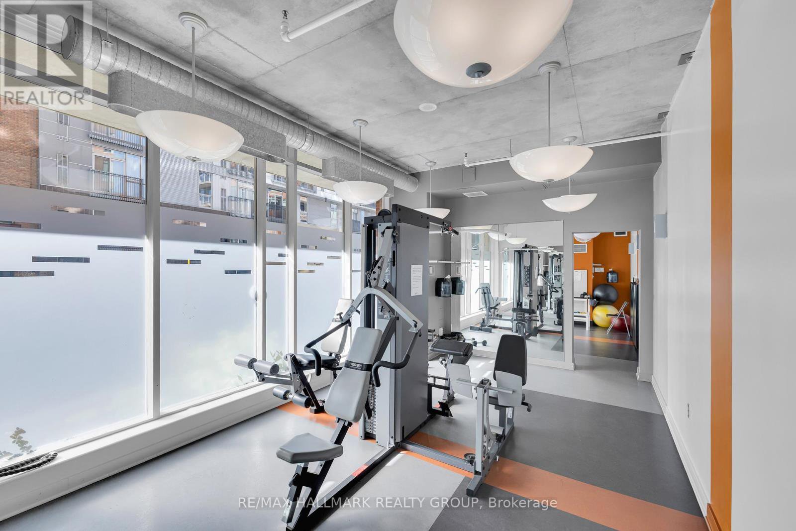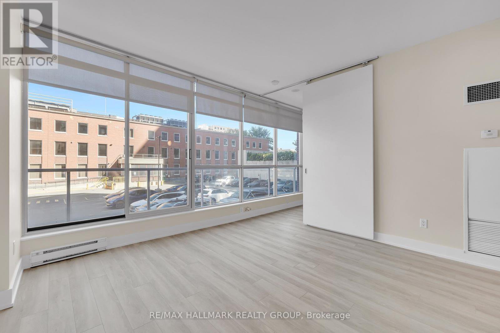 This bright and functional 1-bedroom, 1-bath condo with storage locker offers 523 sq. ft. of thoughtfully designed space. With high ceilings, brand-new flooring, and floor-to-ceiling windows, the unit feels open and filled with natural light. The kitchen provides ample cabinetry and white appliances, while the bathroom has been refreshed with quartz counters. East-facing exposure ensures morning light and a warm, inviting atmosphere. Life at The East Market goes beyond your front door. Residents enjoy a well-equipped gym, a games room with a pool table, and a spacious party room that extends to an outdoor terrace complete with BBQs, perfect for entertaining in the warmer months. The building also offers secure entry, elevators, on-site management, and bike storage for added convenience. Step outside and experience the best of the ByWard Market. Cafés, restaurants, pubs, and shops are all within walking distance, while Metro, Farm Boy, and the Market stalls make fresh groceries easy to grab. The Rideau Centre, LRT station, and University of Ottawa are just minutes away, placing you in the heart of it all. Ideal for first-time buyers, professionals, down-sizers, or investors, this move-in-ready condo blends location, lifestyle, and value in one of Ottawa's most vibrant neighbourhoods. The East Market at 180 York Street, where downtown convenience meets urban living.