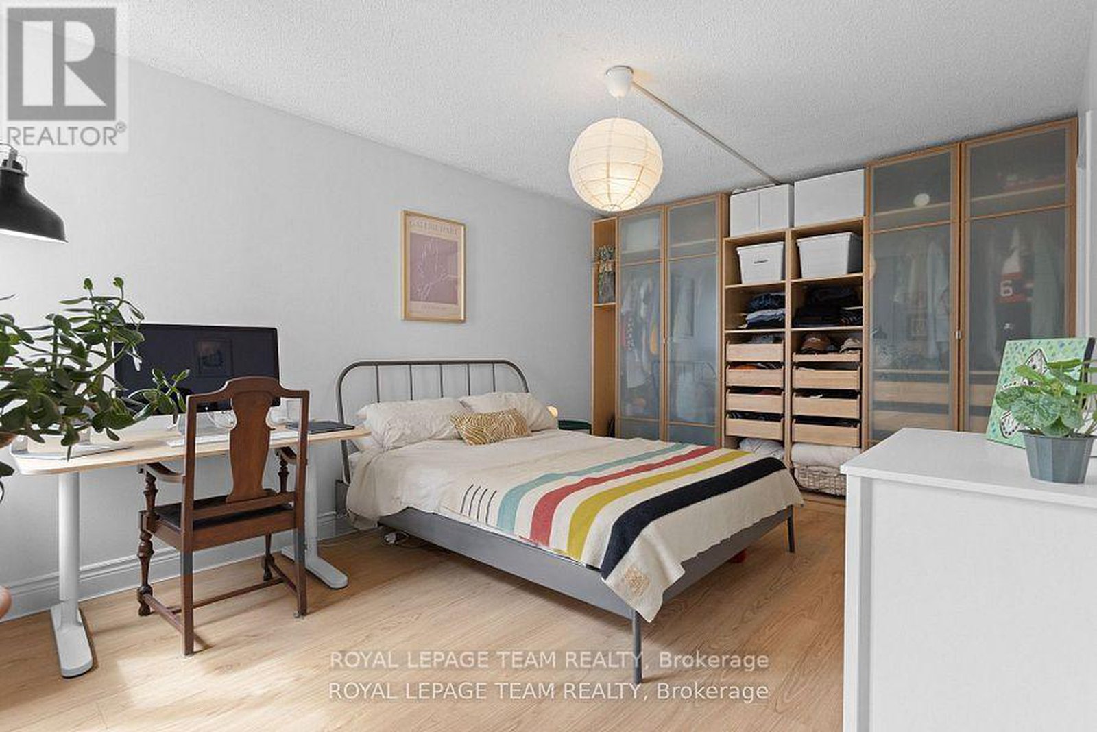 Ideally located between Elgin Street and the Canal, this updated, freshly painted 2-bed, 2-bath condo offers functional living in the heart of the Golden Triangle. The open-concept layout features a stylish kitchen with stainless steel appliances, wood cabinetry, and an island, flowing to a sunny south-facing balcony. The spacious primary bedroom includes a wall of closets and 2-piece ensuite; the second bedroom works well as an office or guest room. Updated full bath with subway-tile tub/shower. This unit checks every box for convenience, including generous in-unit storage with a large storage room and a ground-level covered parking space. Condo fees include HEAT, HYDRO & WATER, plus access to top-tier amenities: an exercise room, rec room, meeting room, sauna, visitor parking, and bike storage. Steps to award-winning restaurants, shops, entertainment, and 650m to the LRT. A high-demand location offering excellent lifestyle and strong investment potential. New baseboard heaters and light fixtures 2024. Status certificate on file.