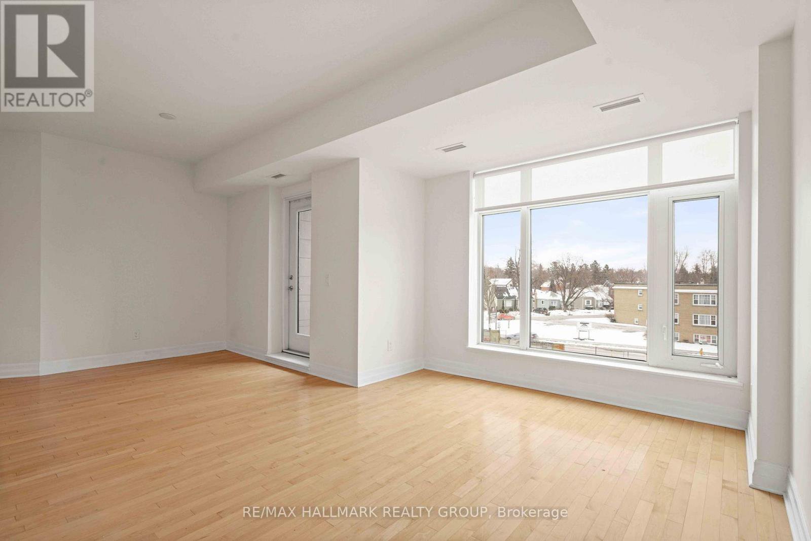 Welcome to The Continental, a sought-after condominium built by Charlesfort and designed by renowned architect Barry Hobin. This bright and stylish 1-bedroom + den suite offers 820 sq. ft. of open-concept living, and beautiful hardwood floors throughout. The kitchen features stainless steel appliances, granite countertops, and ample cabinetry, flowing seamlessly into the spacious living and dining areas. Step out to your south-facing balcony and enjoy natural light all day long. The versatile den makes a perfect home office or guest room. The full bath provides dual access from both the foyer and the primary bedroom for added convenience. Additional features include in-suite laundry, underground parking, and a storage locker. Residents enjoy premium amenities such as a state-of-the-art fitness center, party room, and incredible rooftop terrace with BBQ. Unbeatable location-just steps to the LRT, walking and biking trails, top-rated schools, Westboro Village, Carlingwood Mall, and more. Location. Lifestyle. Luxury. It's all here at The Continental, 75 Cleary Avenue, Suite 302. Some photos virtually staged.