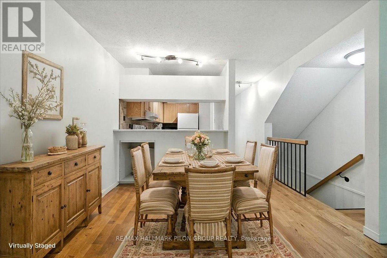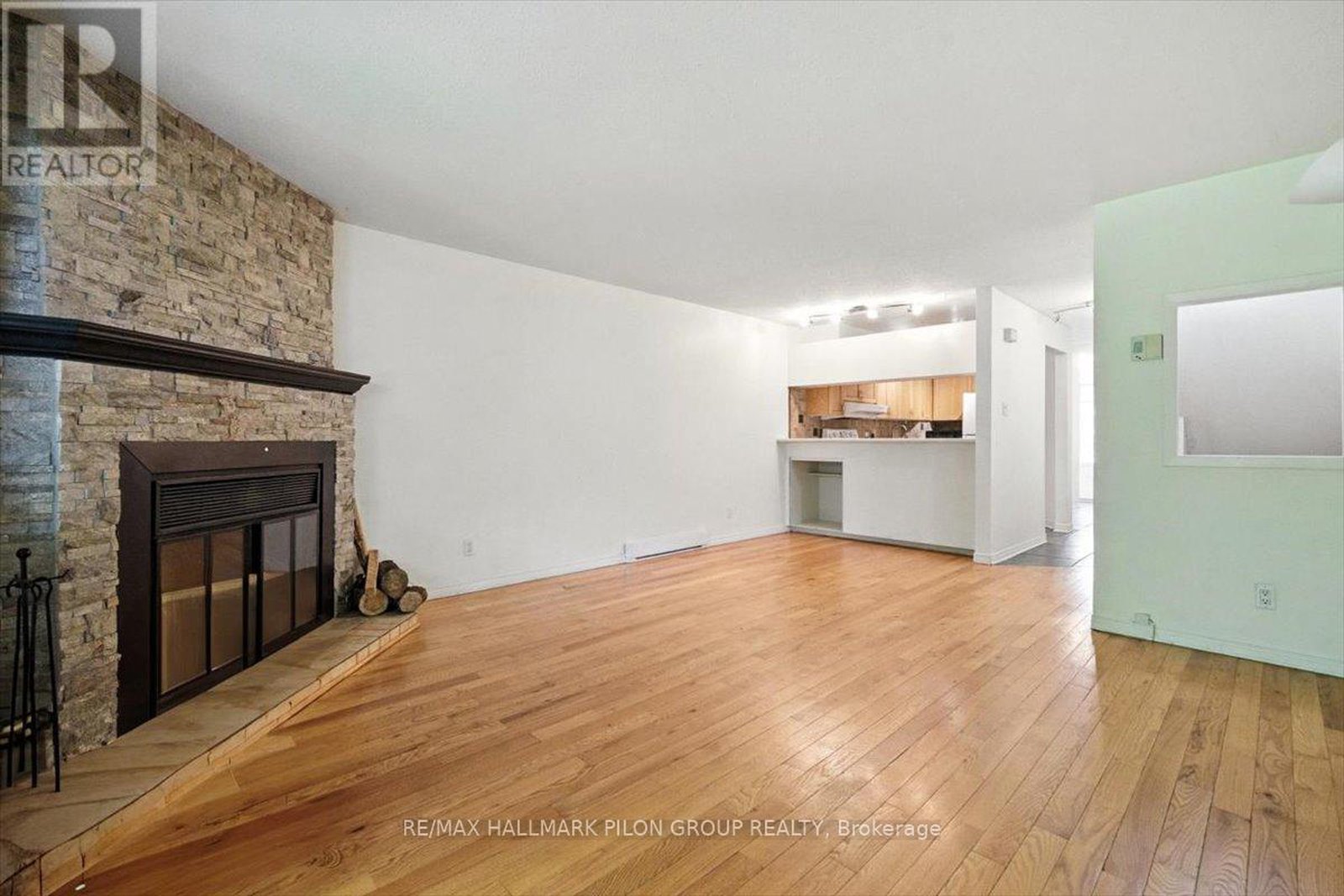 Ideally situated in one of Orleans most convenient neighbourhoods, this charming condo offers the perfect blend of space, comfort, and lifestyle - just steps away from transit, shopping, parks, and more.As you step inside, you're welcomed by a large tiled foyer that sets the tone for the home's inviting atmosphere. The entryway features a generous open closet for easy storage and a pleasing powder room - perfect for guests and everyday convenience. Continue down the hall to a bright, thoughtfully designed kitchen that will inspire any home chef. Complete with timeless solid wood cabinetry, a neutral backsplash, abundant counter space, and crisp white appliances, this kitchen balances functionality with classic charm.The open-concept living and dining area offers a warm, welcoming space to relax or entertain. A cozy wood-burning fireplace adds a touch of ambiance, while the large patio door opens onto your private deck. Surrounded by mature trees, the view is peaceful and serene - ideal for morning coffee or evening unwinding. On the lower level, you'll find two generously sized bedrooms with plush carpeting underfoot and plenty of closet space. The beautifully updated full bathroom features a modern vanity and an elegant, tiled tub/shower combination. Additional features include a neatly tucked-away laundry area within the utility room, as well as under-stair storage thats perfect for keeping seasonal items or extra belongings out of sight. Nestled in a quiet, tree-lined corner of the development, this unit offers rare privacy while remaining just minutes from everyday essentials. You'll enjoy easy access to excellent schools, scenic walking and biking trails along the Ottawa River, local parks, and a variety of shops - including a popular grocery store and other retail outlets - all within walking distance. Some photos virtually staged.