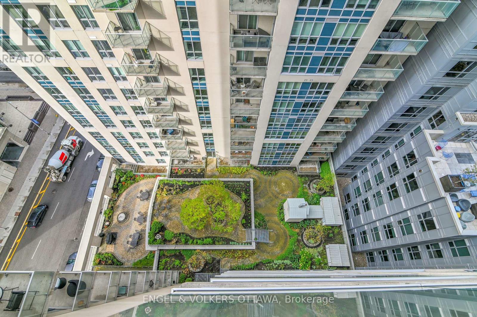 Welcome to this immaculate 665 sq ft one-bedroom condo for sale by the original owner. This unit comes complete with heated underground parking, a private storage locker, and a charming balcony, offering an exceptional living experience. The condo is in pristine, almost-new condition, featuring stunning hardwood floors and ceramic tile throughout. The kitchen is equipped with six appliances and elegant granite countertops. The thoughtfully designed floor plan provides an ideal layout that comfortably accommodates a dining or dedicated workspace, alongside a spacious living room perfect for entertaining guests. The bedroom is a bright and inviting space, benefiting from ample natural light and offering additional storage with a rare walk-in closet. Residents of The Plaza 4 will enjoy an exceptional amenities-driven lifestyle. The building boasts a 7,250 sq ft recreation center, which includes an indoor saltwater pool, sauna, fitness center, and party room. Additionally, a spectacular rooftop terrace provides a perfect space for relaxation and enjoyment. Strategically located in the heart of the city, The Plaza 4 offers a vibrant urban lifestyle with an exceptional walk score of 99. You will be just steps away from the University of Ottawa, the Rideau Centre, the historic ByWard Market, and convenient access to the LRT. For your peace of mind, the building also provides 24/7 concierge service and secure entry. This truly represents a fabulous investment opportunity. No conveyance of any written signed offers prior to 12:00 pm on December 19th, 2025