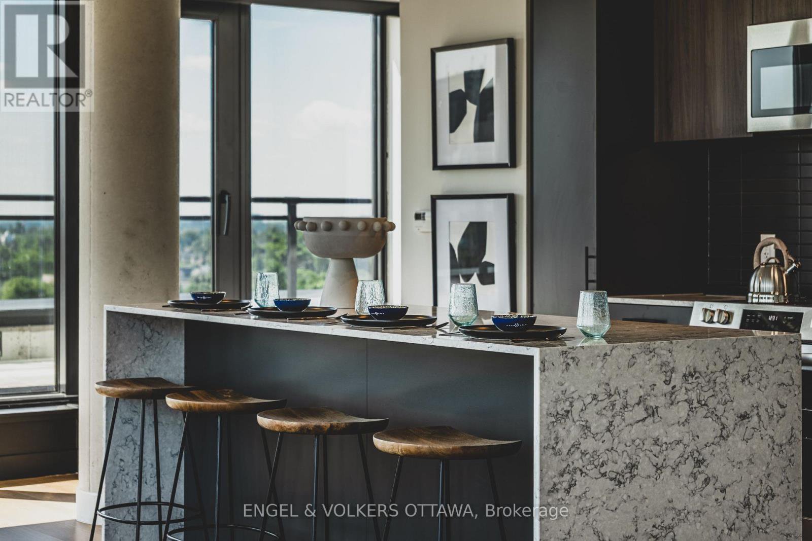 Experience elevated living in this stunning Lower Penthouse Corner Suite at the brand-new James House, a boutique condominium redefining urban sophistication in the heart of Centretown. Designed by award-winning architects, this trend-setting development offers contemporary new-loft style living and thoughtfully curated amenities. This luxurious 2-bedroom + den suite spans 1,233 sq.ft. of interior space and features 9-ft ceilings, floor-to-ceiling windows, and exposed concrete accents, flooding the space with natural light. The suite includes two large terraces totaling 549 sq.ft., ideal for entertaining or relaxing, with water access and a gas rough-in for a BBQ. The modern kitchen is a culinary masterpiece, equipped with a custom oversized island, quartz countertops, built-in refrigerator and dishwasher, stainless steel appliances, and ambient under-cabinet lighting. A large walk-in closet near the entrance houses the in-suite laundry, offering both functionality and convenience. The primary bedroom features a spacious layout, while the 5-piece en-suite bathroom boasts a walk-in shower and separate tub. A second full bathroom and a versatile den, perfect for a home office or guest space, complete the thoughtfully designed layout. James House enhances urban living with amenities including a west-facing rooftop saltwater pool, fitness center, yoga studio, zen garden, stylish lounge, and a dog washing station. Located steps from Centretown and the Glebe's finest dining, shopping, and entertainment, James House creates a vibrant and welcoming atmosphere that sets a new standard for luxurious urban living. On-site visitor parking adds to the appeal. Other suite models are also available. Inquire about our flexible ownership options, including rent-to-own and save-to-own programs, designed to help you move in and own faster.