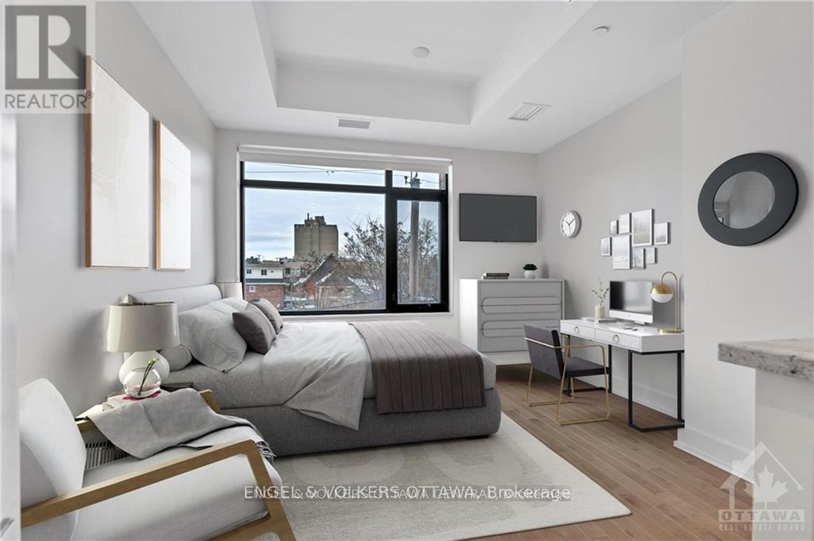 Modern Studio Living in the Heart of Old Ottawa East....Welcome to this beautifully designed bachelor/studio condo perfectly situated on Main Street in the sought-after community of Old Ottawa East. Ideal for first-time buyers, students, young professionals, or investors, this unit offers a bright, open concept layout that combines comfort, style, and functionality. Step inside to find luxurious finishes, high ceilings, and floor-to-ceiling windows that flood the space with natural light. The streamlined design maximizes every inch seamlessly blending bedroom, living, and dining areas into one inviting space. The modern kitchen features sleek cabinetry, stainless steel appliances, and ample counter space, making cooking at home both easy and enjoyable. A stylish, spa-like bathroom and in-unit laundry complete this impressive space. Enjoy premium building amenities, including: Fully equipped fitness centre, Yoga studio, Rooftop terrace with stunning views, Tranquil courtyard, Guest suite, Party room perfect for entertaining .Located just steps from Saint Paul University, University of Ottawa, the Rideau Canal, Rideau River, LRT Station, Lansdowne Park, trails, shopping, restaurants, and more this is urban living at its best. Whether you're looking for your first home or a turn-key investment opportunity, this studio checks every box. A few pictures have been virtually staged.