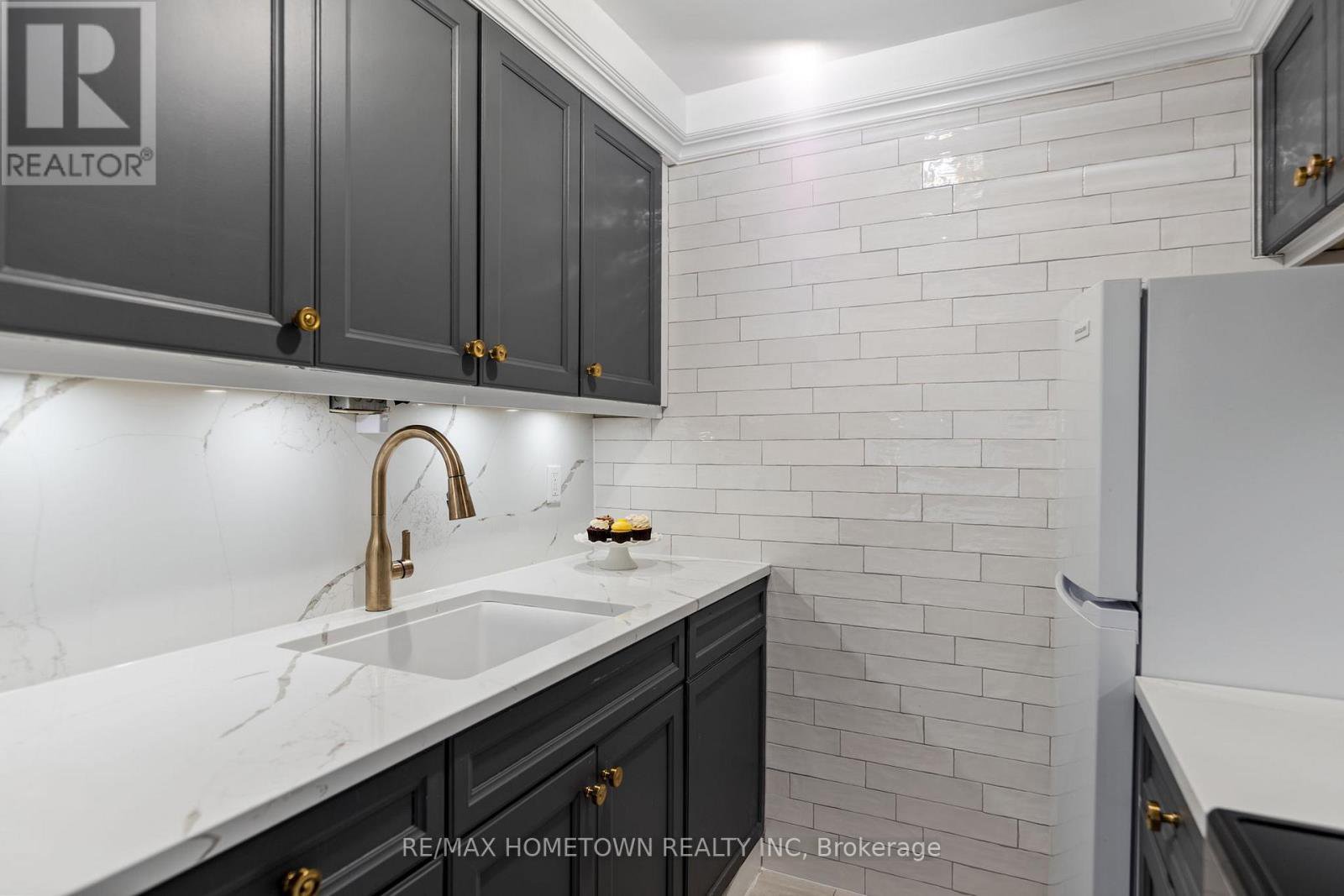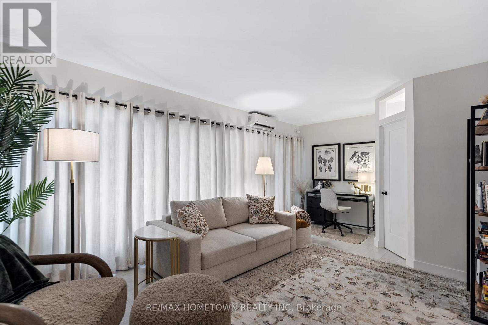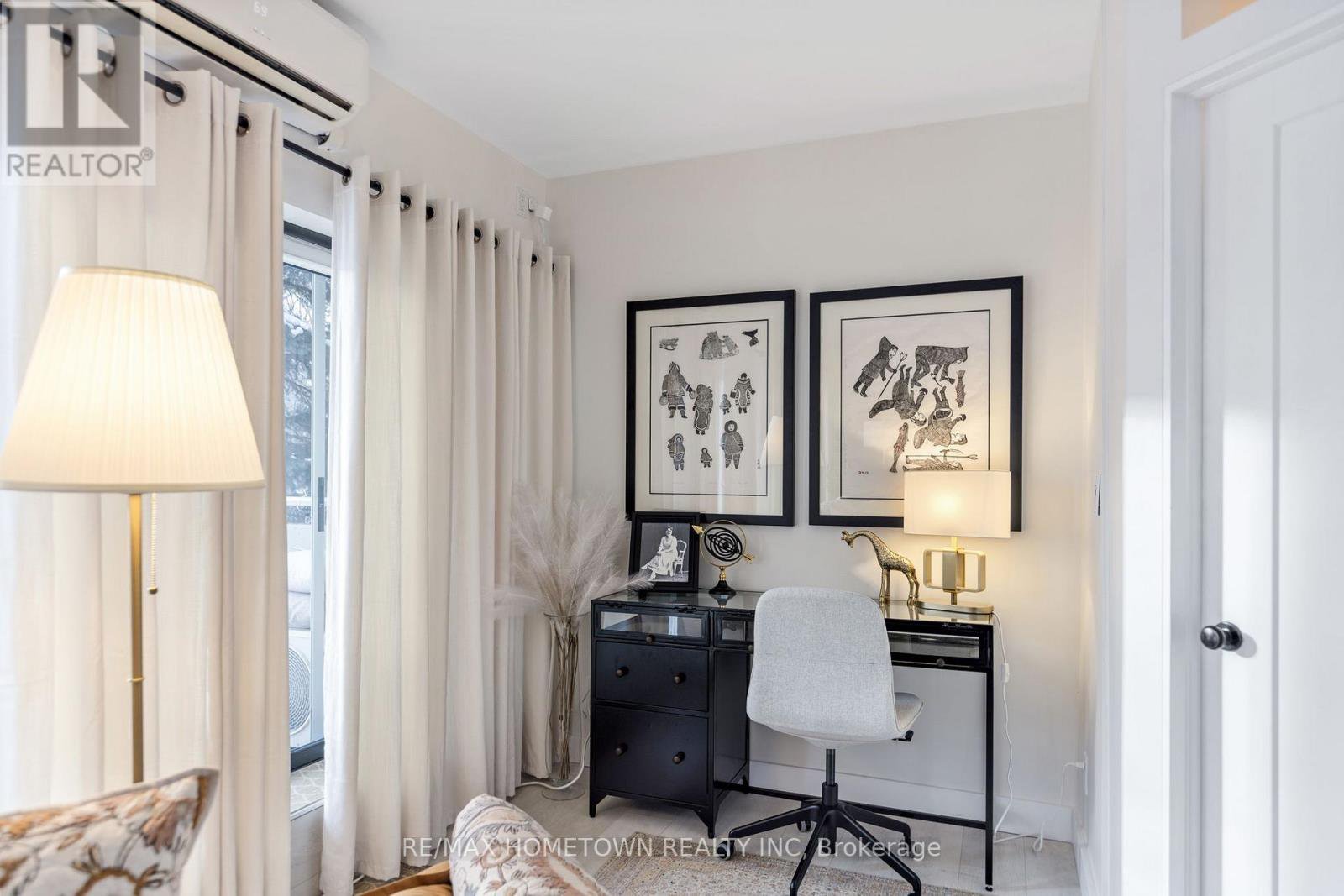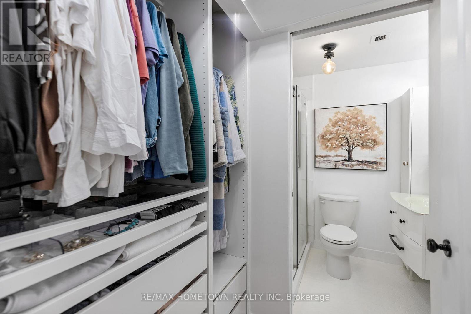 Looking for a place to lay your head during the warmer months? Head away to a warmer climate for the winter, where you can lock the door and go? If you love to travel, work on the road, or simply don't want to be tied down by grass cutting or snow removal, this worry-free condo and its amenities may be exactly what you're looking for. Located on the main level, this unit offers easy access with no stairs and no waiting for an elevator. Mail delivery and secure entry add to the peace of mind. The condo is bright, move-in ready, and has seen many recent updates. The foyer welcomes you with a large closet, leading into a combined living and sleeping area that includes space for a small home office. A sofa bed is in use (purchased 4 months ago), and the seller is willing to sell it. The updated kitchen features painted cabinets with new hardware, upgraded quartz countertops, a quartz backsplash, and a new stove and microwave. A separate built-in closet area keeps everything organized, and a door can be closed off for privacy. The updated three-piece bathroom includes a walk-in shower with a Pier Deco AquaMassage tower featuring a rain shower head, neck and shoulder waterfall, and four adjustable body jets. You may find yourself spending a little extra time there. Step outside to the large southwest-facing balcony, recently upgraded with teak wood tiles. Enjoy afternoon sun and river views in a peaceful setting in this summer. This amazing location is adjacent to Centeen Park and the St. Lawrence River, the downtown market, restaurants, shopping, and just a short walk and public transit right out front on King St. And yes, there's also a heated outdoor pool. Don't miss your chance to enjoy easy, carefree living in a great location.
