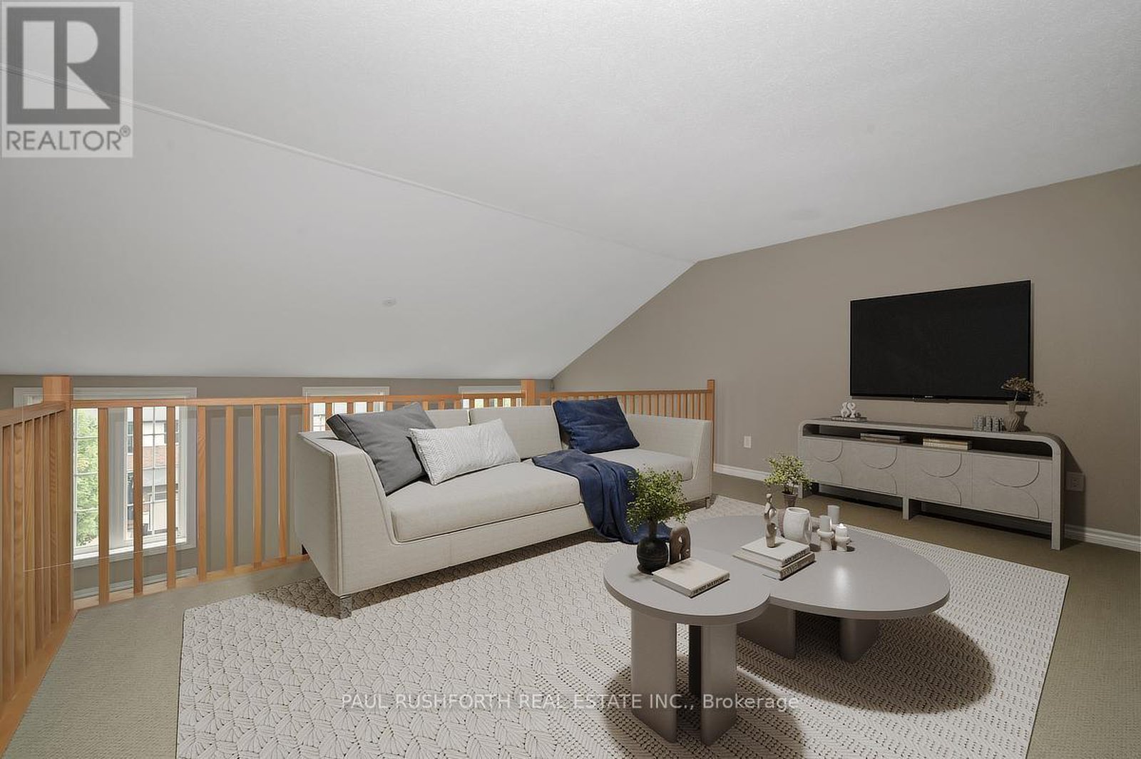 This stunning 3-storey condo combines style, comfort, and functionality in one exceptional package. The open concept main floor is perfect for modern living, featuring a well appointed kitchen that seamlessly flows into the bright and airy living space with soaring vaulted ceilings. Large windows flood the area with natural light, while a private terrace extends your living space outdoors, ideal for morning coffee or evening relaxation. This level also includes a spacious bedroom, a full bathroom, a convenient laundry room, and has been freshly painted throughout, creating a crisp and inviting atmosphere. The upper level offers a versatile loft, perfect for a home office, reading nook, or additional lounge area. Completing this level is the generous primary suite, featuring a private Juliette balcony, a 4-piece ensuite, and ample closet space, offering your own retreat for rest and rejuvenation. An attached garage with direct interior access provides convenience and security, while the condo's location offers the best of both worlds: a peaceful setting in a highly desired neighbourhood, yet just minutes from shopping, restaurants, parks, schools, and public transit. This property delivers comfort, elegance, and practicality in one remarkable home, perfect for professionals, downsizers, or anyone seeking a low maintenance lifestyle without sacrificing style or space. Some photos have been virtually staged.