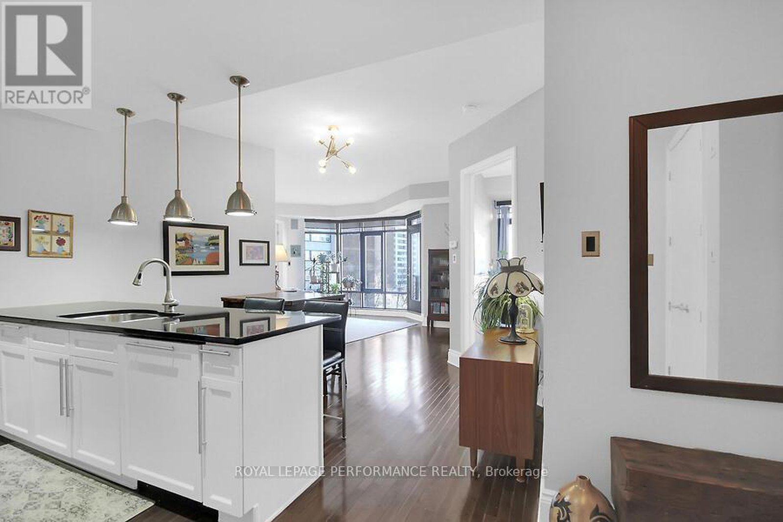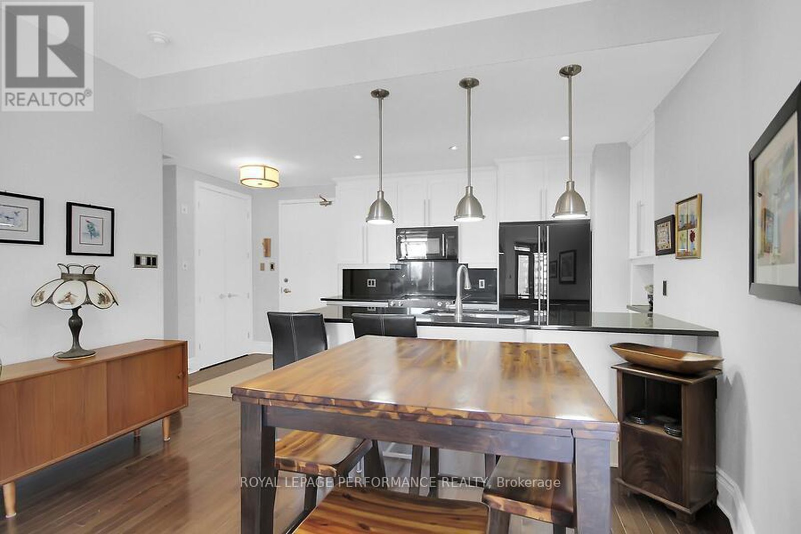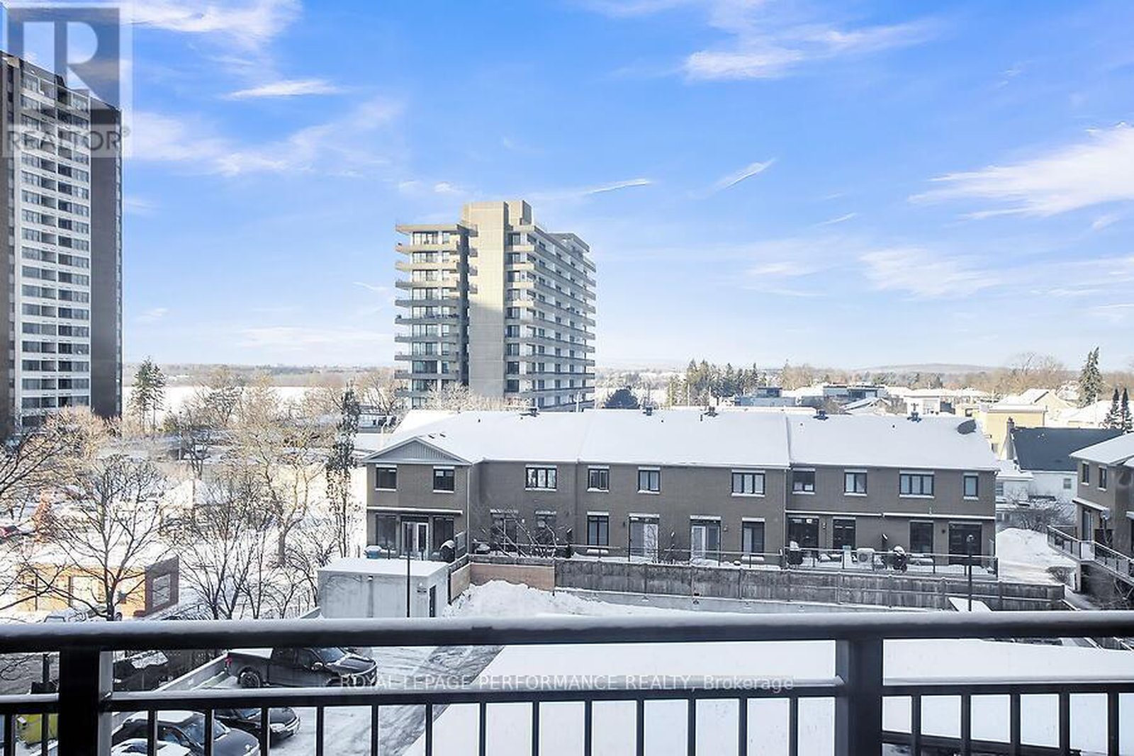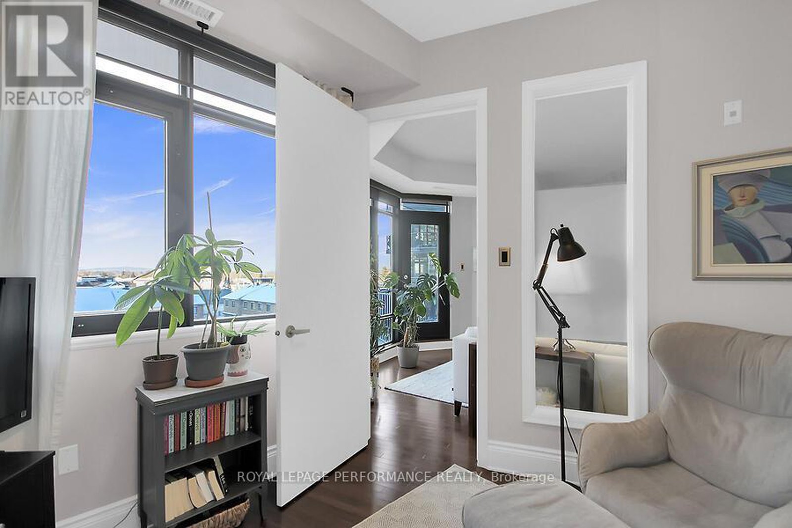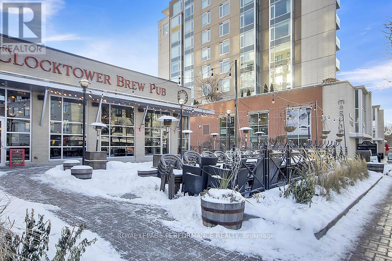 Welcome to 409-420 Berkley Ave. a one bedroom plus den located in The Exchange, a premier condominium building in trendy, sought after Westboro. The open concept Living/Dining room with gleaming hardwood floors, offers views of the Gatineau Hills from light giving floor to ceiling windows.along with the ambience of an electric fireplace. The galley style kitchen is complete with quartz counter tops, breakfast bar, 4 appliances, hook up for a gas range and barista niche. The comfortably sized Primary Bedroom features a walk in closet and the versatile Den/2nd Bedroom/Home Office includes a Murphy bed with matching cabinetry. Enjoy leisure time on the large balcony with gas BBQ hook up. Ideally located, this property is steps to very popular Westboro stores and restaurants, new LRT station, Saturday outdoor Byron Park Farmers Market, bike paths and a pleasant walk to the Kicchi Zibi Mikan and the newly refurbished Westboro Beach. Amenities include one indoor parking space, separate storage locker and bike storage area. Welcome Home!