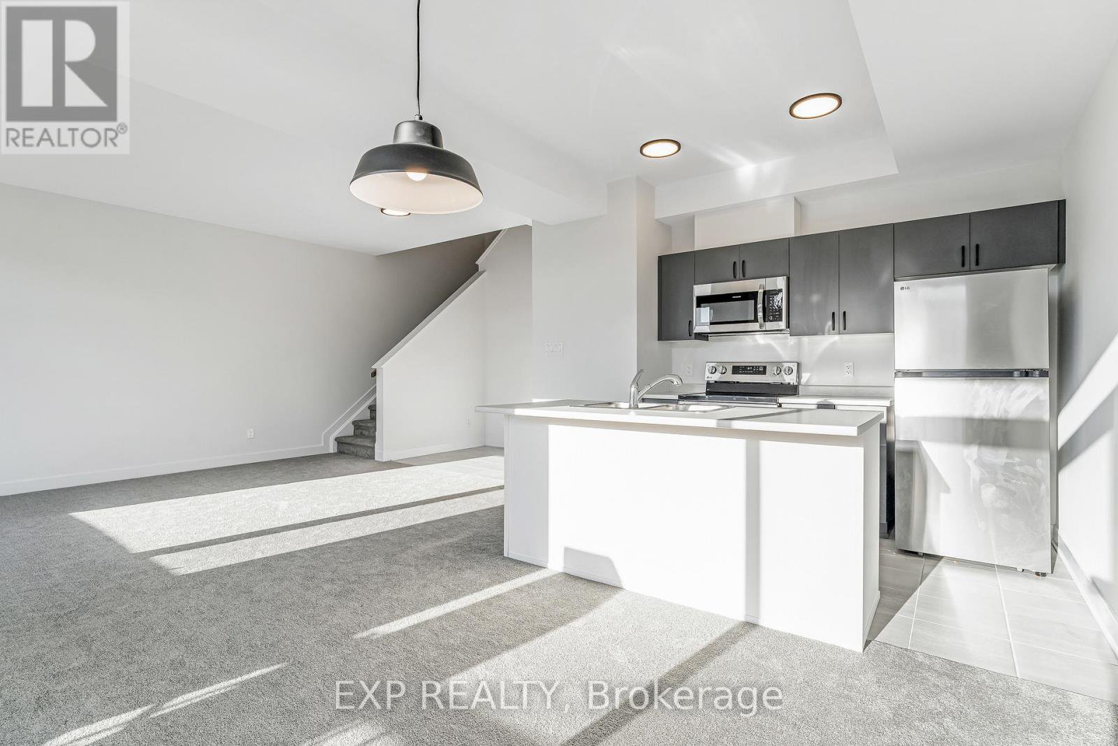 Welcome to this brand-new stacked upper-unit condo, a stunning home that blends modern design with everyday convenience. Offering a bright and spacious open-concept floor plan, this residence is perfect for those seeking both style and functionality in a thriving community. On the main level, oversized patio doors flood the living space with natural light and open onto your private walk-out balconyan ideal spot for morning coffee or evening relaxation. The open layout is designed for effortless living and entertaining, featuring a generous living room, a formal dining area, and a sleek kitchen complete with a central island, and stainless steel appliances. A convenient powder room is tucked nearby, along with a bonus nook thats perfectly suited for a tech station or mini home office. Upstairs, two generously sized bedrooms provide comfort and privacy, each highlighted by oversized windows. The primary suite includes its own 3-piece ensuite bathroom and a spacious walk-in closet, while the second bedroom has easy access to an additional full bathroom. With 2.5 bathrooms in total, included appliances, and high-quality finishes throughout, this condo is truly move-in ready. Beyond the home itself, the location is amazing - you are only steps or minutes from everyday amenities shops, cafés, grocery stores, and restaurants, including a Farm Boy coming soon. Parks, schools, and recreation options are right at your doorstep, making this a community thats both family-friendly and convenient. Commuters will appreciate nearby transit, including the new LRT extension, as well as easy access to major routes connecting you across the city. If you are searching for a stylish, low-maintenance home with modern finishes, smart design, and unbeatable convenience, this brand-new upper-unit condo is a must-see.