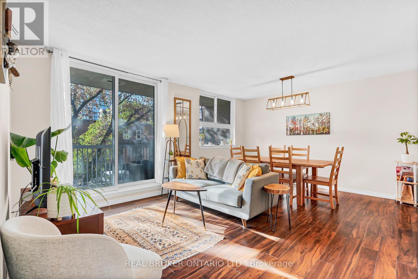 Welcome to this charming 2-bedroom, 1-bathroom apartment in the heart of Mechanicsville! Perfectly positioned just steps from the Kichi Zibi Mikan and minutes from the boutiques, cafés, and restaurants of vibrant Hintonburg, this second-floor unit offers both comfort and convenience. The well-maintained interior features timeless finishes including subway tile backsplash, white shaker cabinetry, and warm wood-tone flooring throughout the main living area. A large sliding glass door fills the living room with natural light and opens to a private balcony-ideal for morning coffee or evening relaxation. Residents enjoy a thoughtfully cared-for building with modern amenities including a welcoming lobby, fitness centre with ample equipment, secure bike and storage lockers, an updated laundry room, and convenient indoor parking - no snow brushing required! Located near the Ottawa River and just minutes to downtown, this apartment offers easy access to nature, transit, and the city's core. A fantastic opportunity for first-time buyers, downsizers, or investors seeking low-maintenance urban living in one of Ottawa's most desirable neighbourhoods.