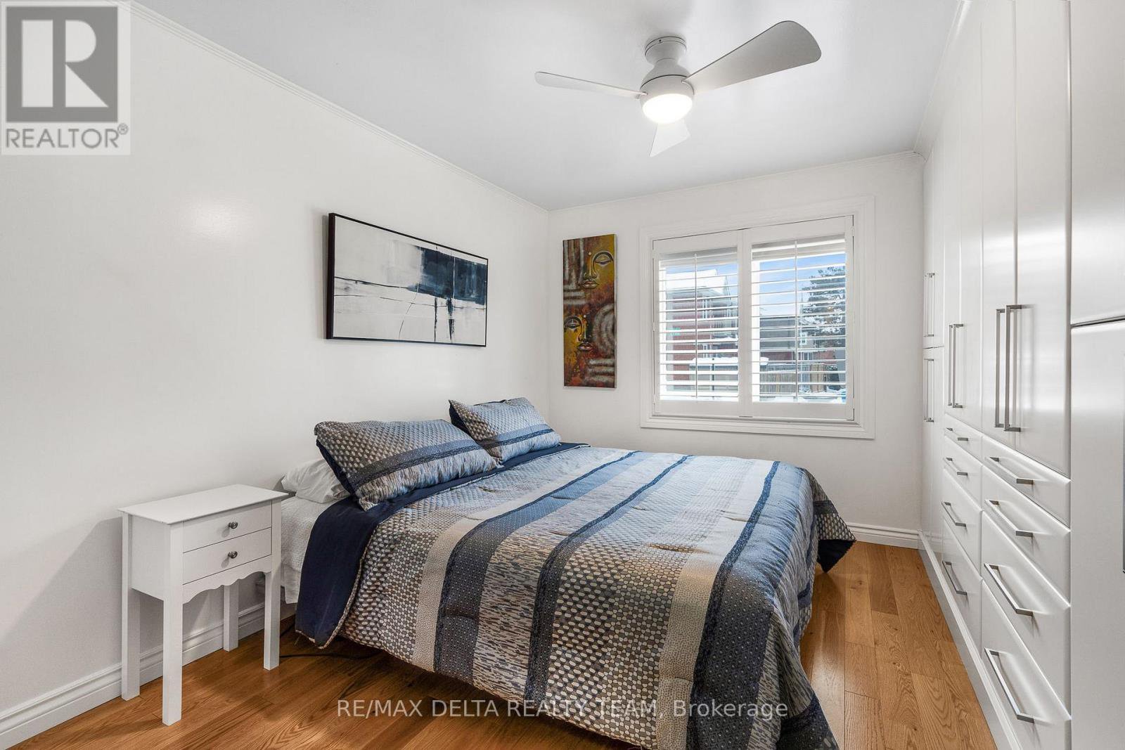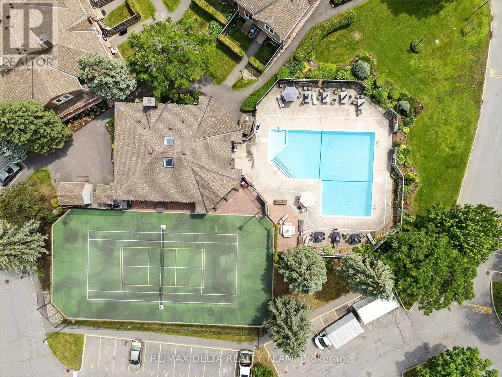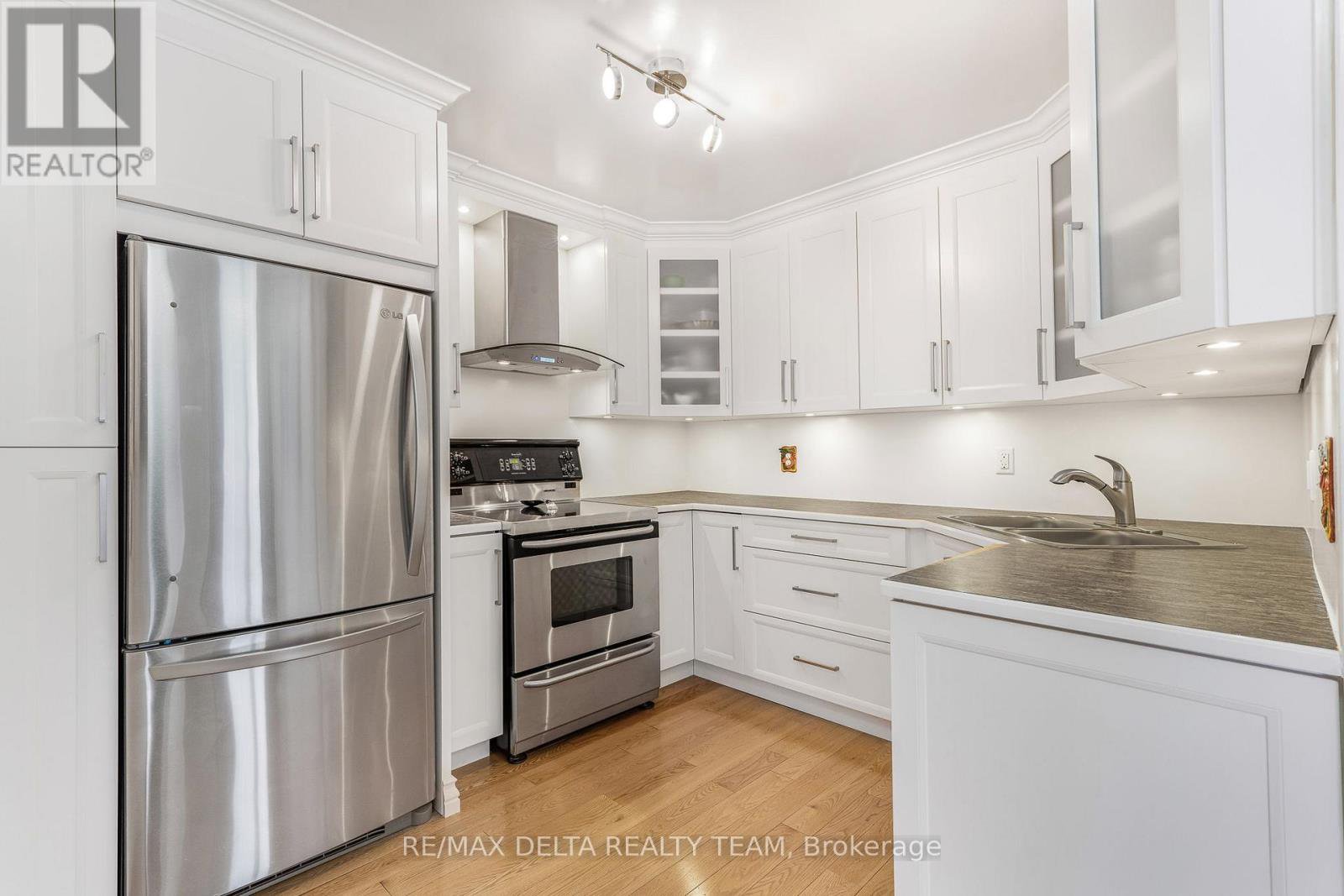 Truly one of a kind, this upgraded bungalow-style condo offers refined finishes and exceptional attention to detail throughout. Hardwood flooring extends seamlessly across the main level and down the staircase to the lower level, complemented by rich oak interior doors. The designer-renovated kitchen and bathroom showcase timeless finishes, with the bathroom featuring an elegant walk-in shower. The primary bedroom is enhanced by custom built-in cabinetry, offering both sophistication and exceptional storage. The lower level features A versatile rec room-currently used as a bedroom-pairs perfectly with in-unit laundry equipped with newer appliances, creating a functional living space. Impressive curb appeal with an interlock patio and a striking front door replaced by the owner. Includes one parking space (#255). Ideally situated close to shopping, schools, and with effortless access to Highway 174, this is a truly special property that stands apart from the rest