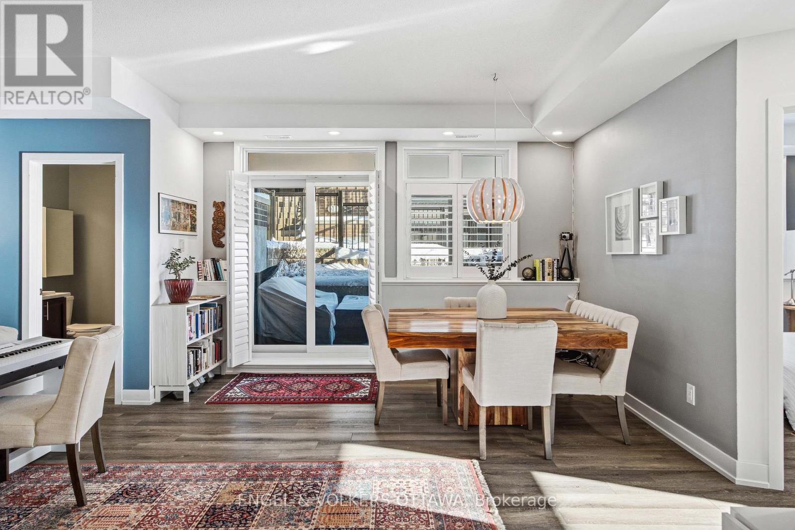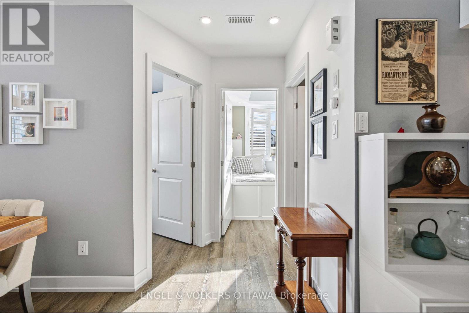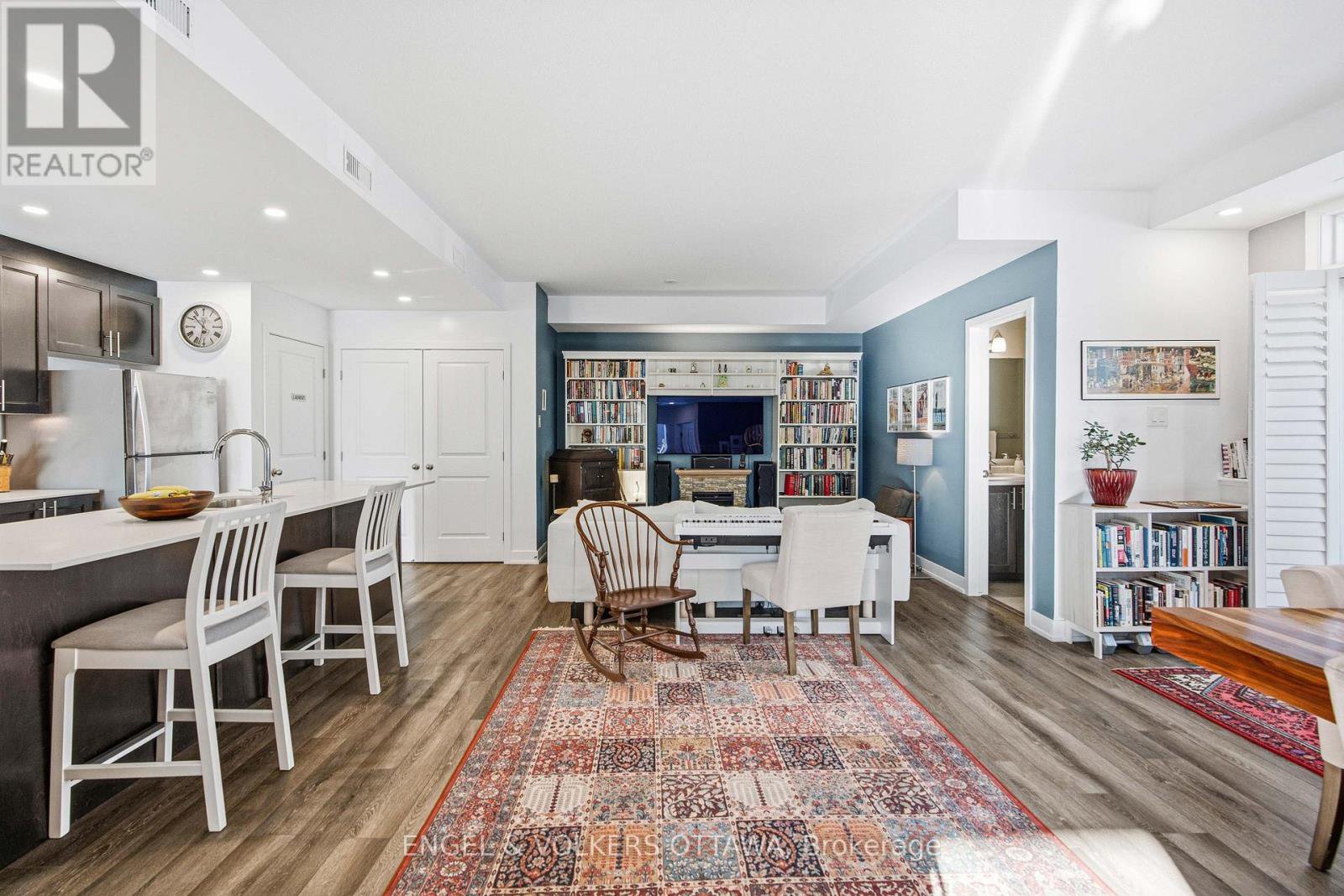 Welcome home to Zen Urban Flats, a modern and thoughtfully designed condo community in the heart of Kanata, offering low condo fees of $258.57 per month. This smart and functional unit features 2 bedrooms, 1.5 bathrooms, and a private terrace ideal for outdoor living. The open concept layout is perfect for both everyday living and entertaining, highlighted by quartz countertops, stainless steel appliances including a brand new Bosch dishwasher, pot lights, and custom California shutters throughout. Upon entry, you are welcomed by high ceilings and a convenient front hall closet. The kitchen features an oversized island that seamlessly overlooks the living and dining areas, creating a bright and inviting space.Step through the sliding doors to your private exterior terrace, perfect for relaxing with an evening glass of wine or hosting guests. Parking is included, along with visitor parking for added convenience. First occupied in 2024, the home includes approximately five years remaining on the Tarion warranty. Ideally located close to public transit, trails, parks, shopping, and excellent schools, this home offers an exceptional balance of comfort, style, and lifestyle.