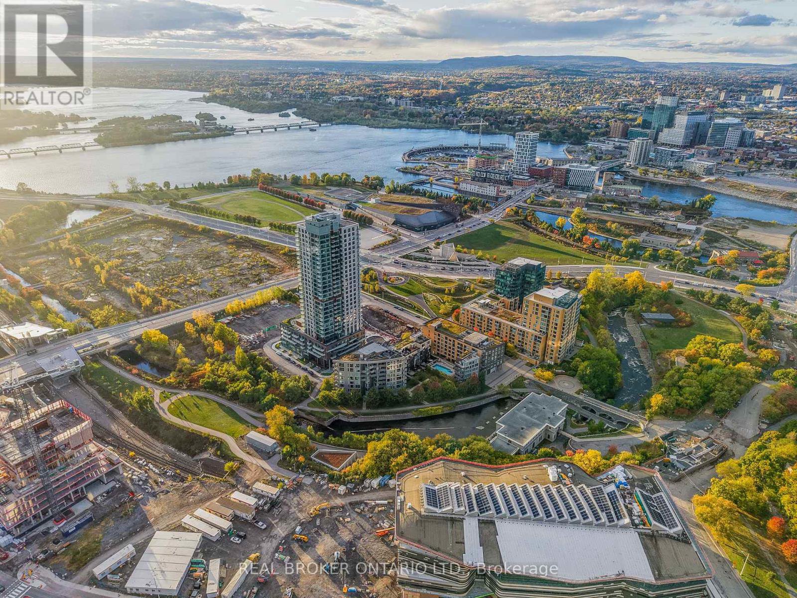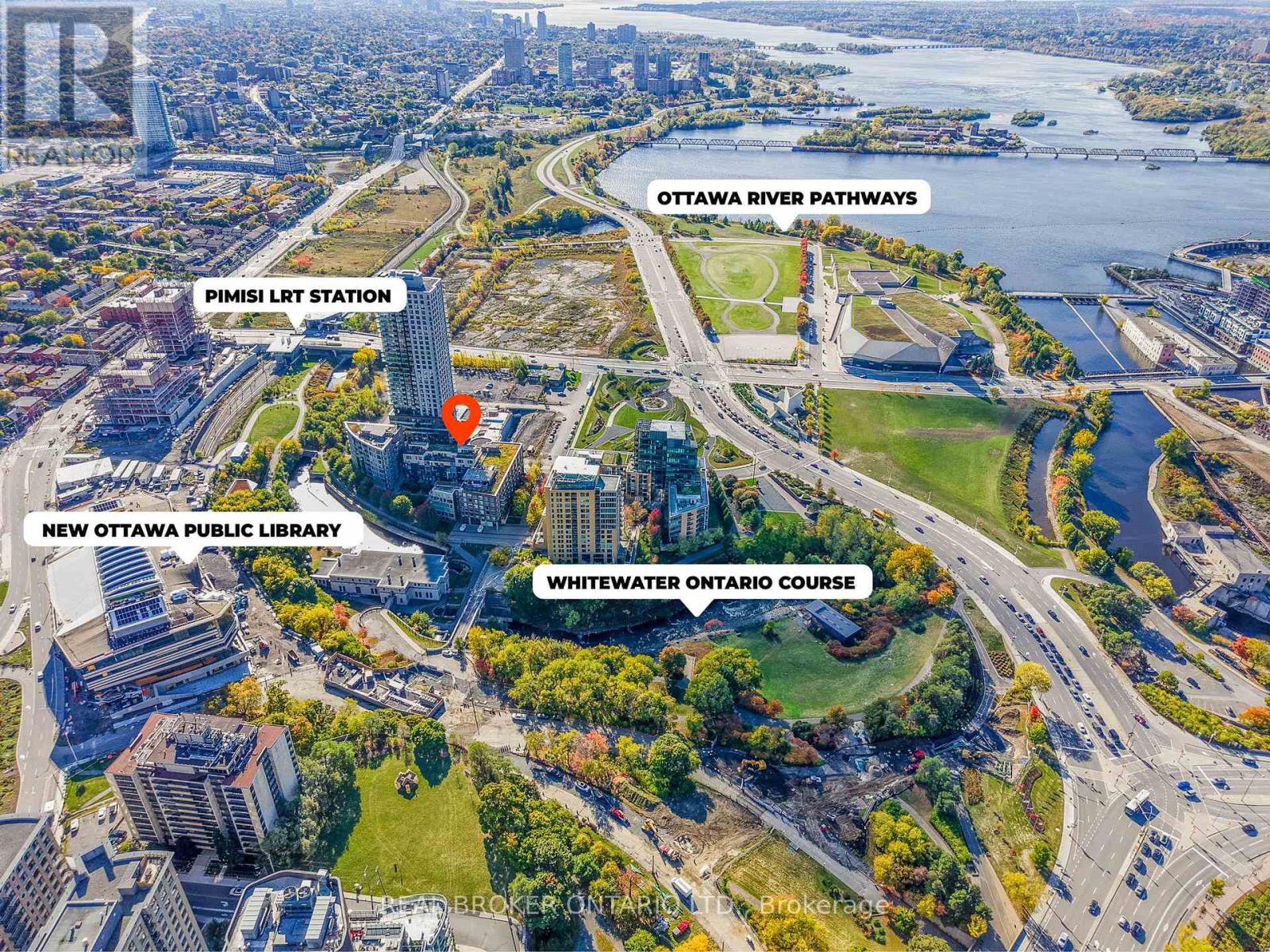 Experience modern design and ultimate urban living in this spacious 1,340 Sq Ft, 2-storey, 2-bed/2-bath condo with PRIVATE ROOFTOP TERRACE at Fusion LeBreton, one of the best price-per-square-foot opportunities for a 2-bed condo in all of downtown Ottawa! Perfectly located on the edge of downtown, surrounded by greenspace, steps to top-rated restaurants, and less than a 5-minute walk to LRT! Infused with contemporary style and high-end finishes, this well-maintained condo offers excellent privacy with bedrooms on separate levels and a bright, open-concept main living area overlooking a tranquil grassy courtyard below. The modern kitchen features a granite waterfall island, chic glass mosaic backsplash, stainless steel appliances, and central atrium that draws natural light into the heart of the unit. Primary bedroom with dual closets and cheater ensuite also located on the main living level. The showstopper is your private rooftop terrace with unobstructed downtown views, an incredible setting to unwind or entertain. Building residents enjoy resort-style amenities including a heated outdoor pool, fitness centre, party room, and terrace with BBQs. Step outside and connect directly to the Ottawa River Pathway for a morning walk, grab a bite in Little Italy, catch live music at Ottawa's Bluesfest, or ride the LRT to the Rideau Centre, this location delivers unmatched access to the best of downtown living. NEW LG washer & dryer. BONUS in-unit storage room. Includes underground parking and additional storage locker. Very well managed condo with healthy reserve fund and no special assessments. Condo fee includes: gas, water, amenities, building insurance, operation/ maintenance/ repair of all common elements, elevators, emergency generator, garage maintenance, security/fire monitoring, snow removal, landscaping, and exterior window cleaning. Discover an exceptional urban lifestyle at Fusion LeBreton!