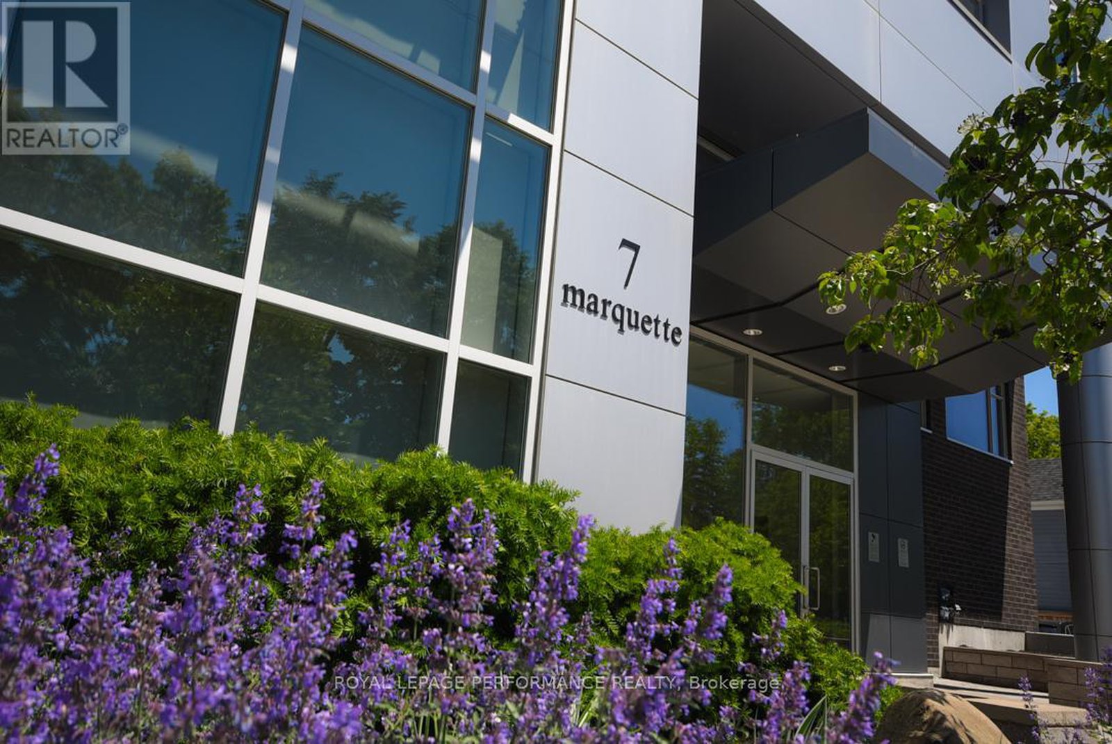 This is an exceptional opportunity to own a bachelor/studio apartment with a well sized balcony in the highly sought-after Kavanaugh building, constructed by Domicile and situated in the trendy Beechwood Village. Located at the corner of Beechwood and Marquette, this property provides convenient access to downtown. Its prime location makes it an ideal choice for professionals, investors, those looking to downsize, or anyone seeking a pied-à-terre. This bright and sunny, south-facing unit is thoughtfully designed for both comfort and practicality. The contemporary kitchen features granite countertops, a ceramic backsplash, and stainless steel appliances. The bathroom boasts a glass shower, granite countertop, and ample storage. Convenience of built-in cabinetry and a Murphy bed. The apartment showcases modern, functional design with high-end finishes, including ceramic tile and engineered hardwood flooring. A storage locker is included. The building itself offers a modern design with a welcoming foyer, party room, guest suite, fitness center, bike storage, workshop, car and pet wash, visitor's parking, a library and a rooftop terrace with stunning views. Well-managed and secure building with a low condo fee. Imagine enjoying the sunset from your spacious balcony. Freshly painted and professionally cleaned, this unit is truly move-in ready- just unpack! Flexible possession. Priced to sell.