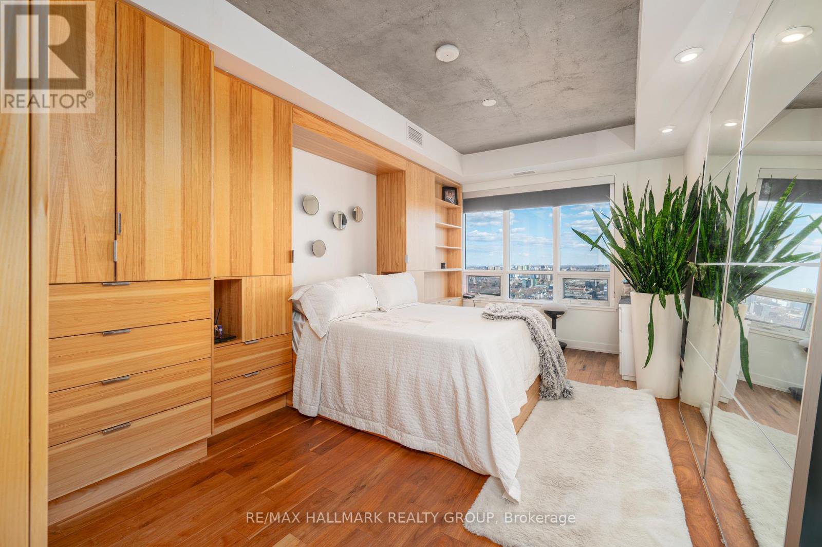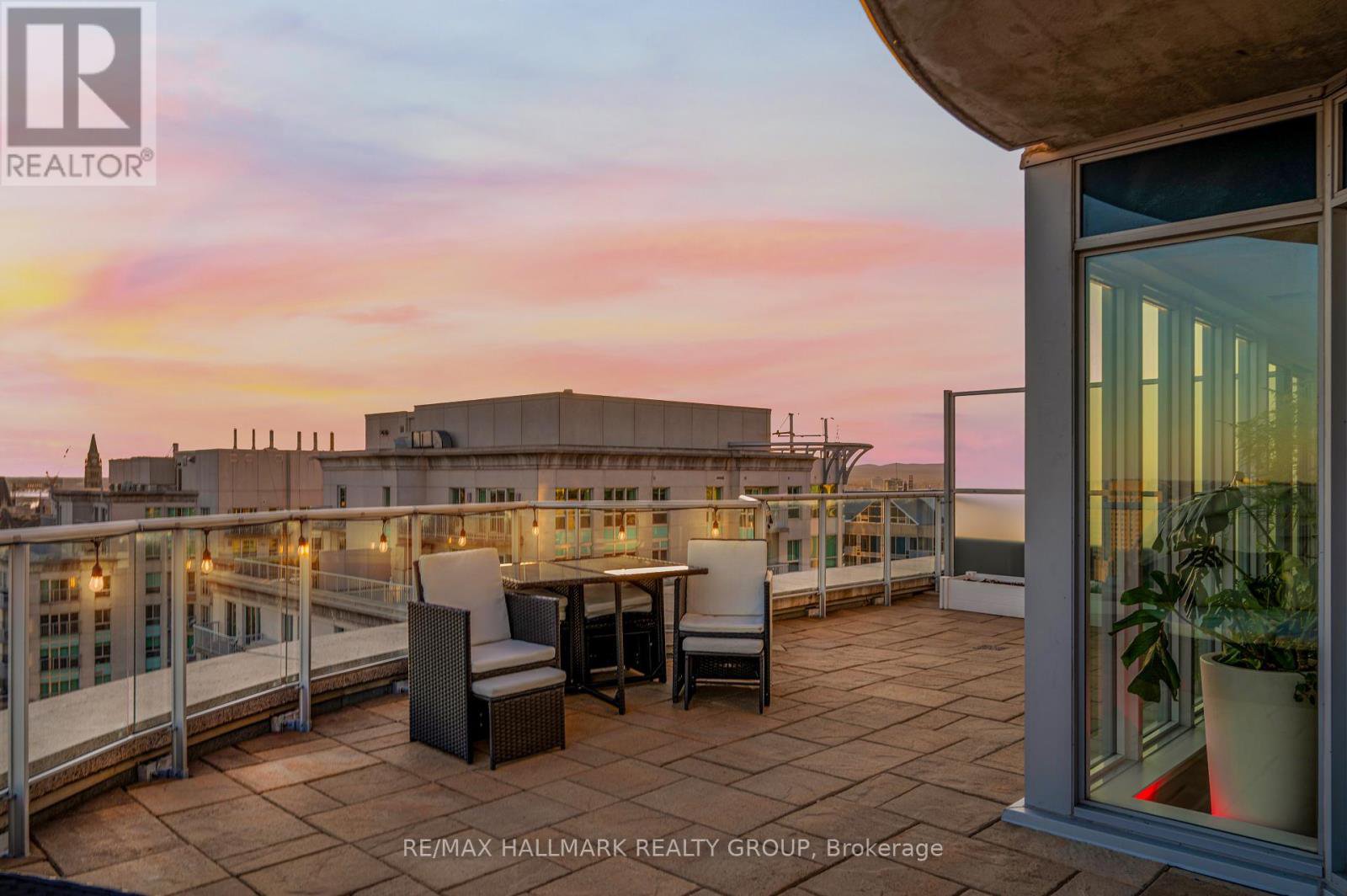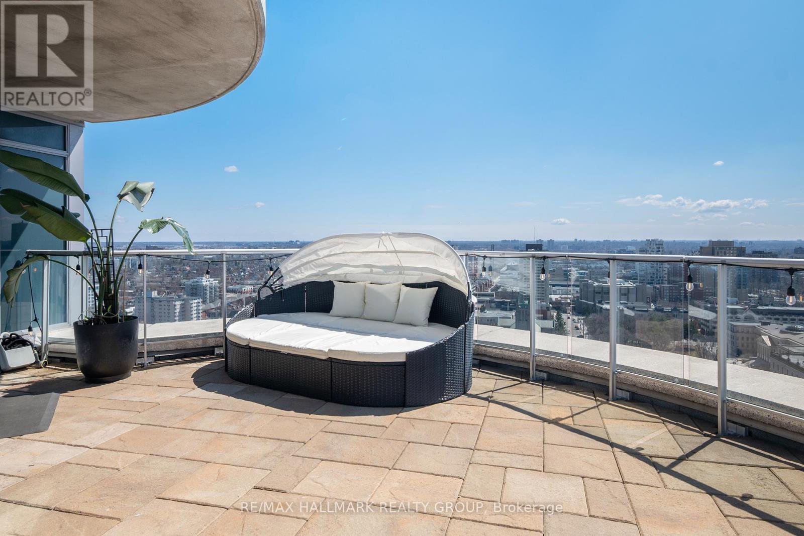 Claridge Plaza Phase 4 The Tribeca Penthouse Welcome to elevated living in the heart of downtown Ottawa. This stunning 2 bed + den, 2 bath penthouse offers an exceptional blend of luxury, comfort, and functionality with 1,415 sq ft of thoughtfully designed interior space and an impressive 480 sq ft private terrace showcasing panoramic views of the city skyline.Step inside to discover a bright, open-concept layout highlighted by floor-to-ceiling windows that flood the space with natural light. Rich hardwood flooring flows seamlessly throughout, adding warmth and sophistication to the contemporary design. The sleek, modern kitchen is a chefs dream complete with quartz countertops, stainless steel appliances, custom cabinetry, and an oversized island ideal for meal prep, casual dining, or entertaining guests.The spacious primary bedroom features generous closet space and a spa-inspired ensuite, while the second bedroom offers flexibility for family or guests. A separate den adds even more versatility, making it perfect for a home office, or a reading nook. Two beautifully appointed bathrooms round out the interior with premium finishes and timeless appeal. Located in the highly sought-after Claridge Plaza Phase 4, residents benefit from access to top-tier amenities including a fitness centre, rooftop terrace, party room, and 24/7 concierge service. For added convenience, this penthouse includes one underground parking space and a private storage locker. Don't miss this rare opportunity to own the prestigious Tribeca floor plan a perfect blend of style, space, and low-maintenance luxury living in the vibrant core of the city. CONDO FEES INCLUDE: Water , A/C, Heat, Building Insurance, Building Maintenance, Garbage Removal, Snow Removal, Common Areas Maintenance, Reserve Fund Allocation. Parking spot: P1 5, Storage Locker: Door behind the parking spot