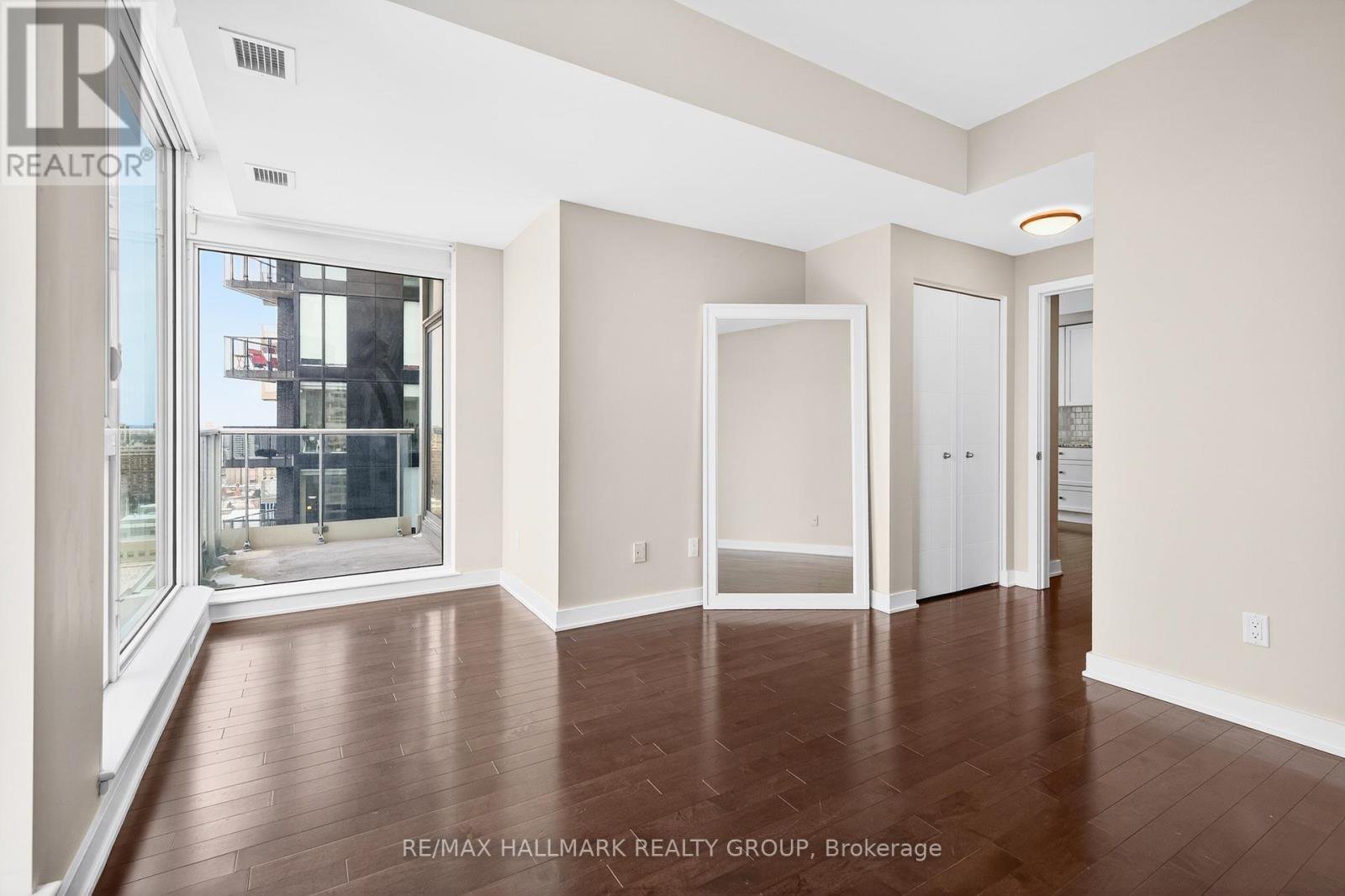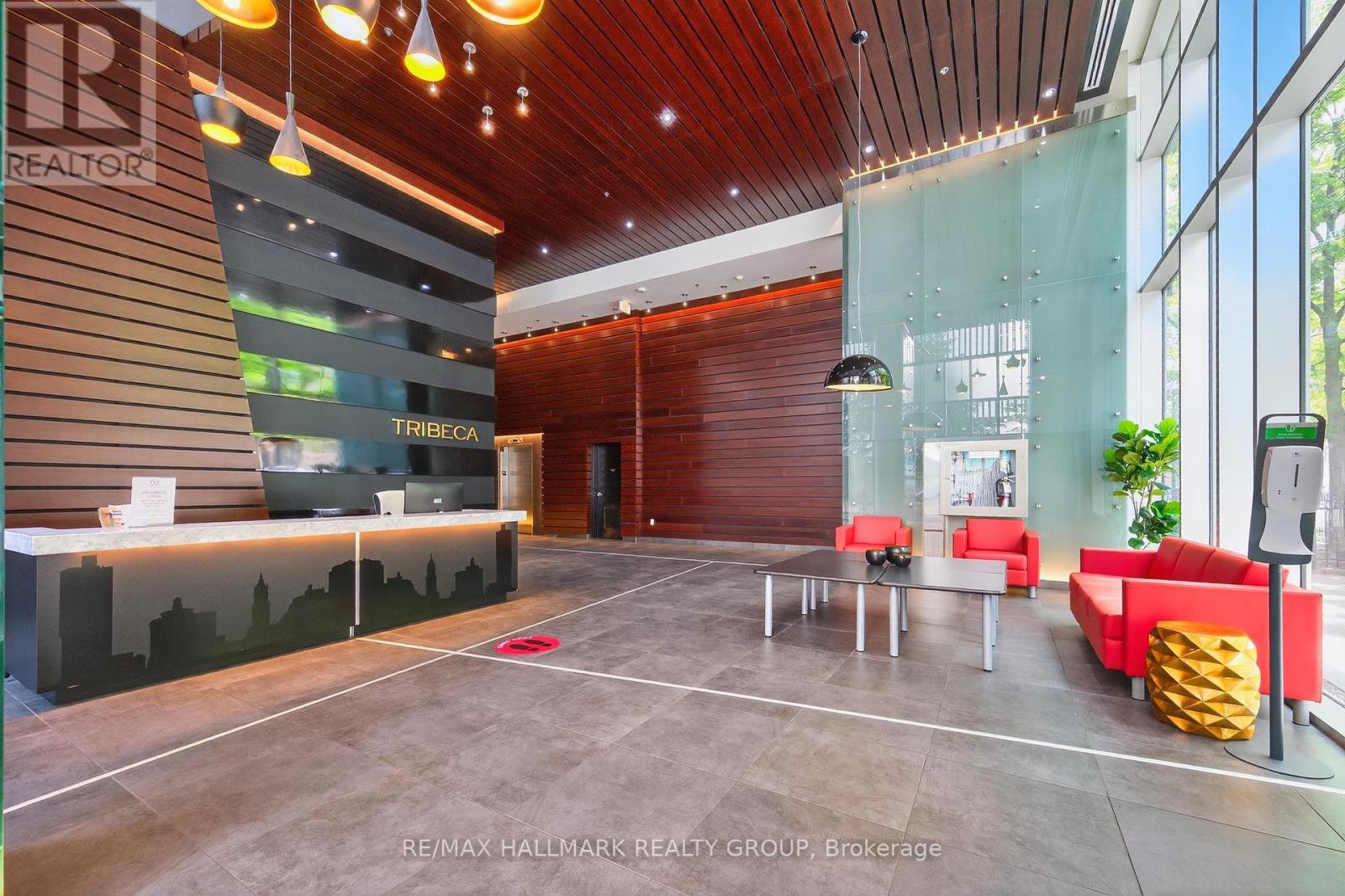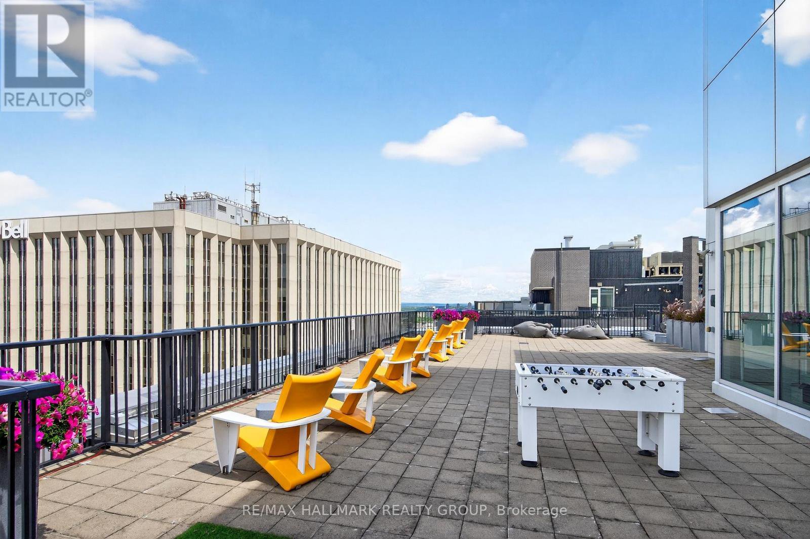 Welcome to The Surrey at Tribeca East! This beautifully maintained 1 Bedroom + Den condo offers 753 sq. ft. of bright, open-concept living space on the 21st floor, showcasing elevated city views and a smart, functional layout. This unit features a spacious primary bedroom, a versatile den ideal for a home office, and a modern kitchen/living/dining area designed for both everyday living and entertaining. The sleek kitchen is equipped with granite countertops, stainless steel appliances, and a moveable island, seamlessly connecting to the living space. Step onto your private balcony and take in the downtown skyline from above. Additional highlights include in-unit laundry and central air conditioning. Residents enjoy access to exceptional amenities, including a fitness centre, indoor pool, party room, rooftop terrace, and concierge service. Located in an unbeatable downtown setting - Farm Boy right next door and Parliament Hill, the Rideau Canal, LRT stations, shopping, and dining all within walking distance - you may not even need the one underground parking spot included. Ideal for professionals, downsizers, or investors seeking premium urban living at one of Ottawa's most desirable addresses. Condo fees include: Heat, Water, A/C, Building Insurance, Garbage Removal, Reserve Fund Allocation, and Building Maintenance.