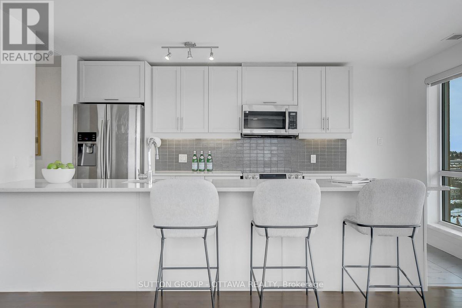 Welcome home to this beautifully appointed 2-bedroom, 2-bathroom corner unit at Stirling Park - one of the largest models in the building (The Afton), offering 1195 sq ft of thoughtfully designed living space. The bright, open-concept layout is enhanced by floor-to-ceiling windows, high ceilings and sweeping city views, filling the condo with natural light. A spacious foyer and entranceway welcome you into a chef-inspired kitchen featuring quartz countertops, stainless steel appliances, and a large island perfect for entertaining or everyday living. A versatile dining nook or small home office area provides flexible space to suit your lifestyle. The generously sized primary bedroom is complete with a hotel-inspired ensuite bathroom and walk-in closet. Step outside to the expansive 22' x 5' balcony, ideal for morning coffee or al fresco dining while enjoying unobstructed city views. Hardwood throughout! Additional highlights include in-suite laundry, underground parking, and a large storage locker. Residents enjoy amenities including an indoor salt water swimming pool, fully equipped fitness centre, outdoor patio with BBQs, carwash bay and ample visitor parking. Ideally located in the heart of the city, just steps to groceries, shopping, restaurants, and transit, plus enjoy walking/cycling paths into a nearby conservation area to enjoy the ducks. This home offers the perfect blend of comfort, convenience, and urban living.