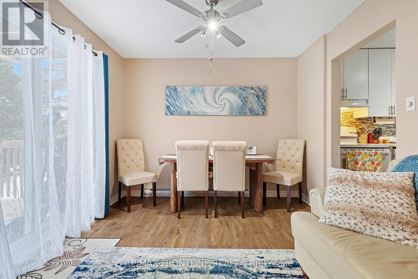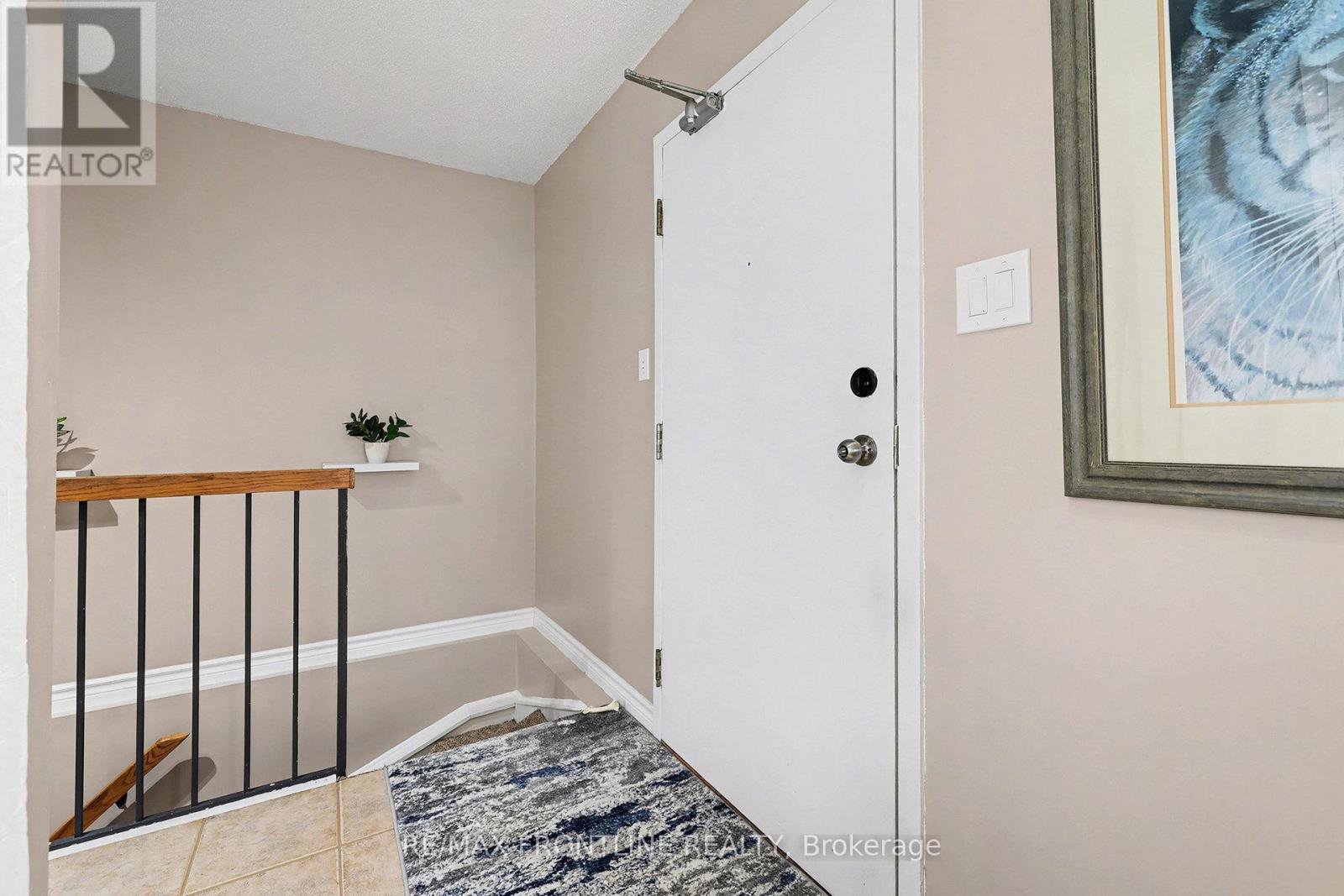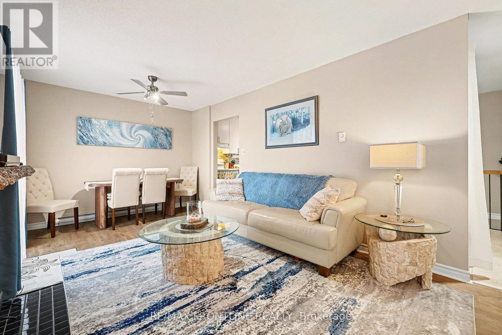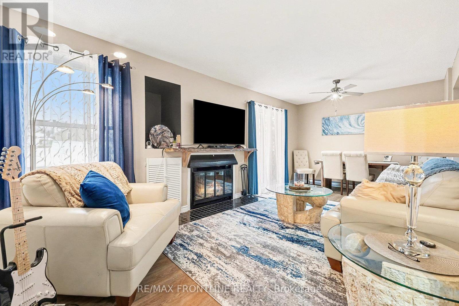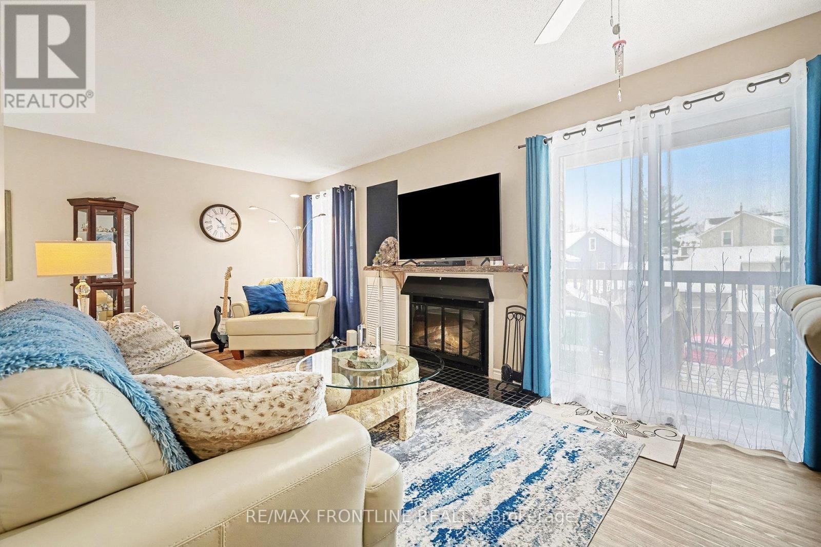 Welcome to this inviting two-story, 2 bed, 2 bath condominium in the heart of Carleton Place, where thoughtful design meets everyday comfort, in a setting that feels like home from the moment you arrive. Step inside to discover a sun-drenched living and dining area that serves as the heart of this residence. A charming wood-burning fireplace creates a warm focal point, perfect for cozy evenings. Sliding glass doors open onto a private balcony. The updated kitchen with generous storage solutions make meal preparation an absolute pleasure. Every detail has been considered to maximize functionality and you will appreciate the convenience of the main floor powder room. The lower level reveals a full 4pc bathroom and two beautifully proportioned bedrooms, each featuring windows that flood the spaces with natural light. The primary bedroom walk-in closet provides abundant storage. The combination of energy efficient baseboard heaters and the fireplace ensures comfortable temperatures regardless of the season. The unique small fenced yard provides added privacy and a secure outdoor space for your small pets to enjoy. There is also room for small raised gardens if gardening is a passion. This home includes one parking space. The location truly shines with Findlay Park just steps away and the picturesque Mississippi River within walking distance. Local shops, restaurants, schools and so much more are all nearby, while easy highway access simplifies commuting. This move-in ready home awaits its next chapter. Schedule your private viewing today and discover the perfect blend of comfort and convenience that could be yours. Current monthly condo fees 572.00 which include water, sewer, garbage, snow removal, building insurance.