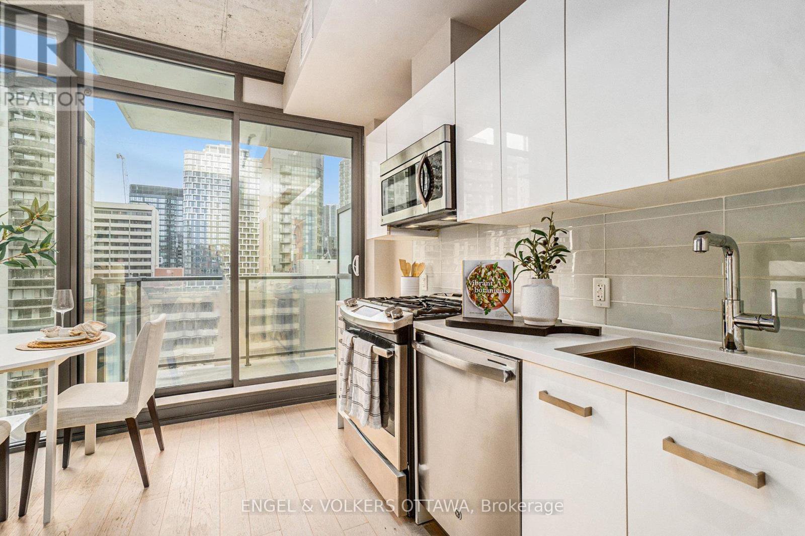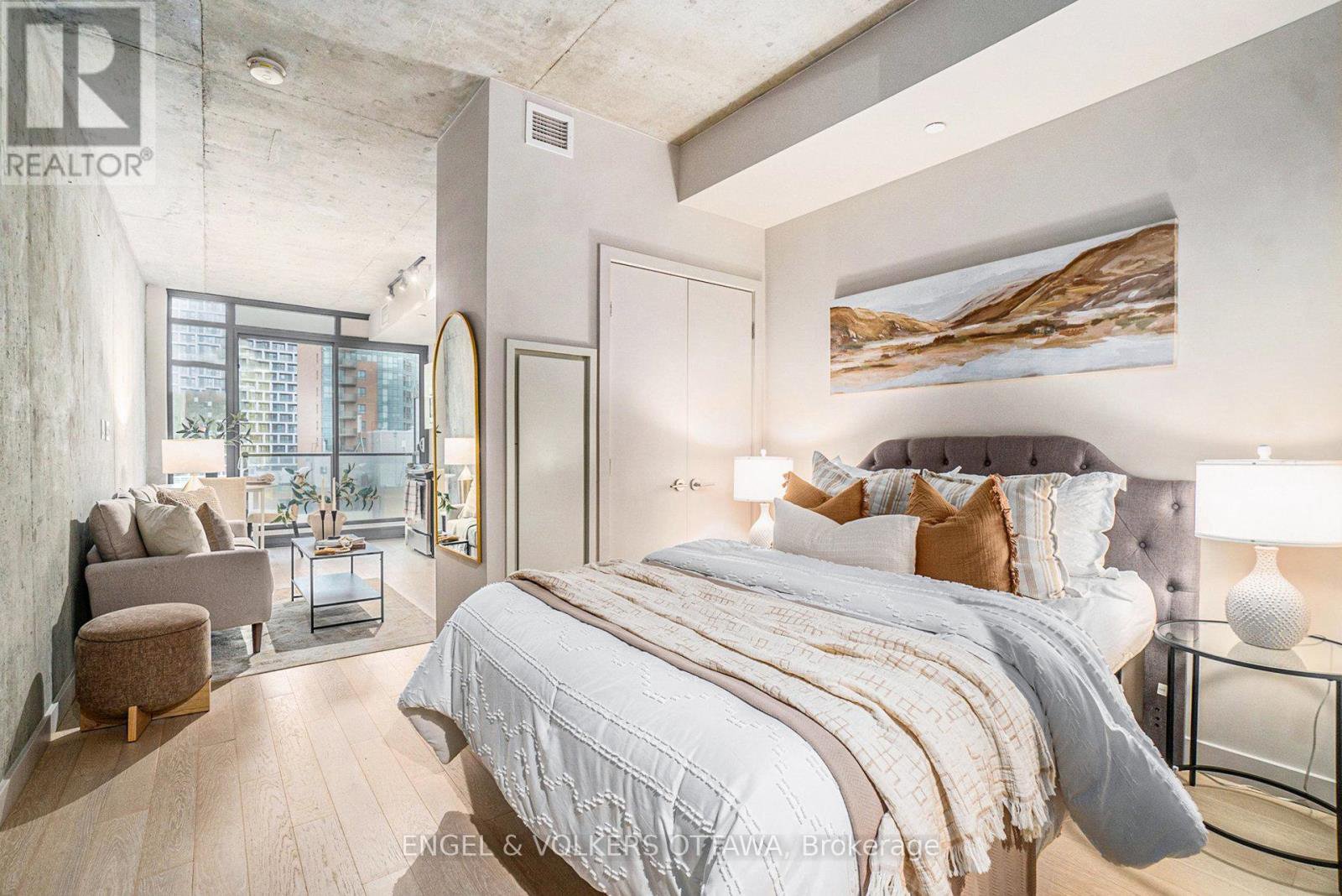 Welcome to Gotham, one of Ottawa's most striking and contemporary condominiums, designed by Lamb Development Corporation. This sophisticated studio suite combines sleek modern finishes with an unbeatable downtown location - perfect for professionals, investors, or anyone seeking a vibrant urban lifestyle. The unit offers a bright open-concept layout with floor-to-ceiling windows, hardwood flooring, and 9ft exposed concrete ceilings that create a modern, loft-inspired aesthetic. Step outside to your private balcony, perfect for relaxing with city views. Residents of Gotham enjoy premium amenities, including 24-hour concierge service, a stylish party room with full kitchen and outdoor terrace, BBQ area, and bike storage. Located in the heart of Centretown, Gotham places you steps from Lyon LRT Station, Parliament Hill, LeBreton Flats, and the Rideau Canal. Enjoy Ottawa's best cafés, restaurants, and shops within walking distance, along with excellent walk, bike, and transit scores. This well-managed building blends architectural style with urban convenience - offering the perfect balance between downtown energy and private retreat. Whether as a first home or investment, this studio delivers modern design, lasting value, and an unbeatable location in the heart of Ottawa. *426sqft + 43 sqft balcony