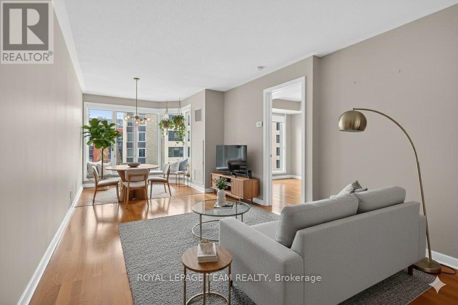 Here's your opportunity to own one of the largest floor plans in the popular Somerset Gardens. This spacious 1-bedroom plus den condominium offers approximately 694 square feet of open, well-designed living space. A tiled foyer welcomes you into the unit and continues through the kitchen and main hall closet. The open-concept kitchen features abundant cabinetry & a breakfast bar with additional built-in storage, along with brand-new, never used stainless-steel fridge, stove, dishwasher & hood fan (Dec. 2025) The combined living/dining areas provide generous space for everyday living & entertaining. The bright solarium showcases a large floor-to-ceiling window, a perfect spot to enjoy city views, create an indoor garden, or relax in a quiet setting. The versatile den offers flexible use as a home office or additional living space. The living/dining area, solarium, den, and primary bedroom all feature engineered hardwood flooring. The spacious primary bedroom comfortably accommodates a queen-size bed & includes a full-length window & ample closet space. Additional features include new programable thermostat 2024, a large bathroom featuring a new toilet 2024 and ensuite washer and dryer. There's also a spacious storage room with built-in shelving. Somerset Gardens offers excellent amenities, including a rooftop terrace with BBQs, a rooftop sun room with wall-to-wall windows, huge roof top terrace, a library, amenities/party room & bike storage. Ideally located in Ottawa's bustling Golden Triangle, this condo is steps to restaurants, cafés, shopping & everyday conveniences such as grocery stores & banks. The University of Ottawa's main campus & Parliament Hill are both approx a 15-minute walk away. Public transit, bike paths, museums & other venues such as the NAC are all part of Ottawa's downtown lifestyle. Walking & biking scores 99. Transit score 98. Perfect for students, professionals, first-time buyers, downsizers, or investors. Immediate occupancy available.
