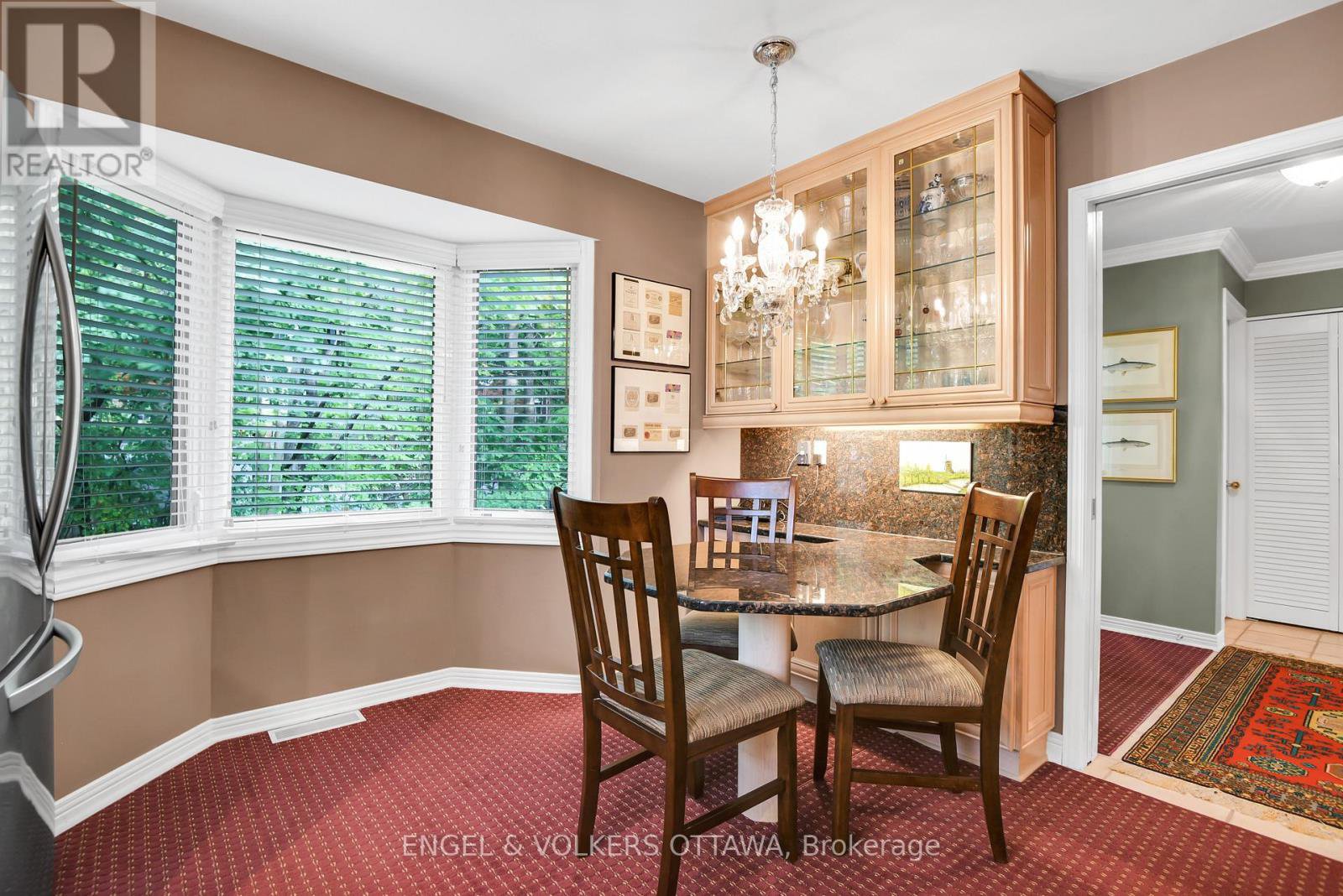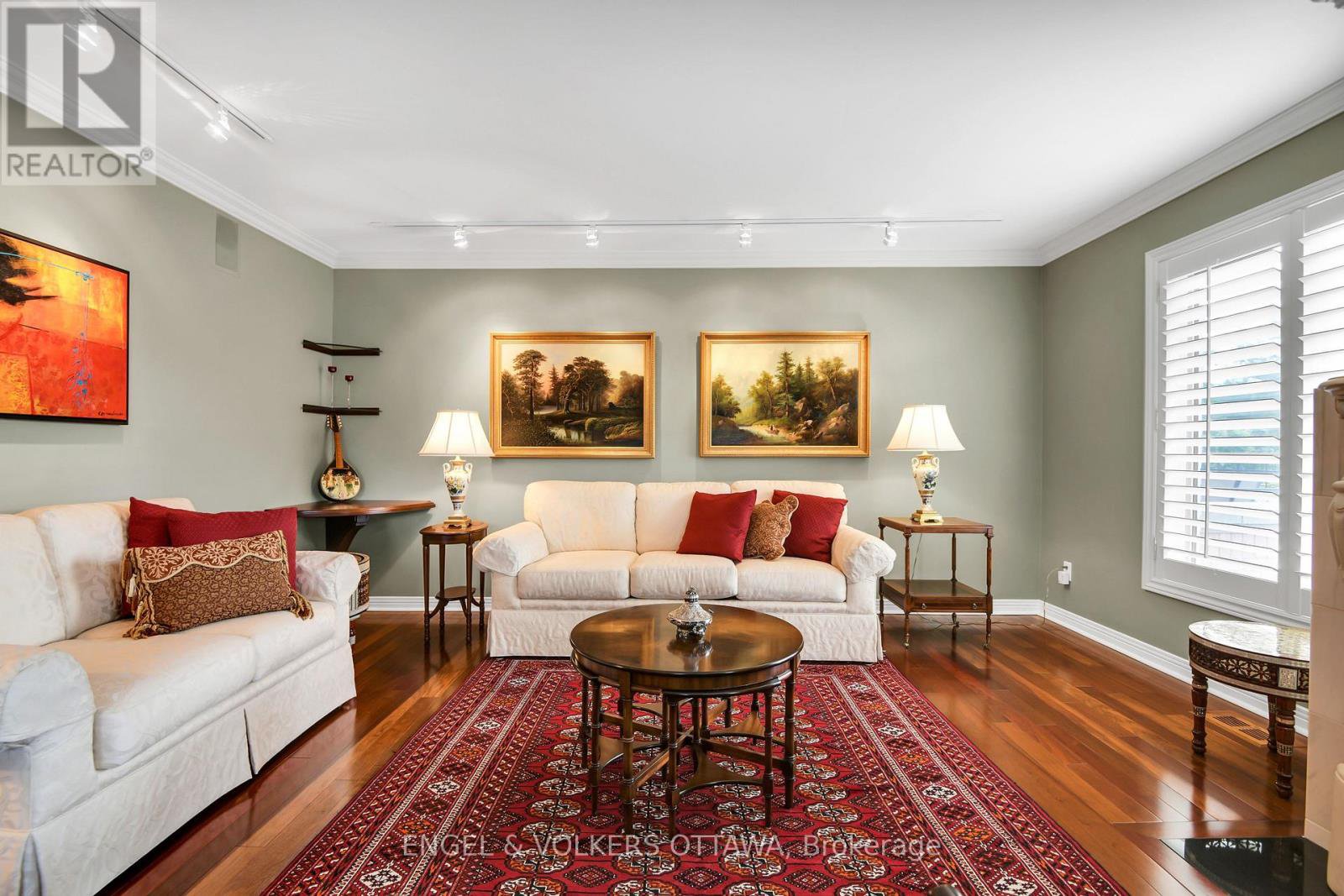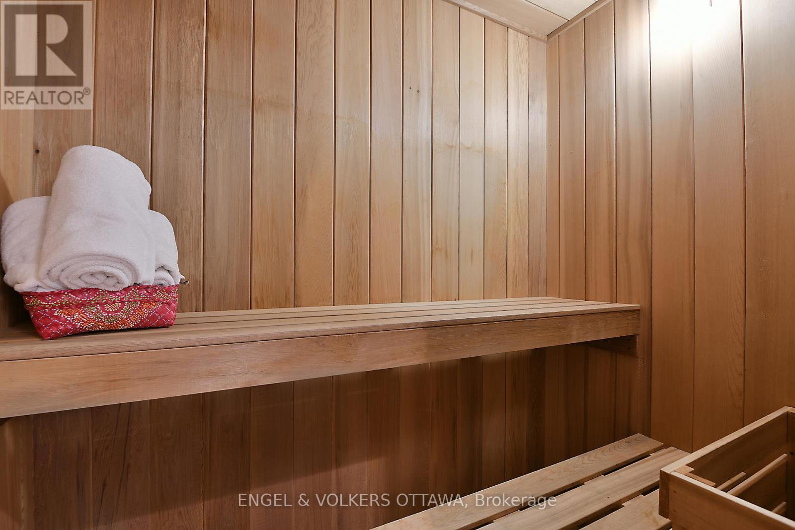 Rockcliffe House is a well-established condo development in Rockcliffe Park oriented on The Pond- a favourite swimming delight for many locals. Unit 1 is a secluded, one-of-a-kind end unit tucked away and offers exceptional privacy. The elevated designed space features Brazilian hardwood floors, a dedicated dine-in kitchen with a built-in breakfast nook and custom cabinetry, stainless steel appliances and stone counters. A formal dining room offers built-in cabinetry and a walkout to a private garden deck, perfect for "Al Fresco" summer dining. A separate den on the main level is a welcome retreat for relaxing and an ideal space for a dedicated office. A half level up is a more formal space, anchored by a stone-cast mantle over a wood-burning fireplace. The room is flooded with an abundance of light filtering through large windows. The space is designed with areas designated for conversation and complemented with a bar area that is positioned for casual conversation. The next level boasts 2 well-proportioned bedrooms, with one currently designed as a dressing room featuring custom California closets, and the second bedroom features a vaulted ceiling, offering an airy sensibility. The primary is another 1/2 storey with a walk-in closet, upscale ensuite and attractive custom built-ins. The lower level is an excellent space for a home gym with a sauna and spa-like whirlpool tub for relaxing after a workout. The space is unique with quality finishes, including trim moulding and custom millwork throughout. Not your everyday space and worthy of a look-see!