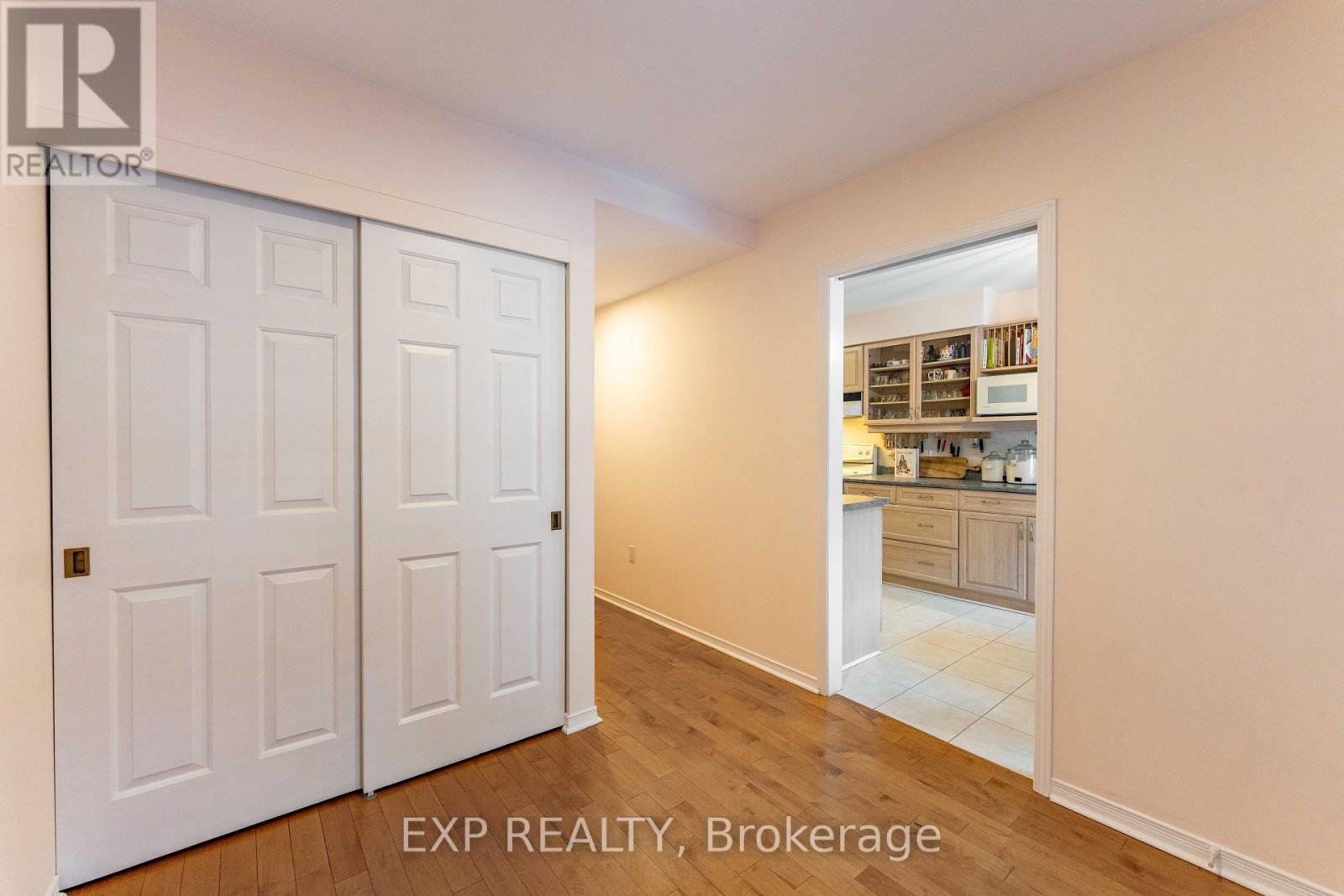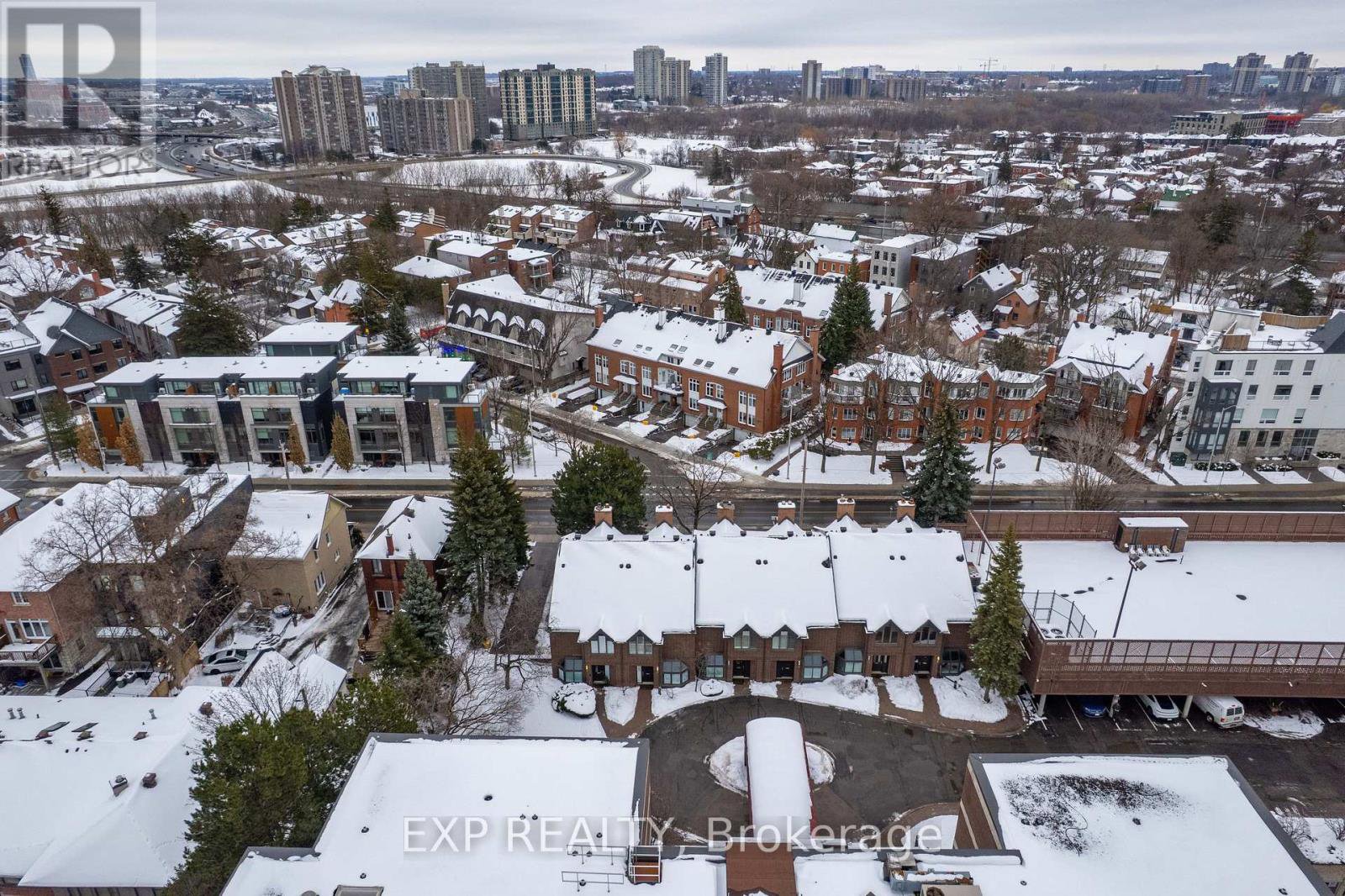 Welcome home to refined urban living at Canal One Eleven, a rare and prestigious townhouse condominium offering downtown living in an exclusive community, resort-style amenities, and unparalleled access to the Rideau Canal. This private residence welcomes you with a spacious foyer and hardwood flooring throughout, leading into a bright kitchen with a breakfast nook that flows seamlessly into the open-concept living and dining area, anchored by a cozy wood-burning fireplace. Upstairs, two generously sized bedrooms provide exceptional comfort, including a primary suite, with a full ensuite, double closets and a second bedroom with its own full bath. The finished basement adds valuable flexibility with a large den ideal for guests, a home office, or entertainment, along with a dedicated laundry room offering excellent storage. A completely separate private entrance provides direct access to your underground parking space, keeping your vehicle warm and secure year-round. The home also features a private backyard, perfect for outdoor living. Residents enjoy privileged access to premium amenities including an indoor pool, hot tub, sauna, fitness centre, squash court, golf swing net, rooftop tennis court, and on-site security. Steps from the canal, this exceptional location offers immediate access to Ottawa's highways and parkways for effortless commuting, along with skating, walking, and cycling paths that connect seamlessly to the University of Ottawa, Parliament Hill, and the best of downtown living. Some photos are virtually staged.