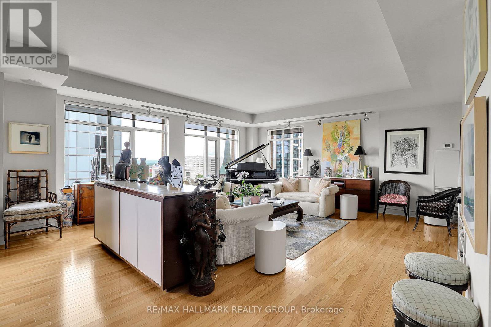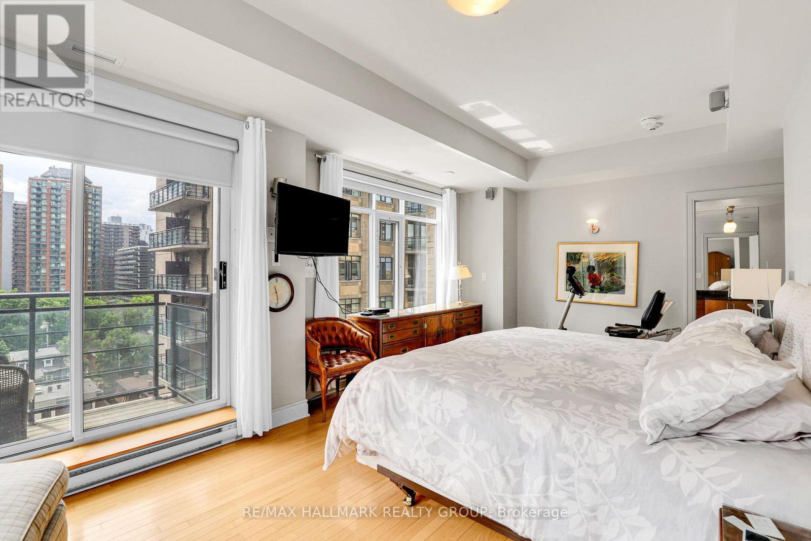 Experience luxury and space in this rare 3-bedroom (or 2-bedroom plus den) unit perched high above Ottawa's vibrant Centretown with stunning north-west views of the Ottawa River and the Gatineau Hills and balconies on both the north and south sides. Designed with an open-concept layout, the home is bathed in natural light, highlighting the rich hardwood flooring and elegant finishes and is ideal for entertaining. The gourmet kitchen boasts granite countertops, stainless steel appliances, and a rare double pantry. The primary suite features a spacious 5-piece ensuite, providing a serene retreat, walk-in closet with custom built-ins and balcony. The versatile layout makes for an ideal work from home space. Additional conveniences include in-unit laundry, two storage lockers combined, two underground parking spaces (with potential for third spot not included). Building amenities include the peaceful Gardens, gym, party room and underground guest parking. Steps to the Ottawa River Parkway walking and biking paths, Lyon Street O-train, Lebreton Flats and the new library as well as all Centretown has to offer. Vacant, quick closing available. Parking PB 33 & 34. Locker PB 13 & 14.