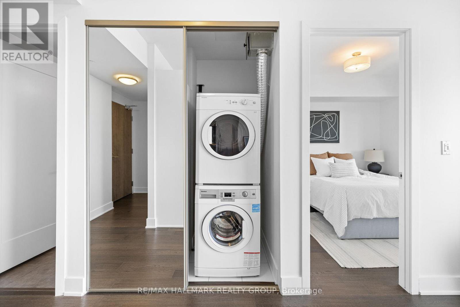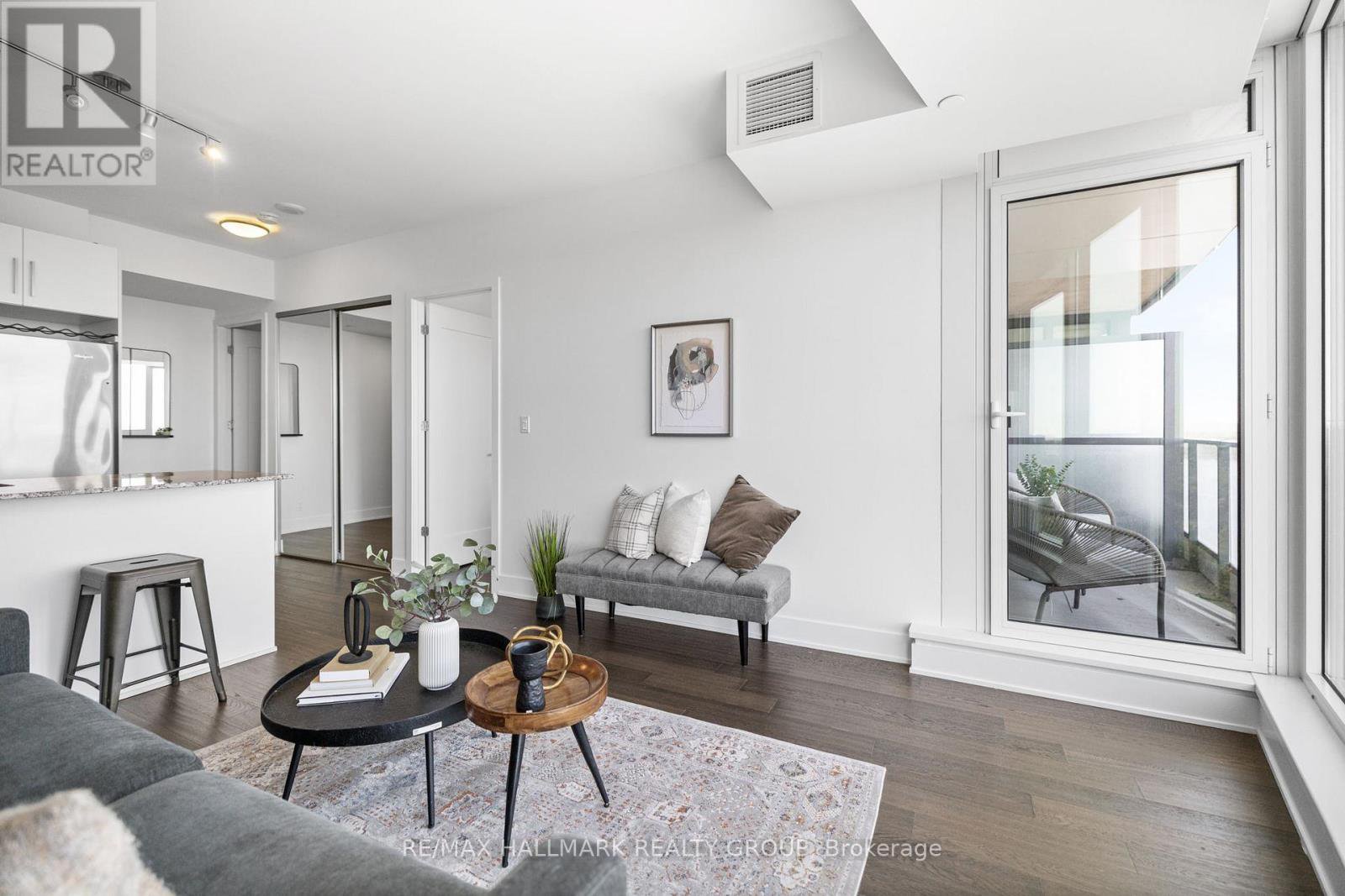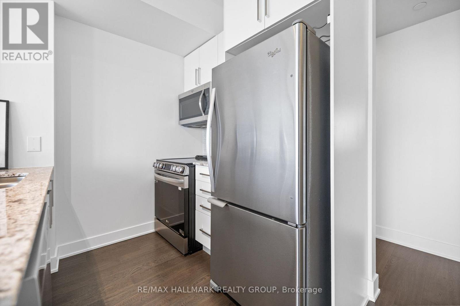 Welcome to unit 1906 at 485 Richmond Road - a beautiful 1-bedroom, 1-bathroom condo in the vibrant heart of Westboro, one of Ottawa's most soughtafter neighbourhoods. This bright, contemporary home features hardwood floors throughout and stunning floor-to-ceiling windows that fill the space with natural light. Recent upgrades add style and comfort, including a chic kitchen backsplash, upgraded countertops, modern cabinet hardware, new flooring, and elegant Zen mirror sliding doors. Window fixtures are also included for your convenience. The spacious bedroom offers a large closet, providing plenty of storage. The unit also features a modern 3-piece bathroom finished with elegant quartz countertops. The kitchen is thoughtfully designed with stainless steel appliances and sleek quartz surfaces, perfect for cooking and entertaining. Additional highlights include insuite laundry and a generous southfacing balcony that offers stunning views and abundant sunshine. Residents enjoy excellent building amenities, including a fully equipped fitness center and two stylish party rooms, one complete with a full kitchen for gatherings. Just steps away, explore Westboro's best cafes and restaurants like Fratelli and Pure Kitchen, boutique shops, grocery stores, and scenic walking and biking trails along the Ottawa River. This condo perfectly combines modern comfort with an unbeatable location in one of Ottawa's most desirable communities.