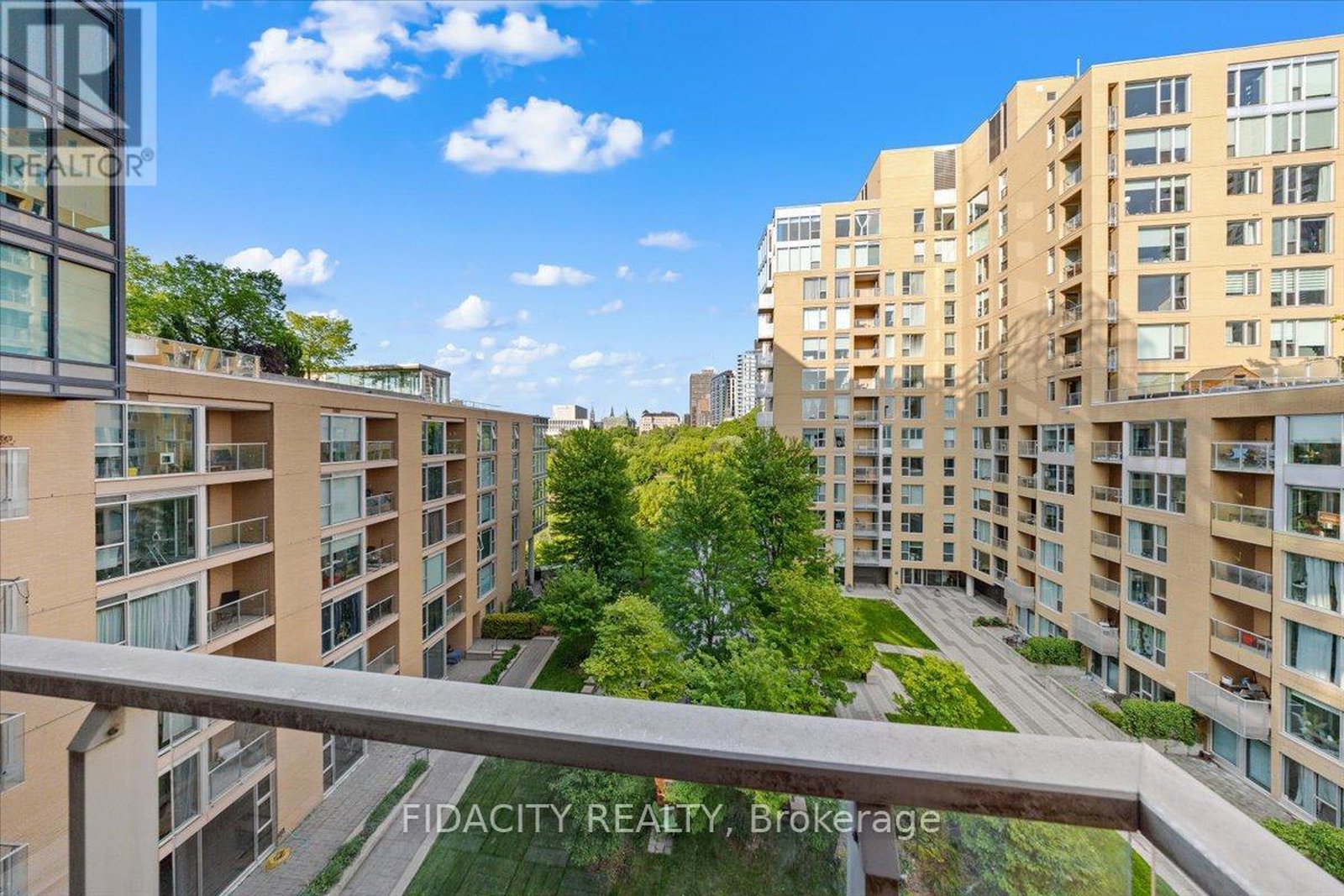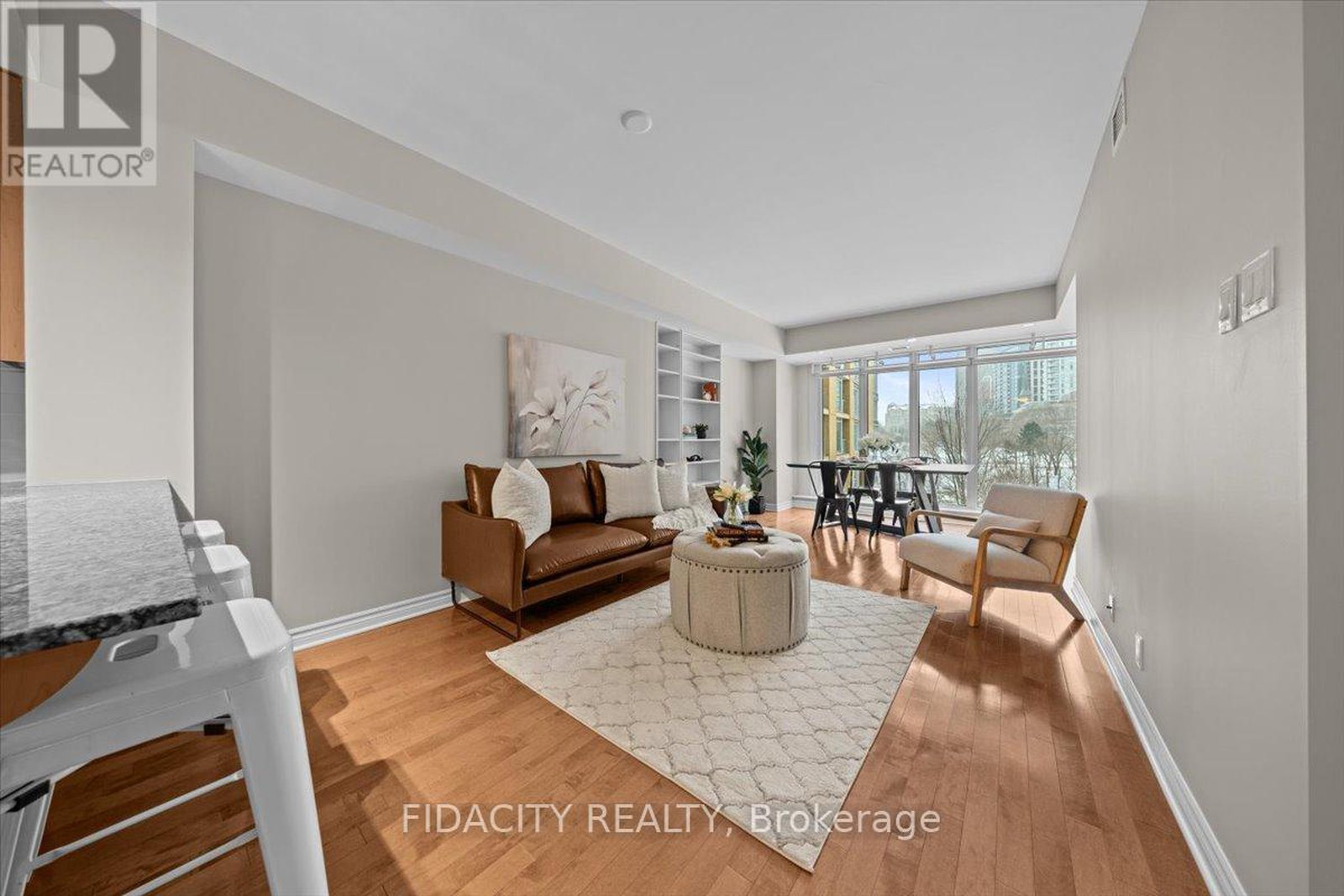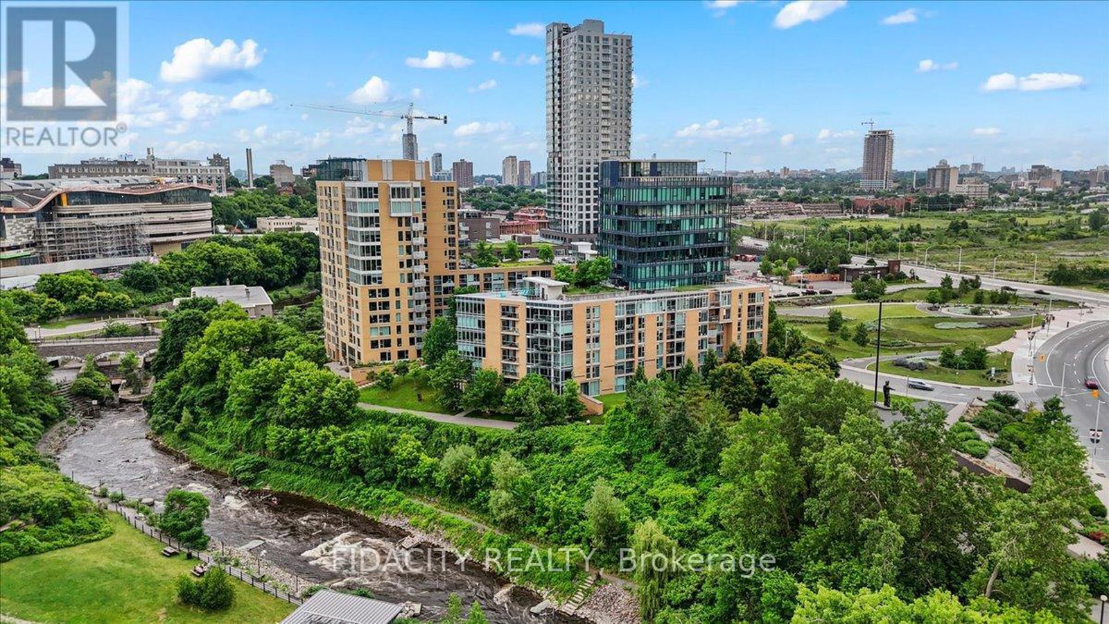 Live immersed in nature without compromising downtown convenience in this one-of-a-kind one-bedroom plus den residence at LeBreton Flats, complete with underground parking. Located in an elegant LEED-certified building, this approximately 700+ sq ft suite offers a rare sense of space and tranquility.Upon entering, you are greeted with stunning views. The unit is quietly positioned overlooking the building's landscaped garden courtyard, sheltered from street noise and framed by floor-to-ceiling windows with views of mature trees the Bronson escarpment and beyond. Elegant hardwood flooring flows throughout the open-concept living areas, while the thoughtful layout delivers both comfort and functionality.The kitchen is fitted with granite countertops, ample counter and cabinet space, a breakfast bar, an oversized pantry, and a cleverly concealed storage nook hidden behind a swinging bookcase. The primary bedroom offers more beautiful views, complemented by a separate, spacious den and stacked laundry. A private covered balcony provides the ideal setting to enjoy morning coffee surrounded by greenery.Residents enjoy an impressive collection of amenities, including a rooftop terrace with panoramic views of the Ottawa River, Parliament, and War Museum, a fully equipped gym, sauna, party room, bike storage, and pet-friendly policies. The unit includes 1 underground parking spot and a storage locker, with the building's electrical infrastructure in place for a future EV charger if desired. Ideally located just minutes from Pimisi LRT Station with easy cross-city access, and close to Bayview Station, this spot is within walking distance of downtown offices and shops, Little Italy, Chinatown, river pathways, kayaking and cycling routes, Bluesfest grounds, and the future Adisoke Central Library. The future Ottawa Senators arena is also nearby, further enhancing the long-term appeal of this exceptional neighbourhood.( Heat & Water included in condo fees.)
