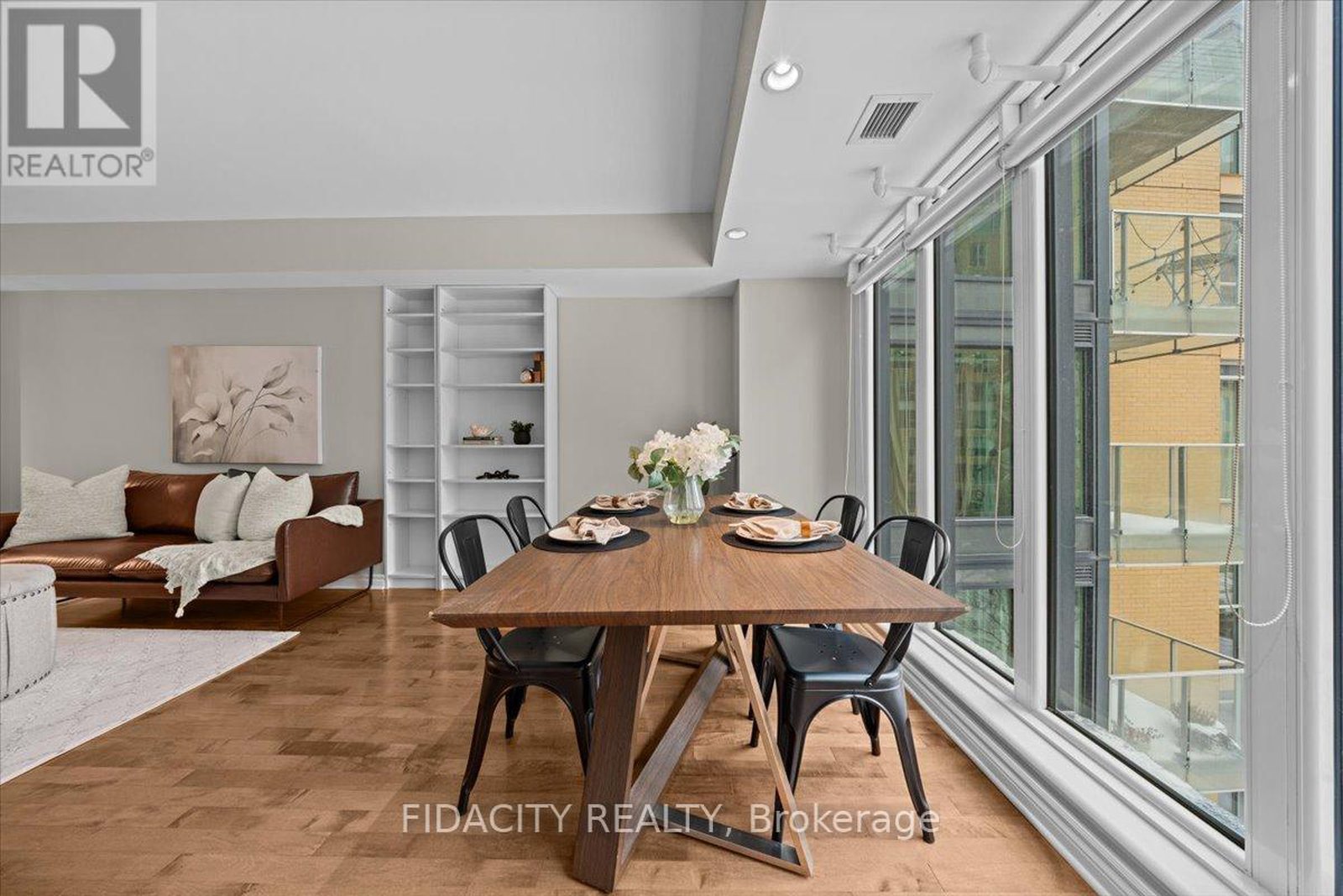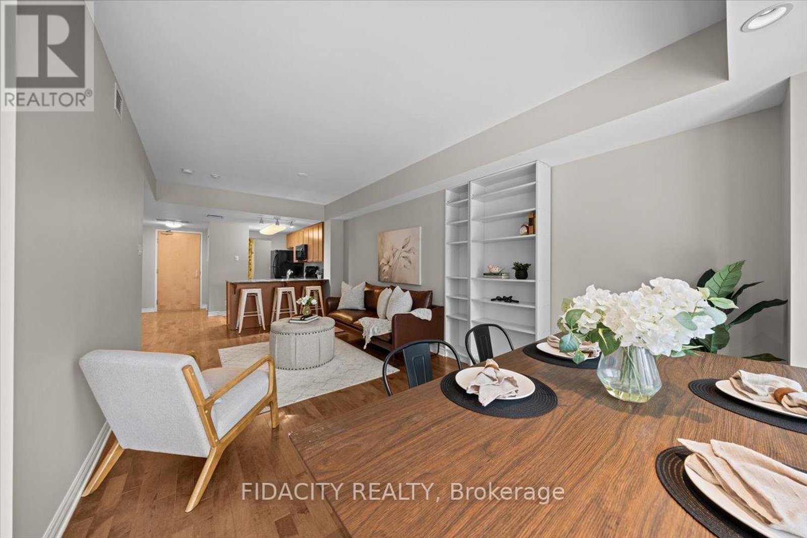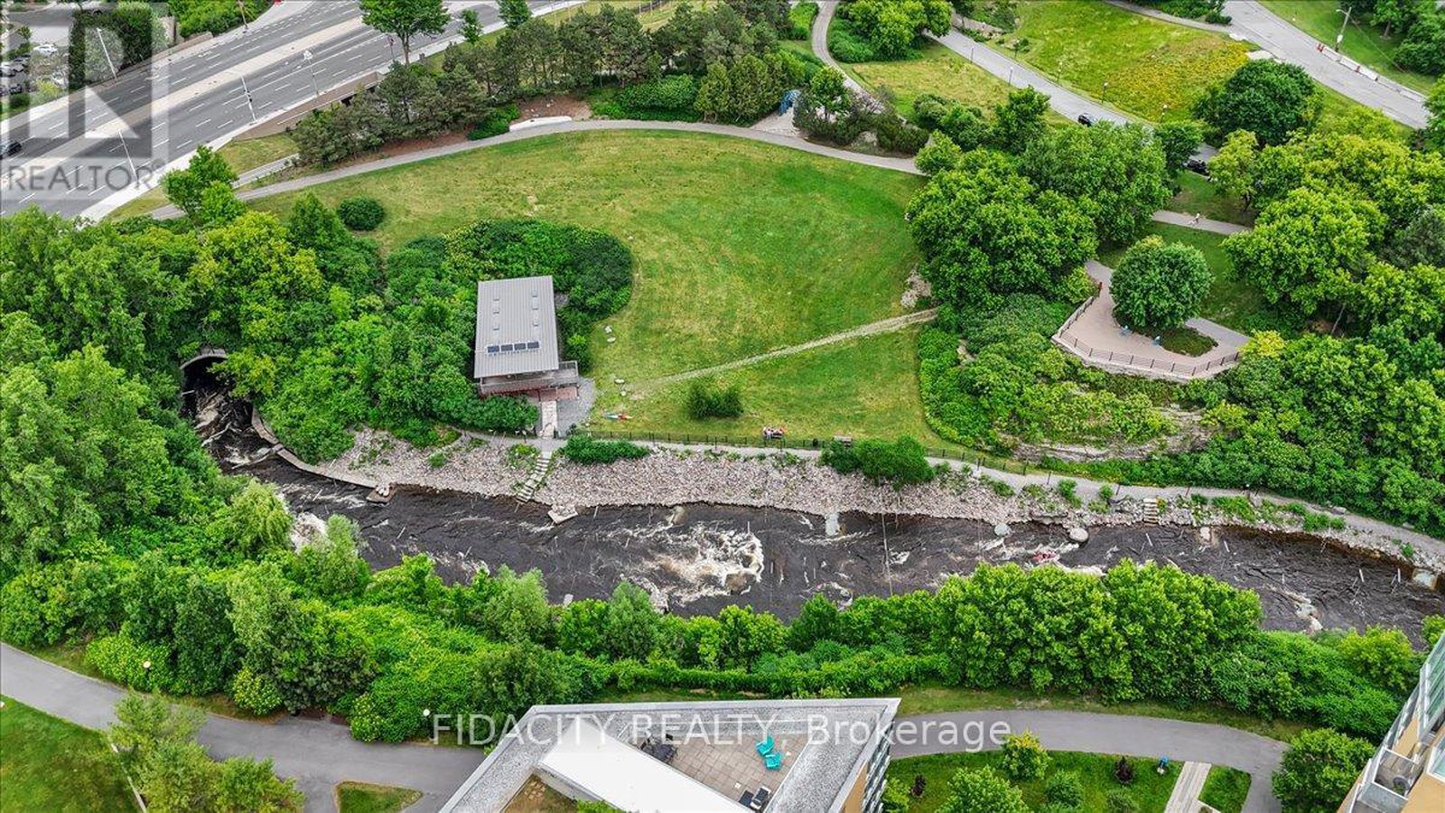 Live immersed in nature without compromising downtown convenience in this one-of-a-kind one-bedroom plus den residence at LeBreton Flats, complete with underground parking. Located in an elegant LEED-certified building, this approximately 700+ sq ft suite offers a rare sense of space and tranquility.Upon entering, you are greeted with stunning views. The unit is quietly positioned overlooking the building's landscaped garden courtyard, sheltered from street noise and framed by floor-to-ceiling windows with views of mature trees the Bronson escarpment and beyond. Elegant hardwood flooring flows throughout the open-concept living areas, while the thoughtful layout delivers both comfort and functionality.The kitchen is fitted with granite countertops, ample counter and cabinet space, a breakfast bar, an oversized pantry, and a cleverly concealed storage nook hidden behind a swinging bookcase. The primary bedroom offers more beautiful views, complemented by a separate, spacious den and stacked laundry. A private covered balcony provides the ideal setting to enjoy morning coffee surrounded by greenery.Residents enjoy an impressive collection of amenities, including a rooftop terrace with panoramic views of the Ottawa River, Parliament, and War Museum, a fully equipped gym, sauna, party room, bike storage, and pet-friendly policies. The unit includes 1 underground parking spot and a storage locker, with the building's electrical infrastructure in place for a future EV charger if desired. Ideally located just minutes from Pimisi LRT Station with easy cross-city access, and close to Bayview Station, this spot is within walking distance of downtown offices and shops, Little Italy, Chinatown, river pathways, kayaking and cycling routes, Bluesfest grounds, and the future Adisoke Central Library. The future Ottawa Senators arena is also nearby, further enhancing the long-term appeal of this exceptional neighbourhood.( Heat & Water included in condo fees.)