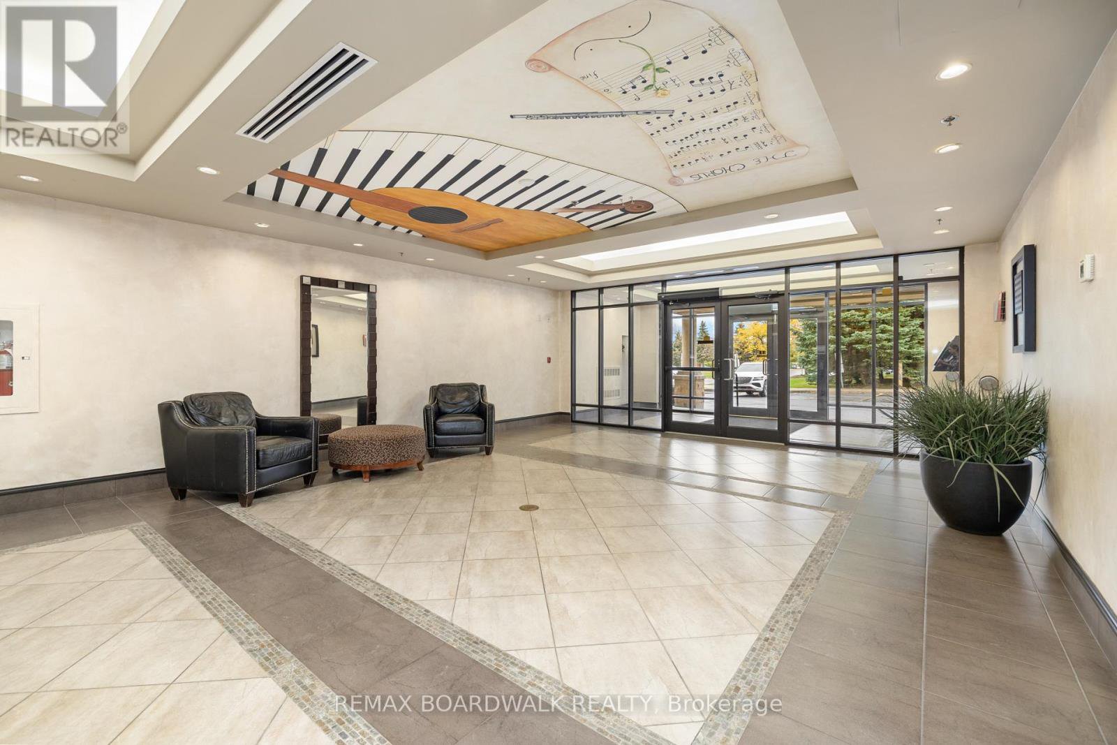 Perched high above the city, this bright corner penthouse offers expansive sunset views across the Gatineau Hills, the Central Experimental Farm, Celebration Park's ponds, and the surrounding skyline. The oversized private balcony provides a rare vantage point for evening skies and unobstructed views of Canada Day fireworks, making it an ideal space to relax or entertain.Step outside and enjoy immediate access to the Central Experimental Farm and its extensive network of walking and cycling paths. Just minutes away, Celebration Park features ponds, a splash pad, soccer pitch, tennis courts, skating rink, and playgrounds, supporting an active, outdoor-focused lifestyle. Daily essentials are close at hand with Loblaws, Walmart, Food Basics, Maryam Super Market, Tim Hortons, and a variety of nearby restaurants. Two OC Transpo routes are conveniently located right outside the building.Inside, the unit is defined by soaring ceilings and oversized windows that flood the space with natural light throughout the day. The eat-in kitchen offers granite countertops, stainless steel appliances, and a functional breakfast bar. Hardwood flooring runs throughout the main living areas. The primary bedroom includes a walk-in closet and a spa-inspired ensuite, while the versatile den works well as a home office or guest space. In-suite laundry adds everyday convenience.Residents enjoy access to excellent building amenities, including a well-equipped fitness room, party room, free car wash bay, and an EV charging station available for a small fee. Storage, parking, bike storage, and heating and cooling are all included in the total condo fee of $641. Lovingly maintained and move-in ready, this penthouse delivers a rare combination of views, walkability, and lifestyle in a prime location.