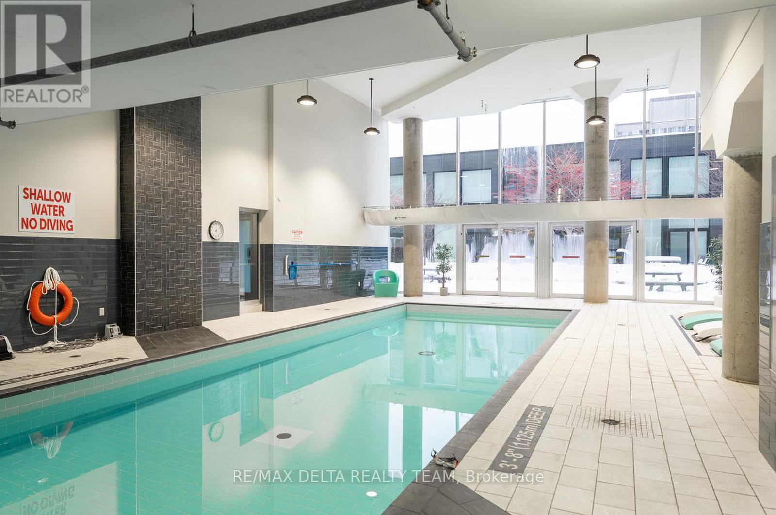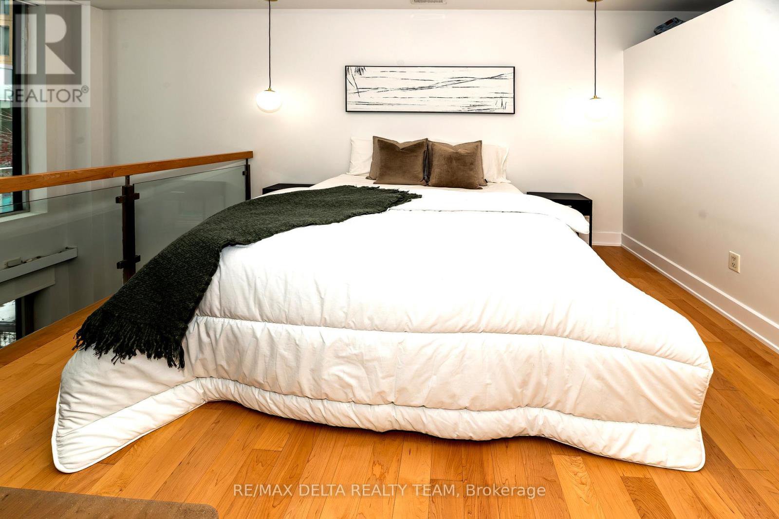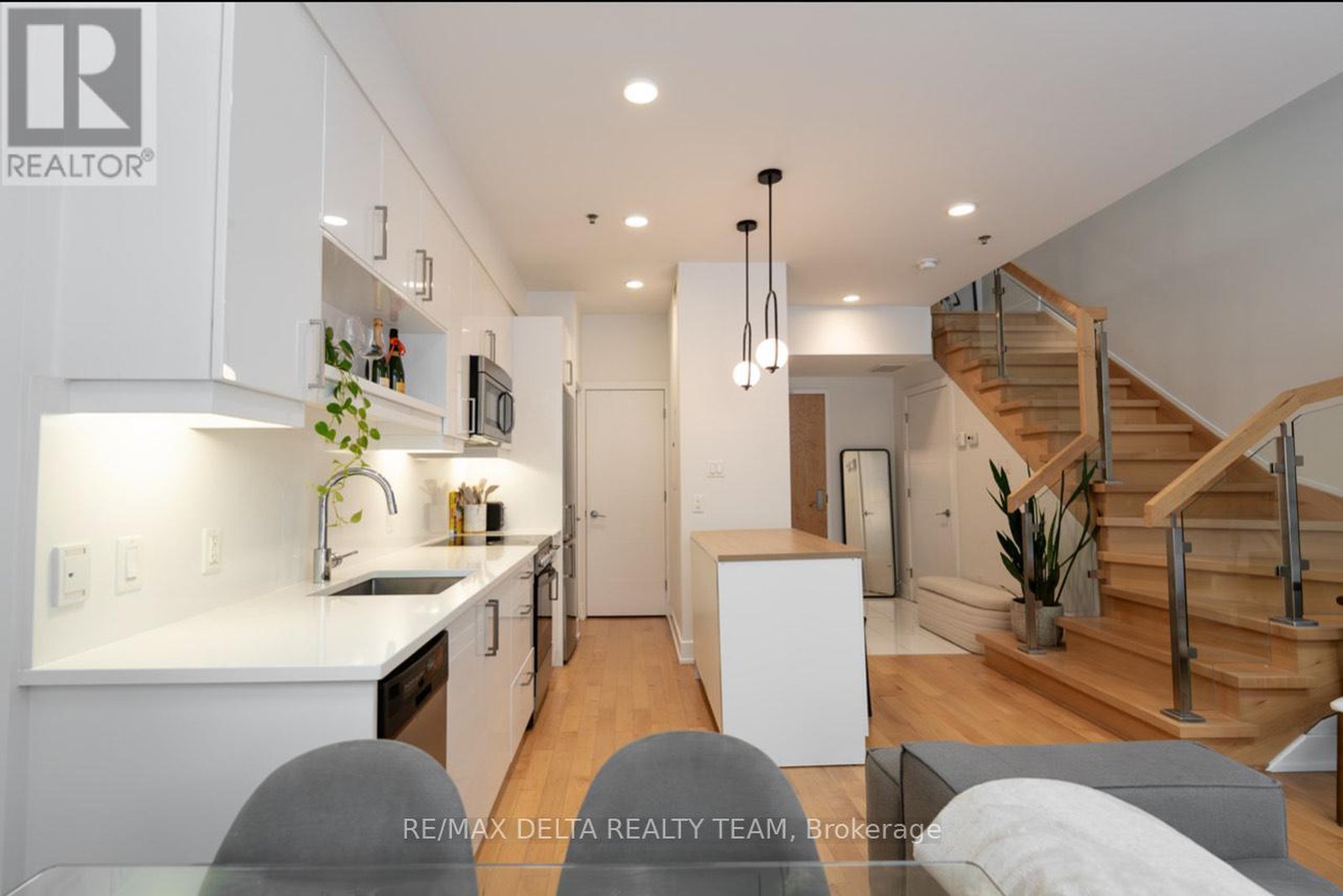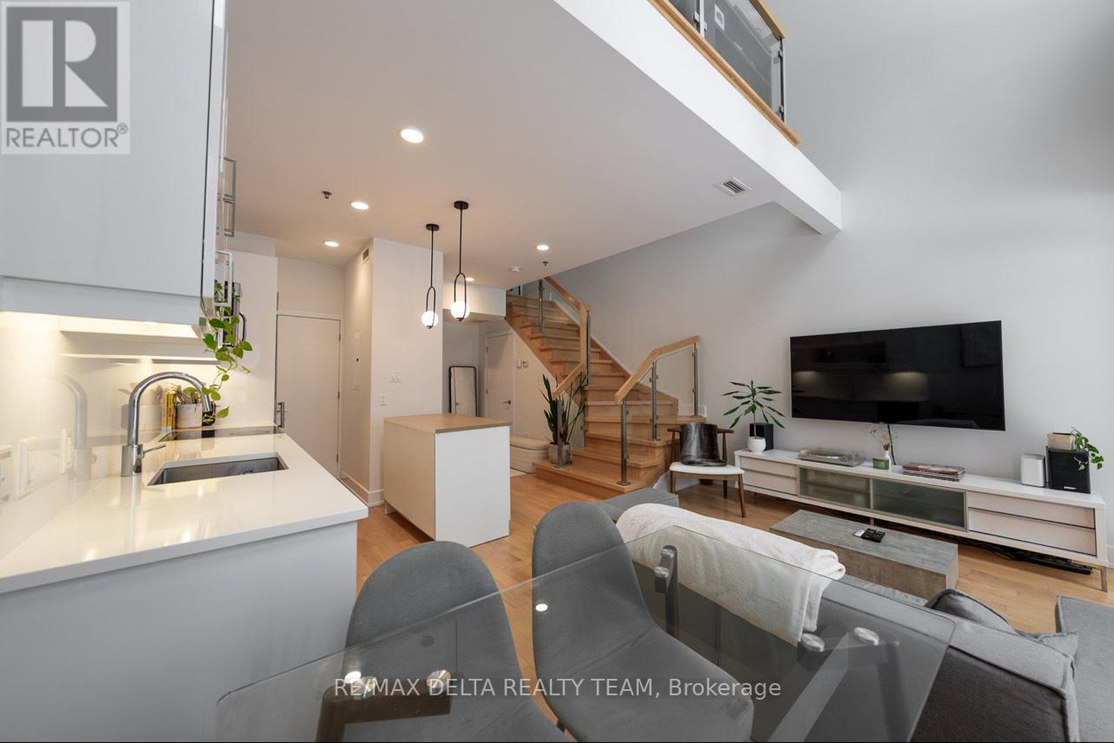 A rare offering in one of downtown Ottawa's most prestigious addresses. This exceptional residence at Tribeca Lofts by Claridge Homes showcases dramatic two-storey floor-to-ceiling windows, delivering a sophisticated loft aesthetic while bathing the interior in natural light and framing tranquil treed courtyard views. Designed for discerning urban living, this refined home offers a seamless blend of privacy and vibrancy in the heart of Canada's Capital. Ideally positioned moments from Parliament Hill, the Rideau Canal, ByWard Market, and Rideau Centre, the location is surrounded by Ottawa's finest restaurants, cafés, galleries, and cultural landmarks-all while enjoying the convenience of Farm Boy at your doorstep. A private walkout terrace opens directly to a lush, landscaped courtyard-an elegant extension of your living space and a serene retreat for outdoor entertaining. This unique ground-level access eliminates reliance on elevators and provides immediate access to the building's resort-style amenities, including an indoor pool, sauna, fully equipped fitness centre, resident lounge, boardroom, and courtyard BBQs.Additional luxury conveniences include guest suites for visitors, secure underground parking, a storage locker, and dedicated bicycle storage. Thoughtfully designed and impeccably located, this residence offers a rare opportunity to enjoy sophisticated city living with the tranquillity of a private enclave. An exceptional home for those who value luxury, lifestyle, and location.