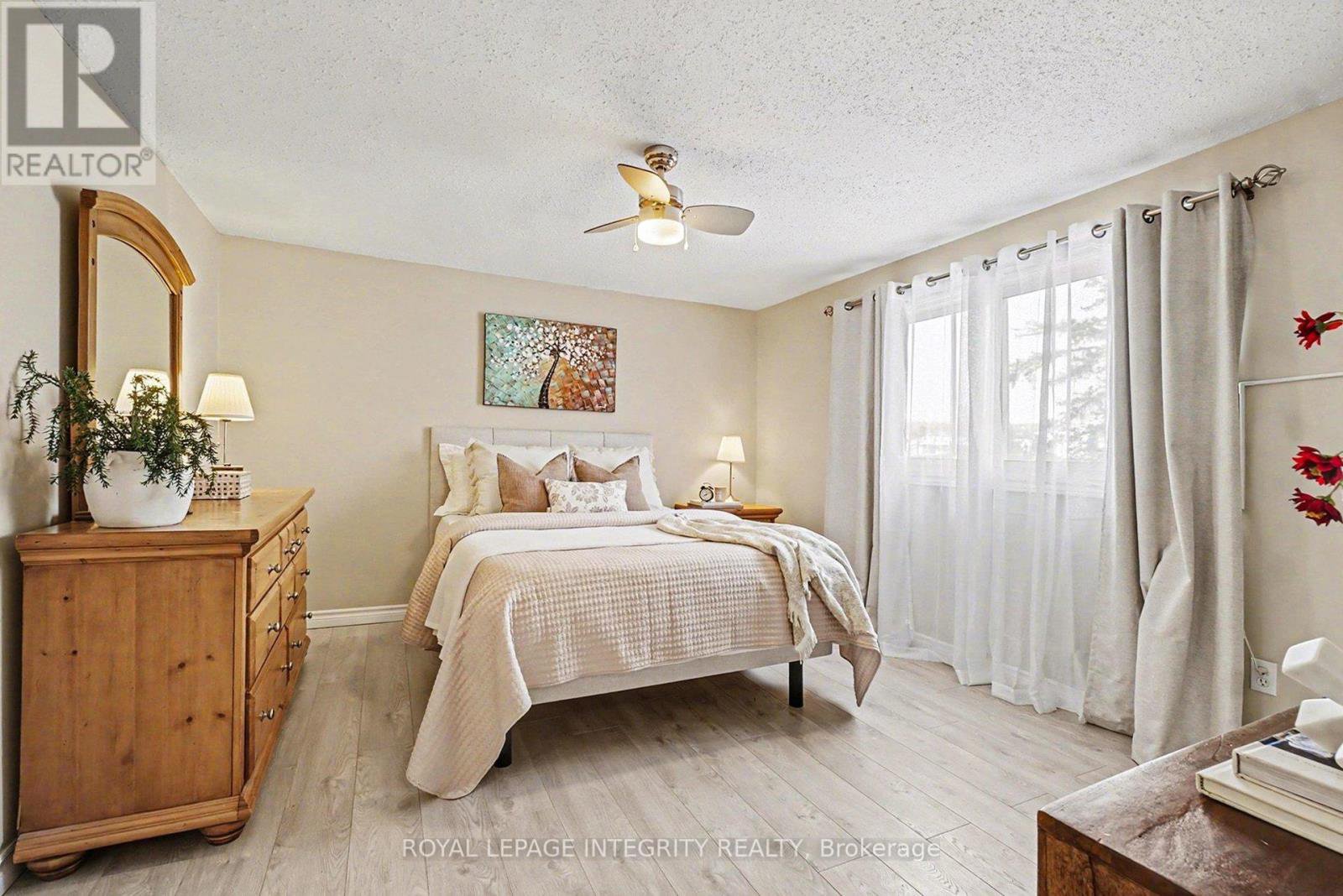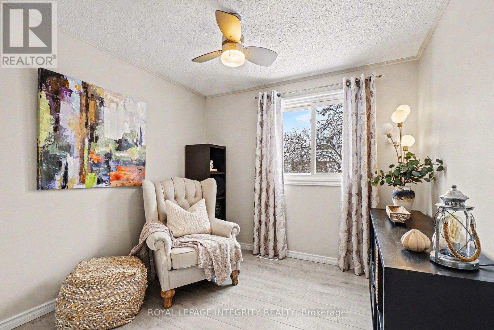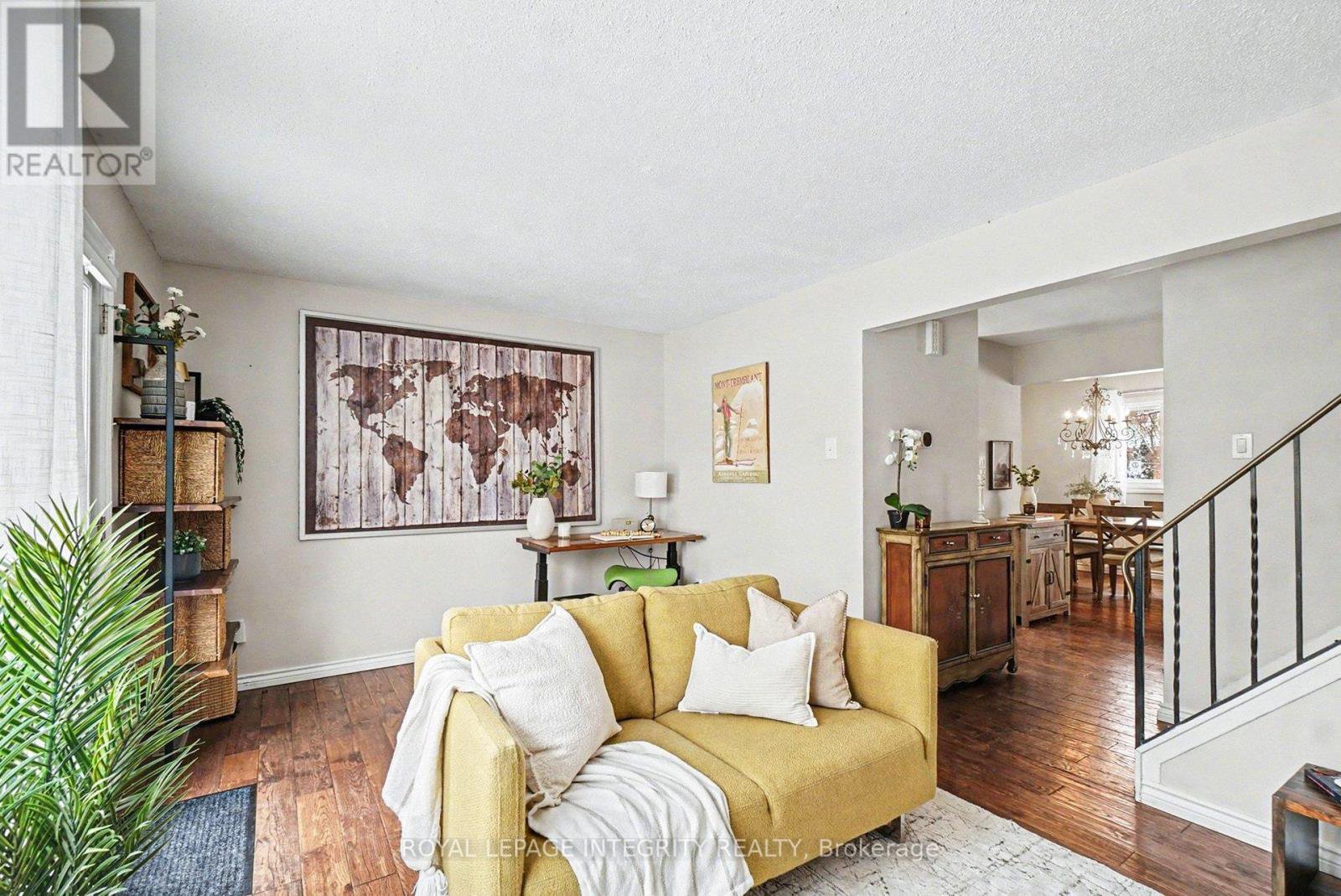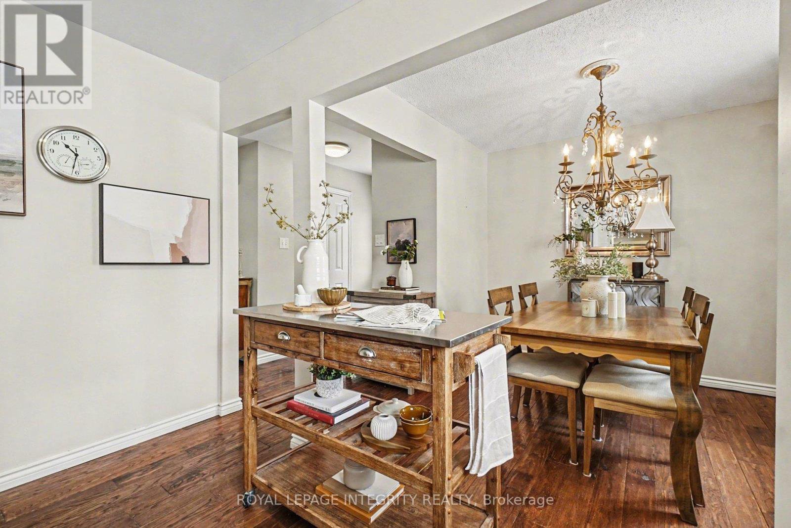 This stunning, very well-maintained end unit offers three bedrooms and three fully updated bathrooms in a desirable Blackburn Hamlet location. The main floor features updated dark hardwood and a chic, polished white kitchen with deep cabinets extended to the ceiling and crown molding. Ceramic tile in the foyer and powder room adds a modern touch. The spacious master bedroom has a functional walk-in closet and a convenient two-piece ensuite. The large family room with its oversized windows overlooking the private backyard. The outdoor space itself offers tons of privacy, especially when the leaves are in. A generous shed provides additional storage. Enjoy the rare privilege of two adjacent parking spots right outside your door. Blackburn Hamlet is a vibrant, family-friendly community where neighbors come together. Walk to grocery stores, libraries, schools, parks, skating rinks, pools and specialty shops. Summer fun awaits at the Blackburn Fun Fair, and green thumbs can take advantage of community garden plots. Unpack and enjoy this low maintenance and easy living property. Privacy, style and family-friendly living - this is Blackburn at its best.