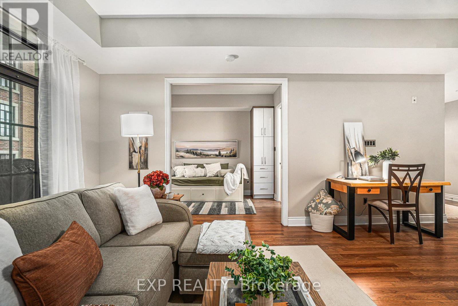 QUICK CLOSING POSSIBLE! Discover stylish urban living in this upgraded turnkey 2 bedroom condo with each their own ensuite bathrooms just moments from the Civic Hospital (both existing and new locations!), Little Italy, Dow's Lake, O-Train and so much more! Located in the exclusive Radcliffe building by award winning DOMICILE developer, this unit blends modern comfort with an unbeatable walkable lifestyle. A spacious foyer with double closets brings you into a versatile den, perfect for a home office or study. The bright, open-concept living and dining area extends to a private covered balcony with a gas BBQ hookup (BBQ included!). The well appointed kitchen offers granite countertops, a breakfast bar, stainless steel appliances (including gas stove), ample cabinetry and upgraded flooring. The primary suite features double closets and a luxurious 4 pc ensuite, while the second bedroom also has its own ensuite bathroom. Additional perks include recently refinished flooring, recent repainting, in-unit laundry, underground parking and TWO storage lockers (1 being on the same floor as the unit). Condo fees include heat and water, plus access to excellent amenities: a gym, party room, bike storage and underground parking. Set in one of Ottawa's most desirable and walkable neighbourhoods, you're steps from cafes, restaurants, parks and the LRT station...making commuting effortless, whether downtown or to the airport (just a 20 minute direct transit ride). Just 5 minutes drive to the Civic Hospital! Ideal for urban professionals seeking low maintenance living without compromising on location or lifestyle. Easy to view!