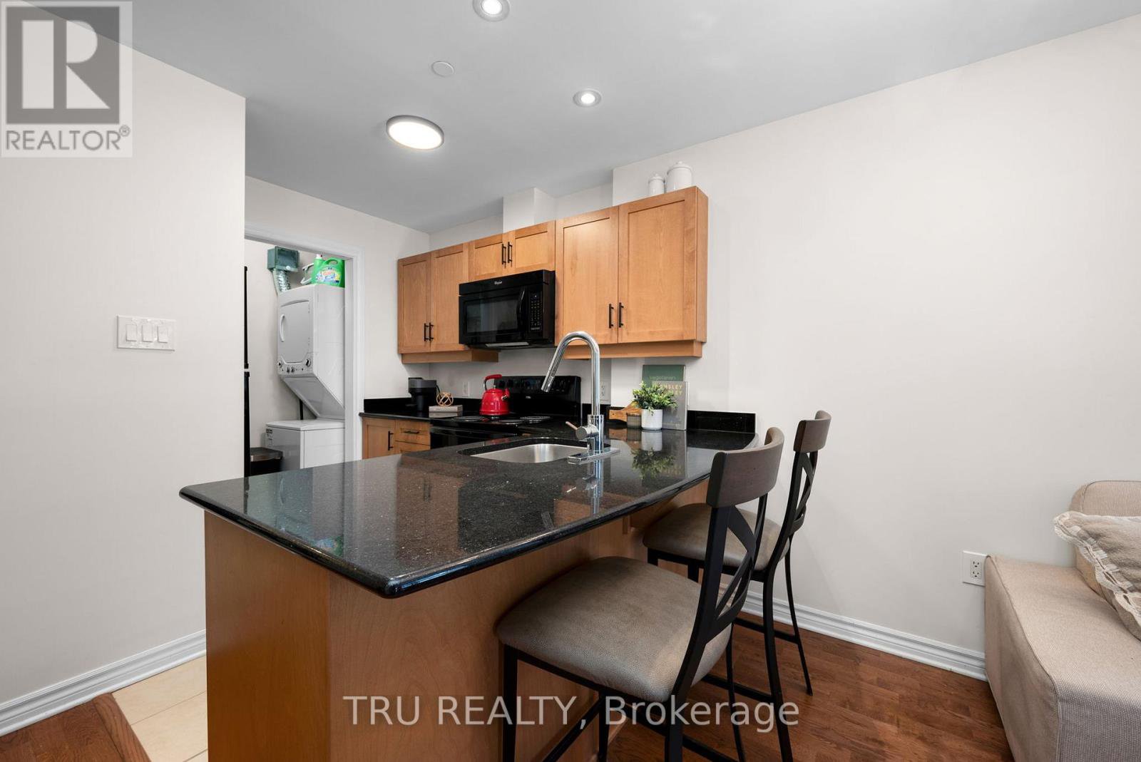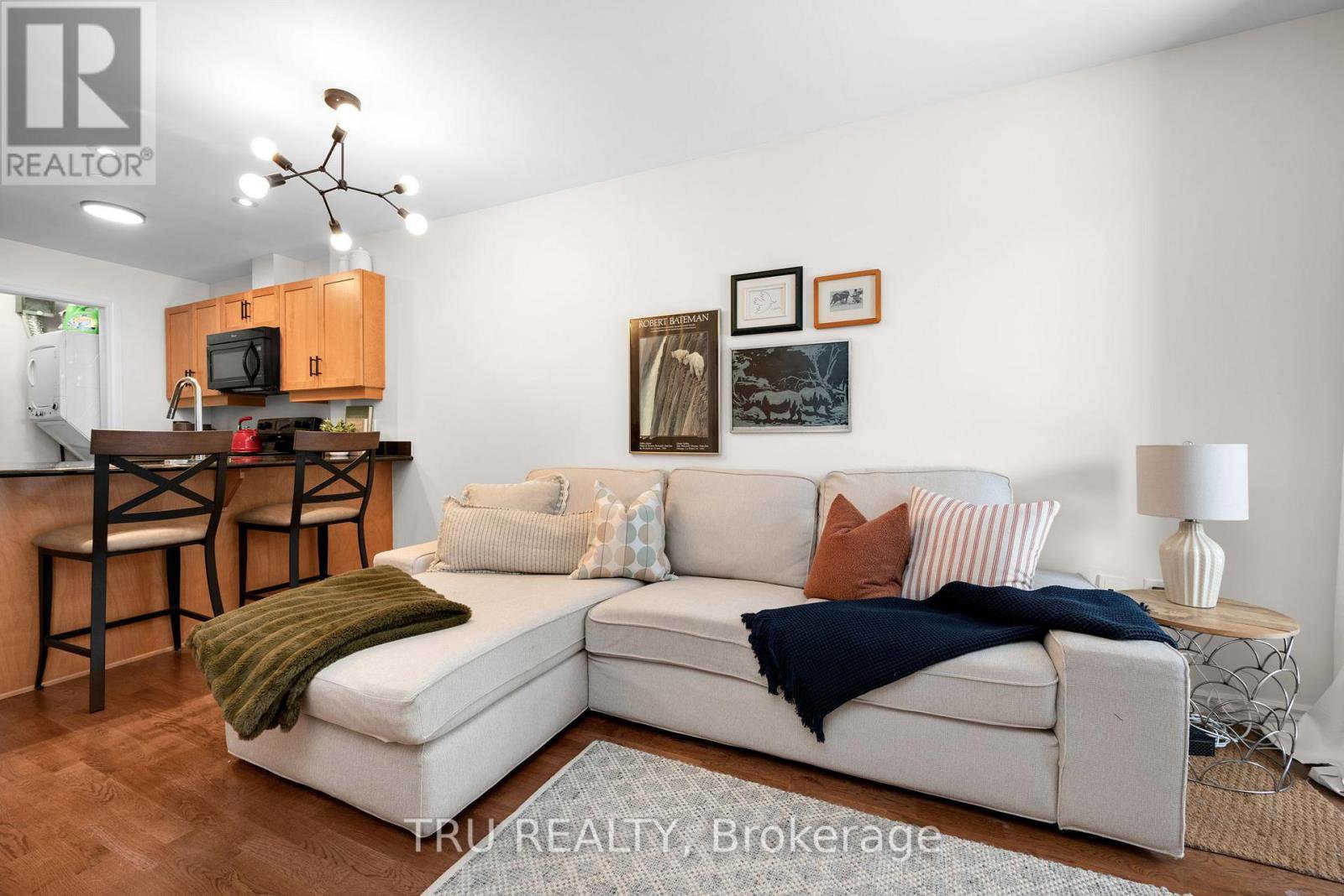 Welcome to 104-314 Central Park Drive - a bright and inviting 1-bedroom, 1-bathroom condo offering comfort, style, and convenience in one of Ottawa's most sought-after communities. This ground-floor unit features a private view with a walkout to your own patio, the perfect spot for morning coffee or relaxing afternoons outdoors. Inside, hardwood floors and an open-concept living area create a welcoming space for both everyday living and entertaining. The kitchen showcases elegant stone countertops, ample cabinetry, and generous workspace, ideal for any home chef. The spacious primary bedroom includes a cheater ensuite to the modern 4-piece bathroom for added privacy and convenience.Enjoy in-unit laundry smartly tucked away in a dedicated nook, plus the added value of a covered parking spot and storage locker. With quick access to parks, trails, shopping, public transit, and the scenic paths of the Experimental Farm, this property is perfect for any first-time buyer, down-sizer, or investor - the perfect blend of comfort and urban convenience!
