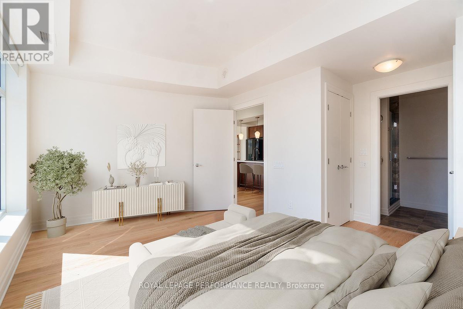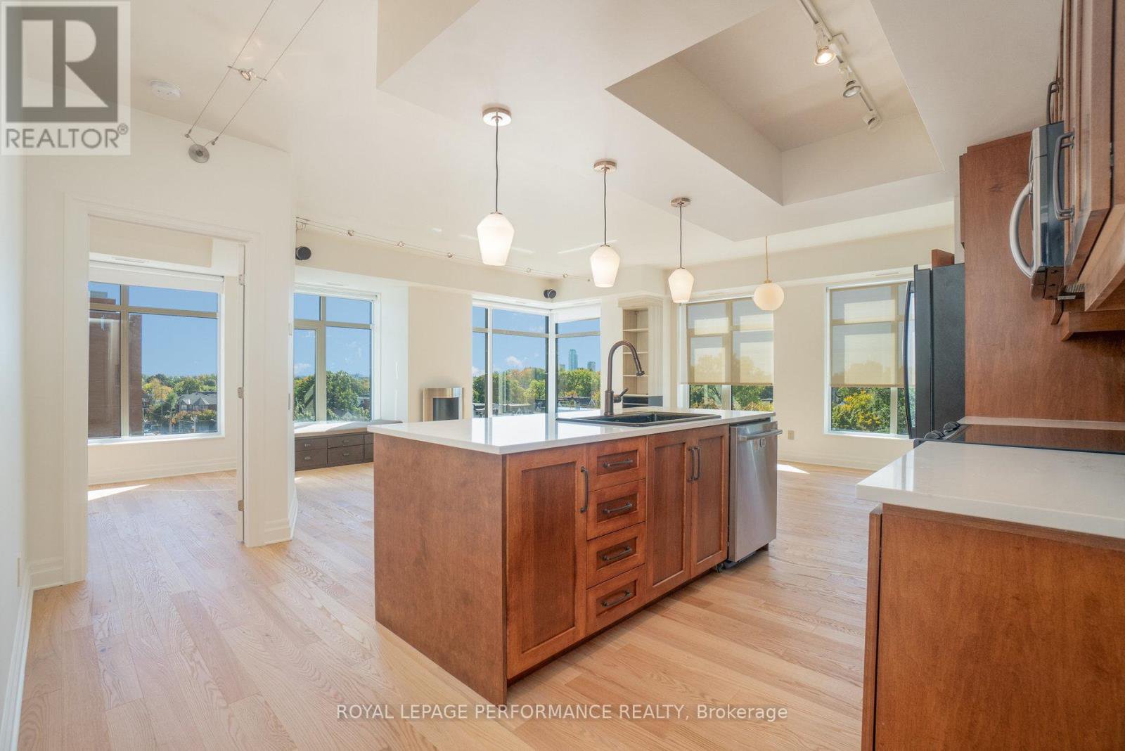 Welcome to Hudson Park! This elevated CORNER END UNIT boasts nearly 1,200 sq. ft. of polished, turn-key sophistication, RENOVATED in 2025 with over 50K in upgrades & finishes! Step through a chic terrazzo-style foyer (with new subfloor) into an airy, open-concept great room wrapped in oversized windows that drench every space in natural light, with BRAND NEW HARDWOOD FLOORING and new subfloor throughout! The living and dining areas are anchored by a refined fireplace, a perfect touch of elegance. The adjacent MODERN kitchen dazzles with a sleek backsplash, a centre-island breakfast bar with designer pendant lighting and Canadian-made, GREENGUARD-certified QUARTZ counters. New lower cabinetry and surfaces deliver both style and everyday durability! A versatile den/office opens directly to a private balcony, your quiet nook or workstation. The private bedroom wing features a large, sunlit primary suite with two closets and a magazine-worthy 3-piece ENSUITE, beautifully designed for a clean, contemporary look. A well-proportioned second bedroom sits beside a full 4-piece guest bath finished with new tile flooring, subfloor, vanity, and QUARTZ countertop. Practicality is equally luxe: IN-SUITE laundry, a newer heat pump, an UNDERGROUND PARKING space, and a storage unit. Life at Hudson Park places you moments from Ottawa's best conveniences, cafés, dining, shops, and transit plus building amenities that elevate daily living: an exercise room, a rooftop terrace with skyline views, and a stylish party/meeting room. A rare, refined offering, bright, modern, and impeccably reimagined.