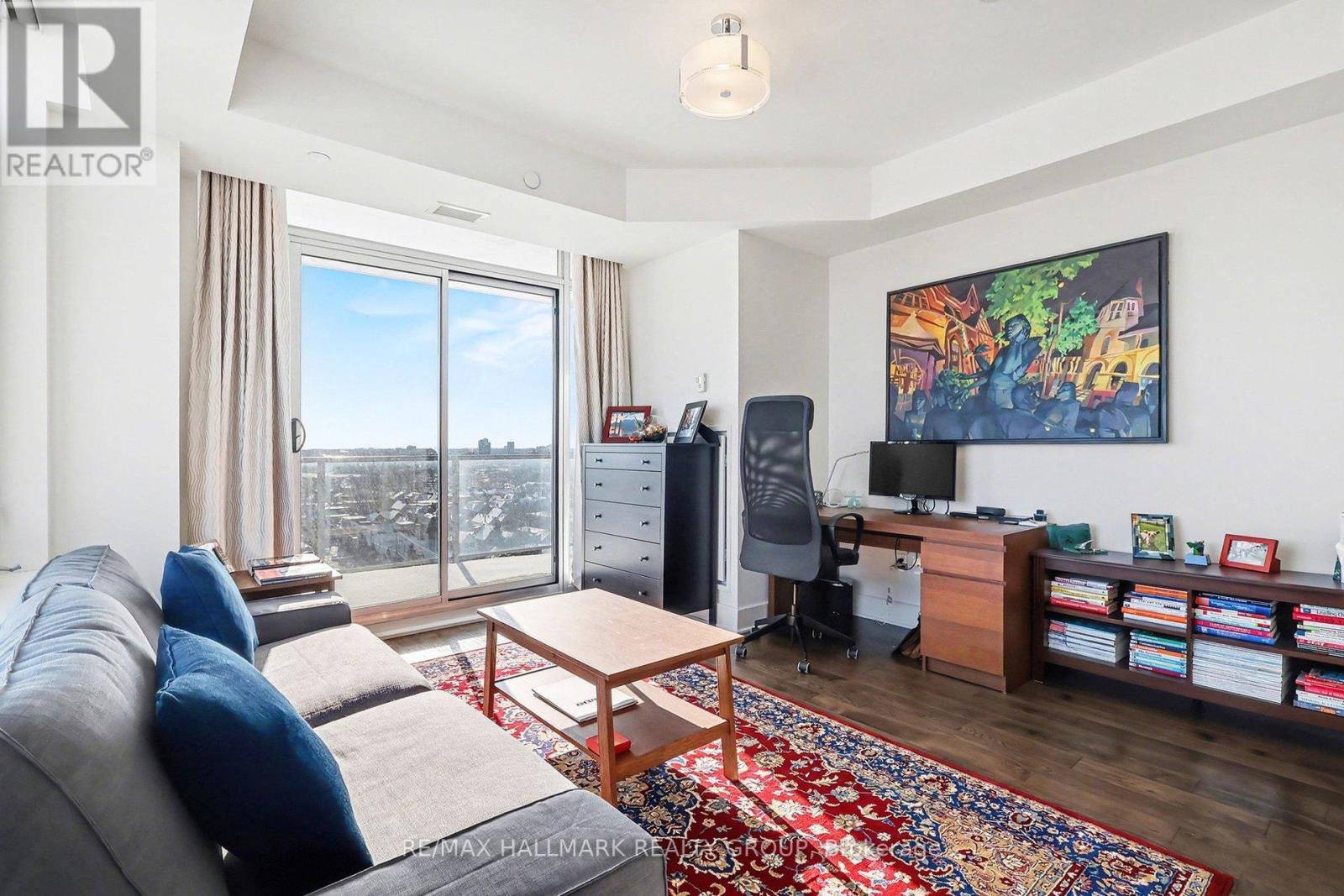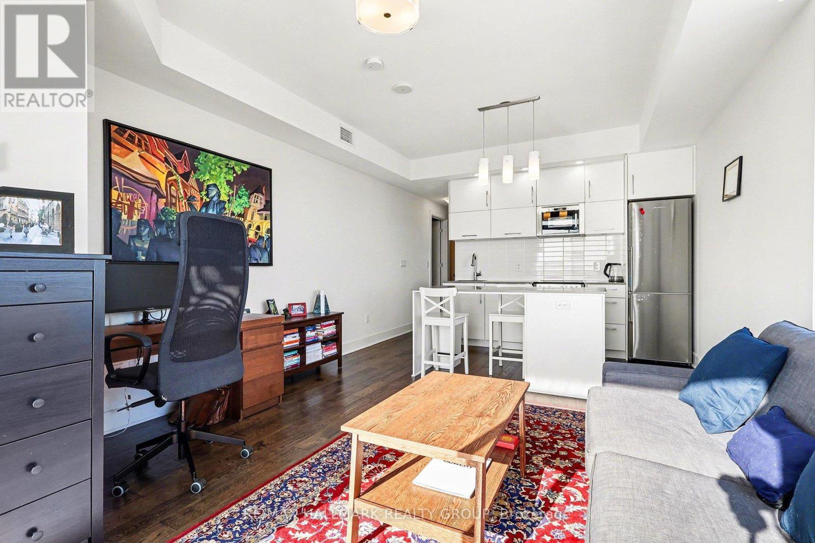 Rare Corner Unit at The Bowery! This bright & stylish 1-bedroom, 1-bath condo offers the layout homeowners crave & the light they can't fake. With south and east exposure & windows on two sides, this corner suite is flooded with natural light throughout the day & enjoys open urban views. The well-designed floor plan features hardwood floors & an open-concept kitchen, living/dining area ideal for modern living. The kitchen offers quartz countertops, 4 stainless steel appliances, ample cabinetry, & a generous island perfect for cooking, entertaining, or casual dining. The bedroom is spacious & sun-filled, while the full bathroom is finished with clean, contemporary style. An in-unit laundry adds everyday convenience. Private balcony offers distant, unobstructed views to the south and to the east above the city below. Residents of The Bowery enjoy premium amenities including a rooftop terrace with panoramic views, indoor saltwater pool, sauna, fully equipped fitness centre with yoga studio, lounge and dining spaces, business centre, & guest suites. Located in the heart of Centretown, just steps to LRT, Parliament Hill, shops, restaurants, & everyday essentials. A rare opportunity to own a true corner unit in one of downtown Ottawa's more desirable condo buildings - bright, efficient, and perfectly positioned for urban living.