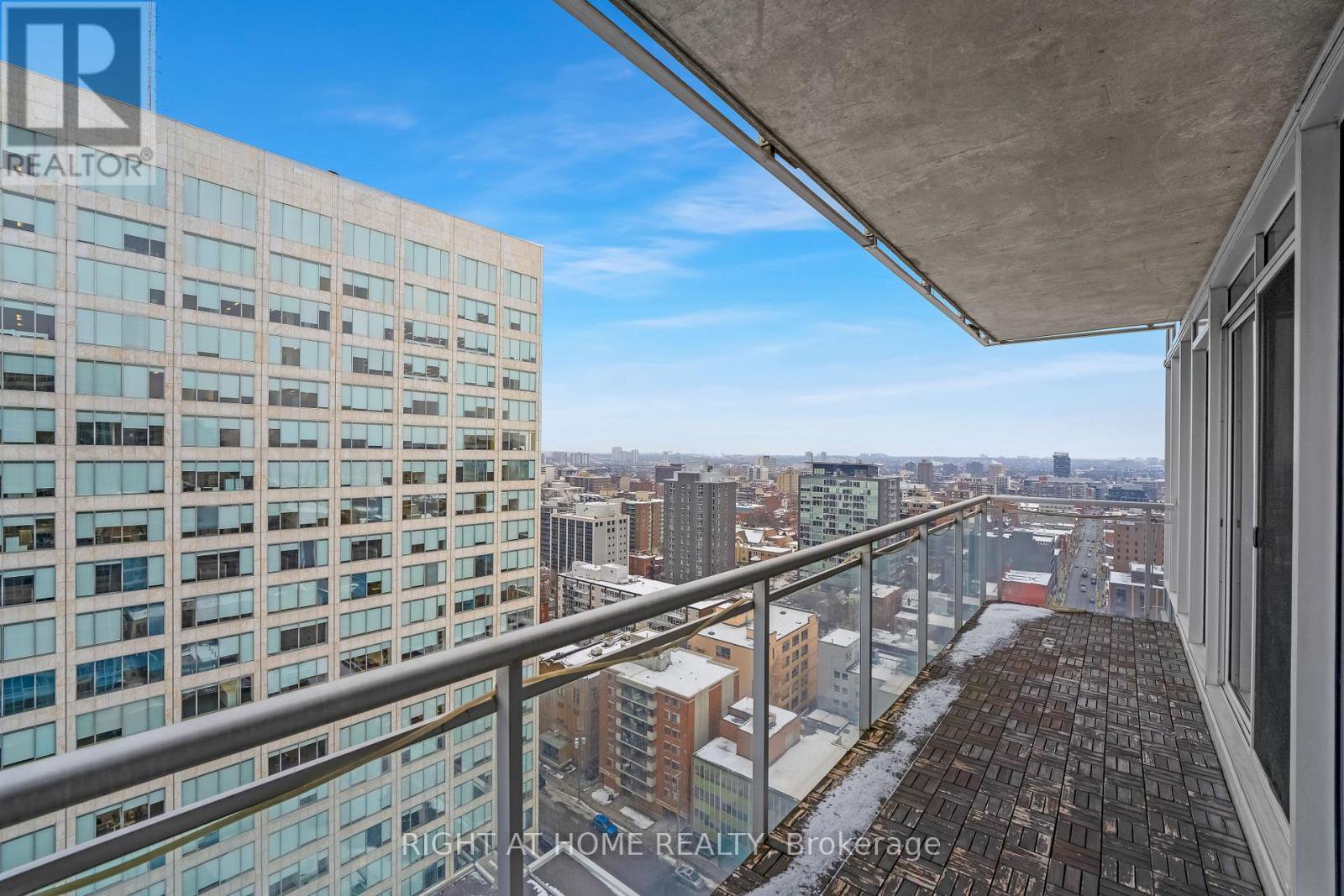 Stylish 20th-floor corner suite at The Mondrian with panoramic views from Parliament Hill to the Ottawa River. Floor-to-ceiling reflective glass fills the open-concept living space with natural light while maintaining full daytime privacy. Features include engineered hardwood (2018), smart automated lighting, Somfy blackout blinds, and a sleek kitchen with stainless steel appliances.The oversized primary bedroom offers its own heat pump and wall-length closet; the second bedroom fits a queen bed or makes an ideal office. Enjoy a private balcony with no neighbours on either side.Resort-style amenities include an outdoor pool, sun terrace, BBQ areas, party room, and a large gym. Extra-large heated parking spot, and in-unit storage included. Steps to top restaurants, cafés, LRT, Confederation Park, City Hall, and Parliament Hill. Urban living at its best.