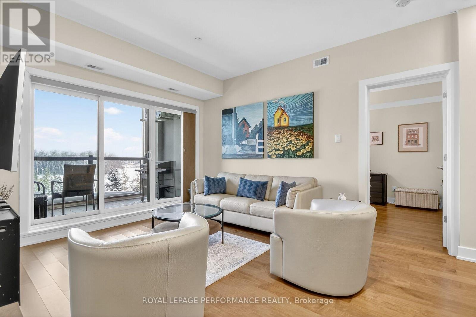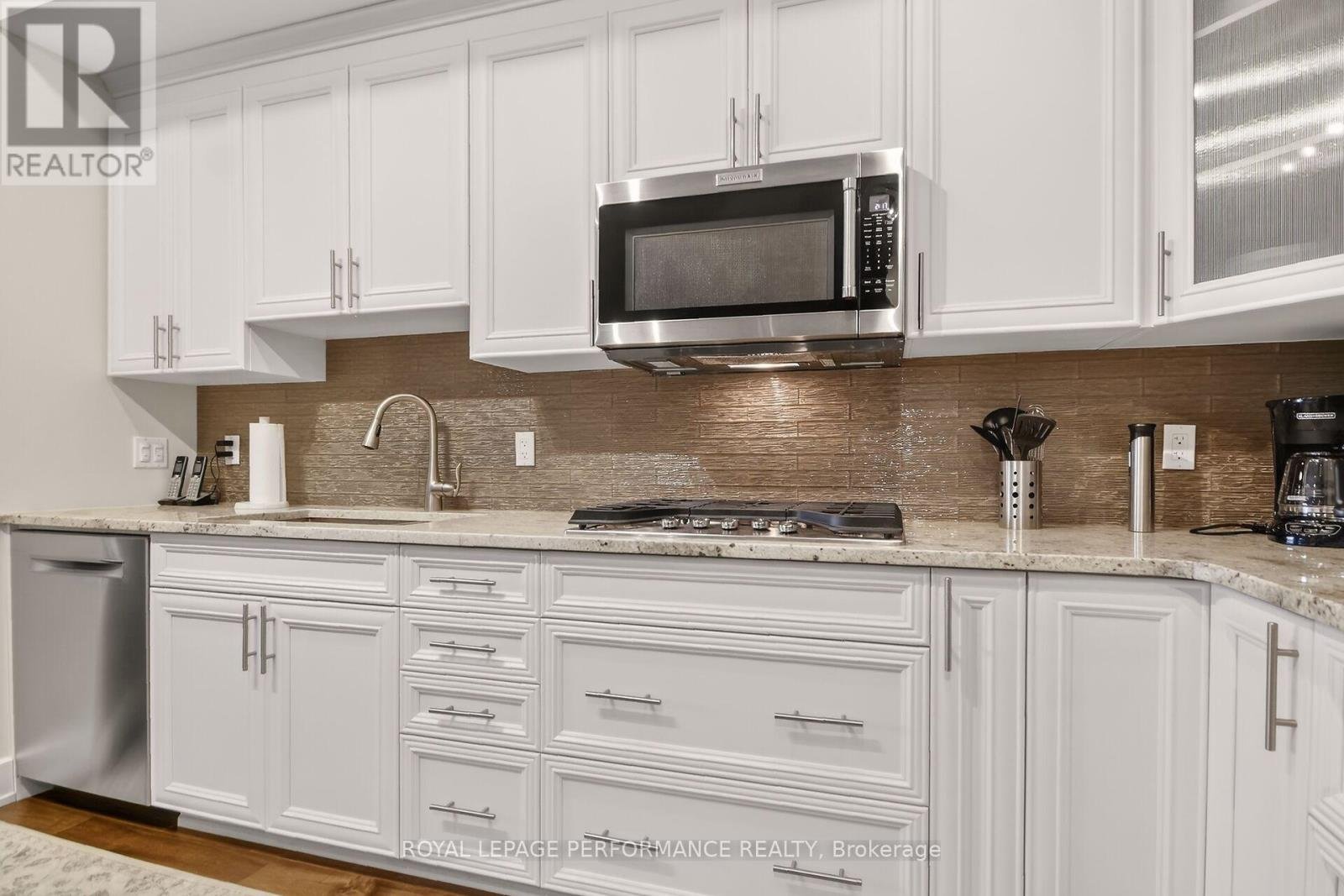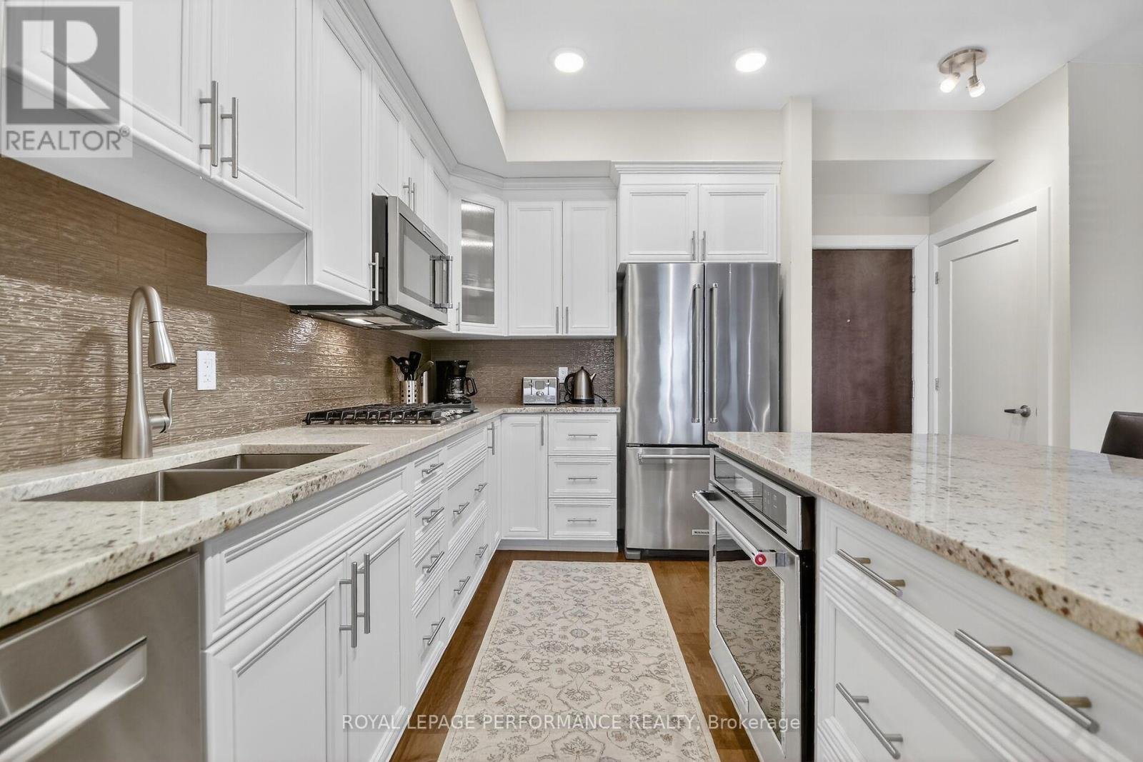 Beyond well kept, immaculate 2 bedroom, 2 full bathroom penthouse apartment with unobstructed east view overlooking Ken Ross Park from the balcony and bedrooms. This apartment offers nine foot ceilings and has been totally upgraded with quiality finishings throughout. Upgraded kitchen and bathroom cabinets, custom ensuite double shower. All wood flooring and doors have been upgraded. Ceramic floor in both bathrooms. Higher quality stainless steel applinances featuring under granite top built in oven, and gas cook top elements. Built in microwave oven. Custom window coverings along with upgraded light fixtures throughout. The spacious balcony off of the living room features a custom power balcony sunshine screen, with durable flooring. A gas hook up BBQ is also included. Bright, open concept layout features a breakfast bar sitting area, custom kitchen with granite counter tops with lots of counter space and twelve storage drawers, complete with glass ceramic backsplash. Large dining room is where the laundry and utility closets are located. The spacious, bright living room includes the wall mounted electric fireplace and TV. Large sliding door access the balcony east views of the park. From the hallway, access the second full bathroom and spacious bedroom/office offering a large double closet, includes the TV, and offers a secondary access to the balcony. The large primary bedroom offer a spacious walk through closet to the ensuite bathroom with custom double shower stall. The apartment incluses one, underground indoor parking spot, plus an outdoor surface parking spot. A storage locker is includes in the basement parking area accessed off of the elevator area. You will not be disappointed with this upgraded top floor apartment with the many custom features. Within a 10 minute drive you have access to all the Barrhaven shopping/professional services amenities, restaurants etc. Walk to parks and transit. Don't miss this one of a kind unique apartment.