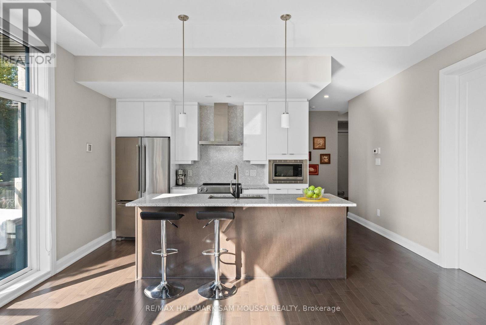 Welcome to 120 Cortile Private #101, an Urbandale-built boutique condo in the heart of Riverside South. This south-facing corner unit offers a spacious living area with 10ft ceilings and floor-to-ceiling windows that bring in an abundance of natural light. The open-concept layout features hardwood flooring, a modern kitchen with lots of storage, a large island, and stainless steel appliances. The spacious primary bedroom includes a walk-in closet and a 4-piece ensuite. An additional second bedroom provides extra room or can be used as a home office. A second full bathroom, in-unit laundry, and heated underground parking add convenience. Enjoy your south facing, private balcony overlooking beautifully maintained grounds. Located just steps from parks, walking trails, the new Armstrong Retail Plaza, and the upcoming Limebank LRT station nearby is an added bonus. This home offers comfort, style, and convenience in an excellent location.