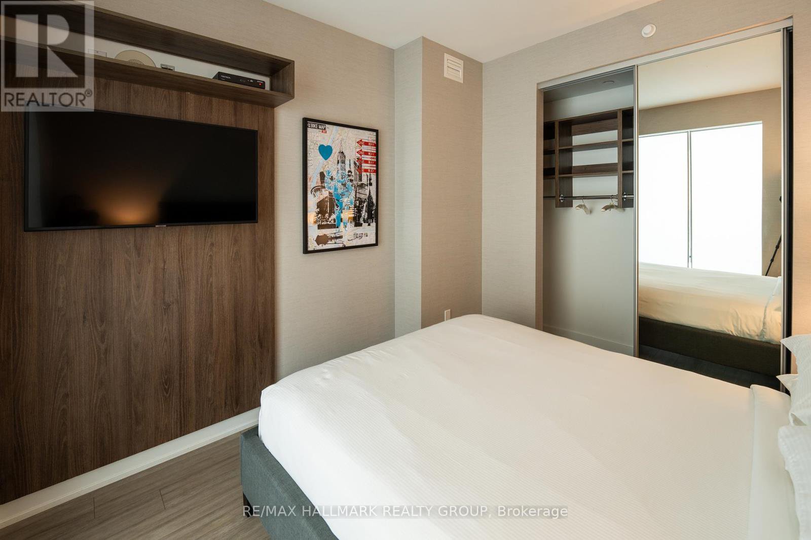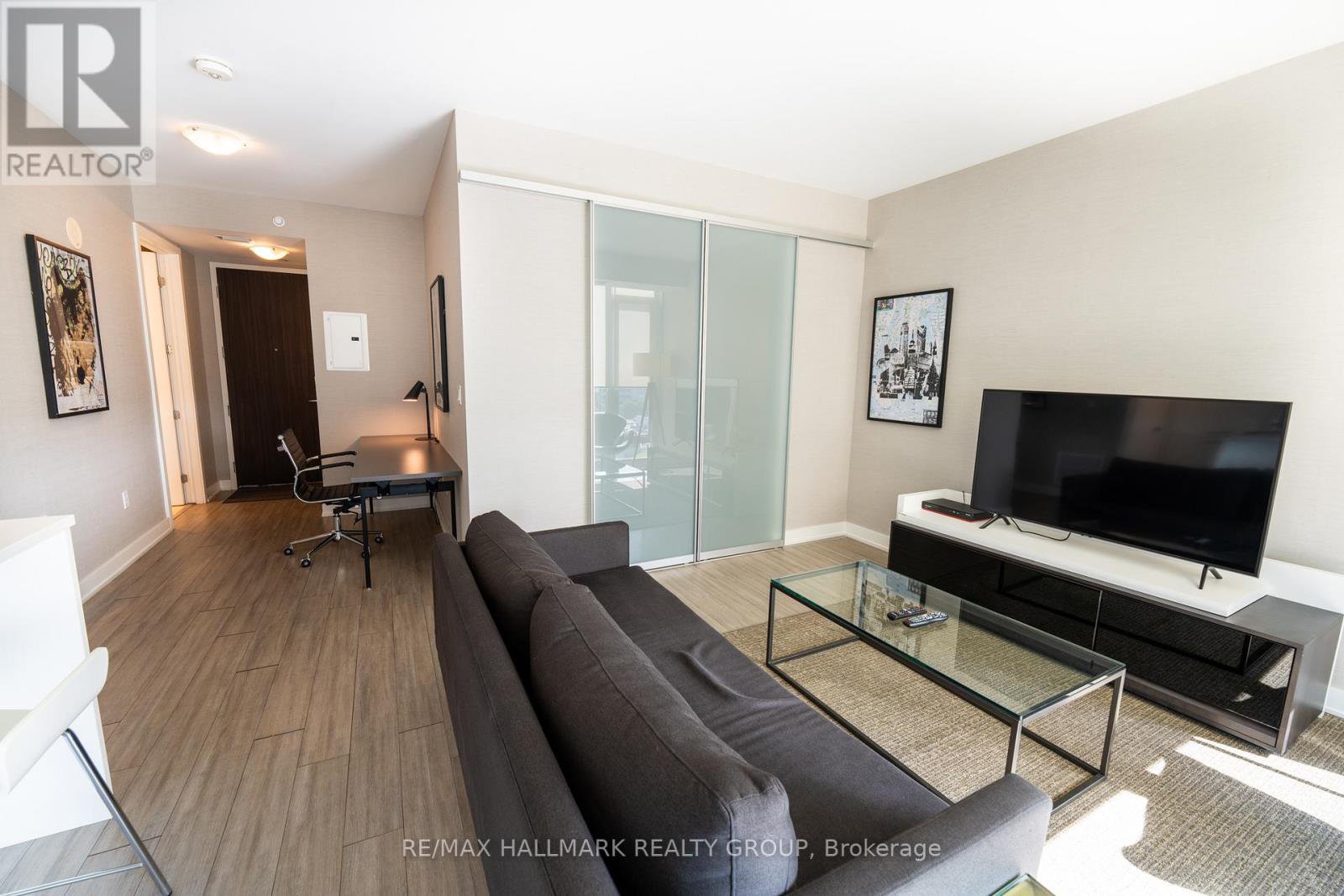 NEW YEAR'S PROMOTION - GET 2 YEARS OF CONDO FEES PAID FOR YOU AND FURNITURE INCLUDED* Welcome to unit 611 in SoHo Champagne. This 1 bed/1 bath plus den unit has floor to ceiling windows with a stunning view of Dow's Lake, laminate floors throughout, and a gorgeous modern design. The open concept living area makes entertaining a breeze, with plenty of counter space and storage in the kitchen and accompanying island. The bedroom is connected by a sliding privacy door, allowing a fully open-concept living space or a private escape in the evenings. The spa-inspired bathroom features a rainfall shower with glass doors. The SoHo Champagne has amazing amenities like a terrace and patio with a hot tub and barbecue, outdoor pool, a movie theatre, party room with full kitchen and lounge area, meeting room, 3 elevators, underground parking, and a gym. This condominium is located in Little Italy (150m from Dows Lake LRT station), where residents can enjoy dining and fun on the busy streets, or escape to Dow's Lake for time on the water or walks in the gorgeous surrounding parks.