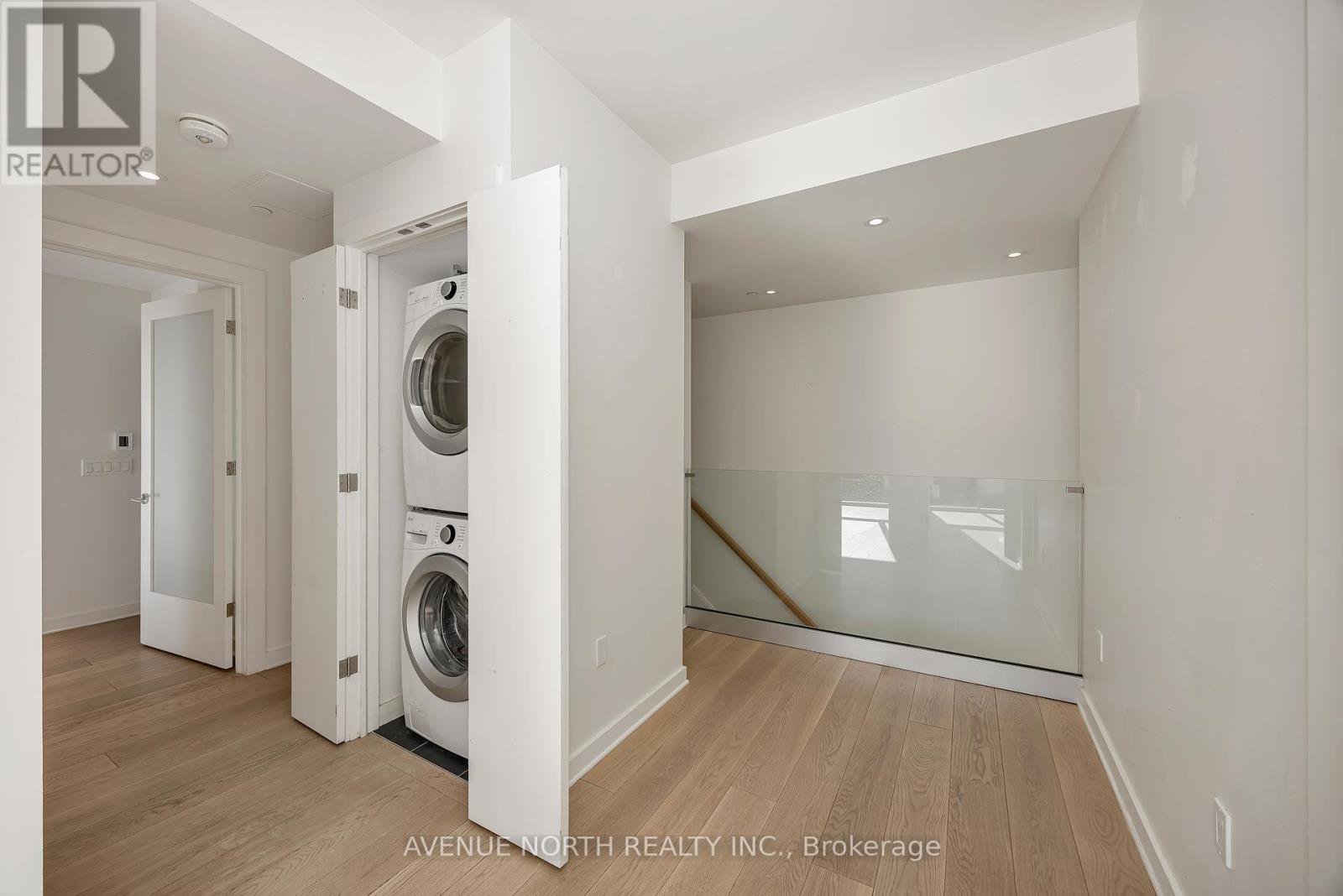 SELLER WILL BE GIVING A $10,000 CASHBACK AT CLOSING. POWER OF SALE. Exceptional urban living in Ottawa's historic St. Charles Market. This stunning two-level apartment townhome at 135 Barrette Street offers a refined blend of luxury, design, and convenience. Featuring 7" Belgian white oak farmhouse hardwood floors on both levels, upgraded lighting, electrical, and interior doors, this home is filled with thoughtful modern upgrades. The main level boasts dramatic floor-to-ceiling windows that flood the space with natural light and open to a private outdoor terrace, ideal for morning coffee or unwinding. The inviting living area showcases a sleek electric fireplace with a custom media wall. The gourmet kitchen impresses with Caesarstone rugged concrete countertops, Irpinia millwork cabinetry, upgraded hardware, and premium Fisher & Paykel appliances including a 36" dual-fuel range, built-in coffee maker, 36" fridge with bottom freezer, wine fridge, and matching hood fan, complemented by an oversized island with breakfast nook. Upstairs, the spacious primary suite features a luxurious ensuite with freestanding soaker tub, glass shower with bench, and designer finishes throughout. The building offers exceptional amenities including a beautifully appointed amenities room ideal for entertaining family and friends, a fully equipped gym, games room with pool table, yoga room, kitchen facilities, locker rooms, and a relaxing sauna. Includes one owned underground parking space in an innovative robotic automated puzzle parking system and a storage locker. Steps to Beechwood Village, restaurants, and Rideau River pathways. Sold as-is, where-is.