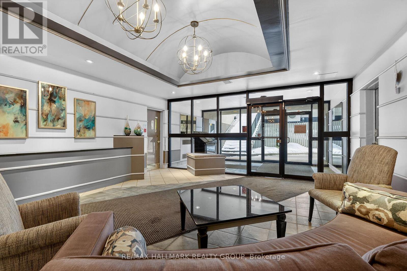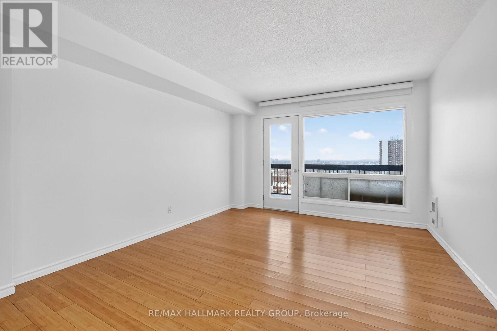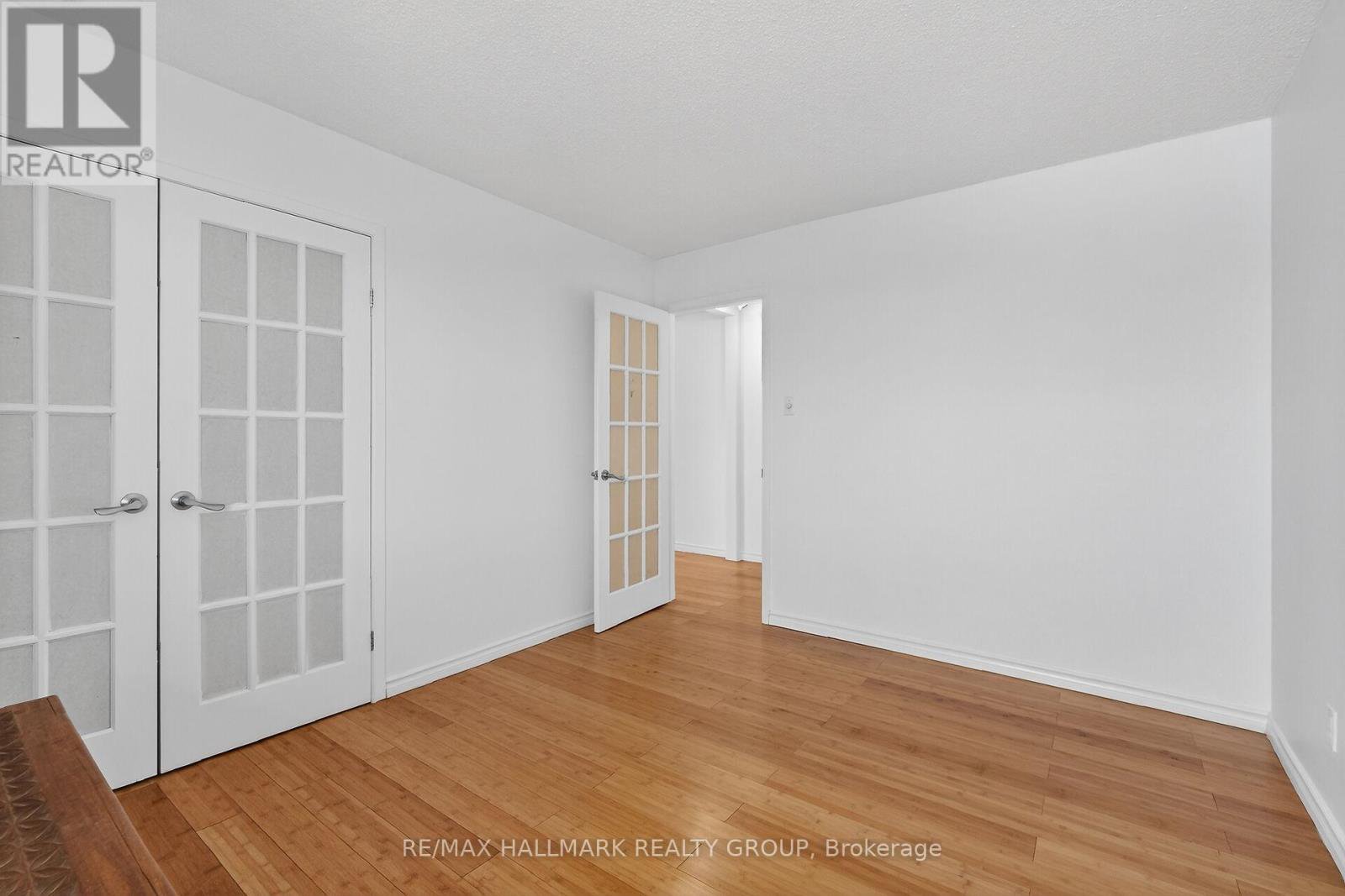Perched on the 14th floor, this exceptional corner condo offers peaceful panoramic views with sun-filled south and east exposures. Featuring the largest floor plan in the building at just over 1,000 sq. ft., this residence stands out for both size and versatility. Enjoy two separate balconies, perfect for morning coffee or unwinding at sunset. Originally designed as a 2-bedroom plus den, the current owner removed a wall to create an expansive, studio-style primary retreat with den, ideal for those craving an oversized bedroom. Prefer a dedicated workspace or guest room? Easily reinstall the wall to restore a private den or third bedroom with direct balcony access. The suite features updated flooring throughout (carpet-free), an updated, modern bathroom with a walk-in shower, and a generous ensuite storage/pantry. Underground parking is included. The building offers outstanding amenities, including an indoor pool, full fitness centre, and even a convenience store on site, perfect for days you don't want to step outside. An unbeatable, super walkable location puts public transit just one minute away, a modern Loblaws across the street, four nearby parks, schools, and Montfort Hospital all within easy reach.