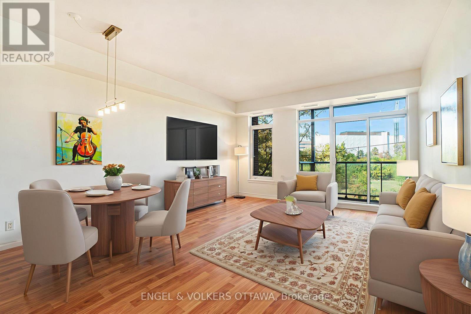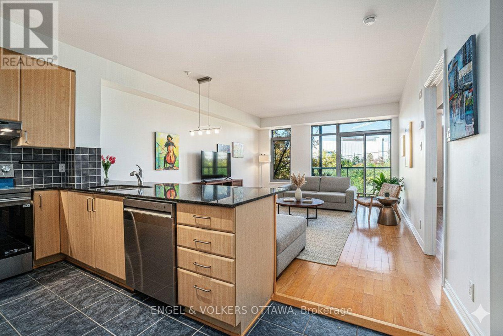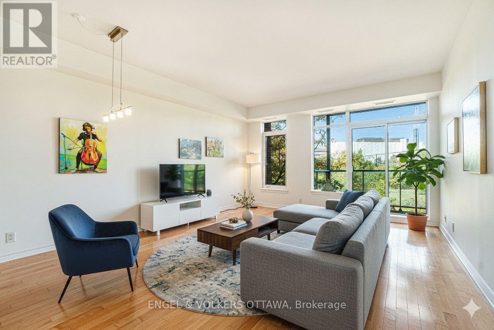 Welcome to Sussex Square, where sophistication meets lifestyle in the most tranquil part of Lowertown. Surrounded by embassies, green spaces, and the historic charm of old Bytown, this exceptionally managed building offers a rare opportunity to live in one of the city's most desirable locations. Just minutes by foot to Global Affairs Canada, Parliament Hill, New Edinburgh's Stanley Park, and the banks of both the Ottawa and Rideau Rivers, the convenience is unparalleled. 205 Bolton makes a striking impression with its high curb appeal and beautifully maintained grounds, including a serene water feature and inviting common spaces. Residents enjoy access to a refined main lobby, a welcoming social lounge with kitchen and patio, a rooftop terrace with barbecues and sweeping views of Parliament Hill, as well as a top-tier fitness centre. With three elevators, secure underground parking, well-lit locker rooms, bike storage, and thoughtful building management, every detail has been considered to elevate the experience of home. This particular one-bedroom has oversized windows, soaring nine-foot ceilings, and one of the most appealing layouts in the building with 760 sq ft as per builder plans (Arcadia model). The private balcony is a perfect retreat, while the spacious primary living area has room for home office or creative space. The modern kitchen is accented with granite counters and blends seamlessly with the open living area, complete with hardwood floors, and in-suite laundry. The home also includes an oversized underground parking space and a dedicated storage locker for added convenience. With heat and water included in the monthly maintenance fees and the status certificate already ordered, this residence presents a turn-key opportunity to embrace the best of downtown living in an elegant and well-appointed setting. New stove and dishwasher w fresh paint. Parking space #88. Locker #A-171. Select images have been virtually staged for illustrative purposes.