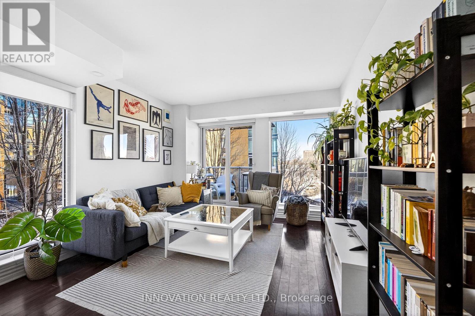 Welcome to this spacious and sun-filled one-bedroom, one-bath condominium offering an impressive 876 square feet of thoughtfully designed living space, complete with parking and a storage locker. Offered at **under $665 per square foot - more than 5% below the buildings recent past sales average** this home represents outstanding value in one of Ottawa's most exciting and rapidly evolving neighbourhoods. Engineered wood flooring flows throughout the open-concept layout, complementing the modern aesthetic and enhancing the sense of scale. Expansive floor-to-ceiling windows flood the space with natural light, creating an airy, welcoming atmosphere rarely found in one-bedroom condos. The generous living and dining area easily accommodates full-size furniture, making it ideal for both everyday living and entertaining large gatherings. The kitchen is a standout feature, equipped with new appliances, granite countertops, and a rare double-oven range, offering both style and functionality. The entrance area offers an abundance of storage and enough space for a home office/den. The bathroom features modern fixtures and marble countertops, providing a clean, contemporary feel. The well-proportioned bedroom offers excellent closet space and room for a king-size bed. Located in LeBreton Flats, the future home of the Ottawa Senators, this condo places you at the centre of one of the city's most transformative districts. Enjoy walking access to the LRT station, Canadian War Museum, downtown offices, and a wide variety of shops and restaurants. The Ottawa River and scenic pathways are just steps away, perfect for walking, cycling, and waterfront living. Building amenities include an indoor pool, fitness centre, and a rooftop patio with BBQs, perfect for entertaining or enjoying summer evenings, including views of Ottawa Bluesfest. A rare opportunity to own a generously sized condo at outstanding value in a landmark location with strong future potential.