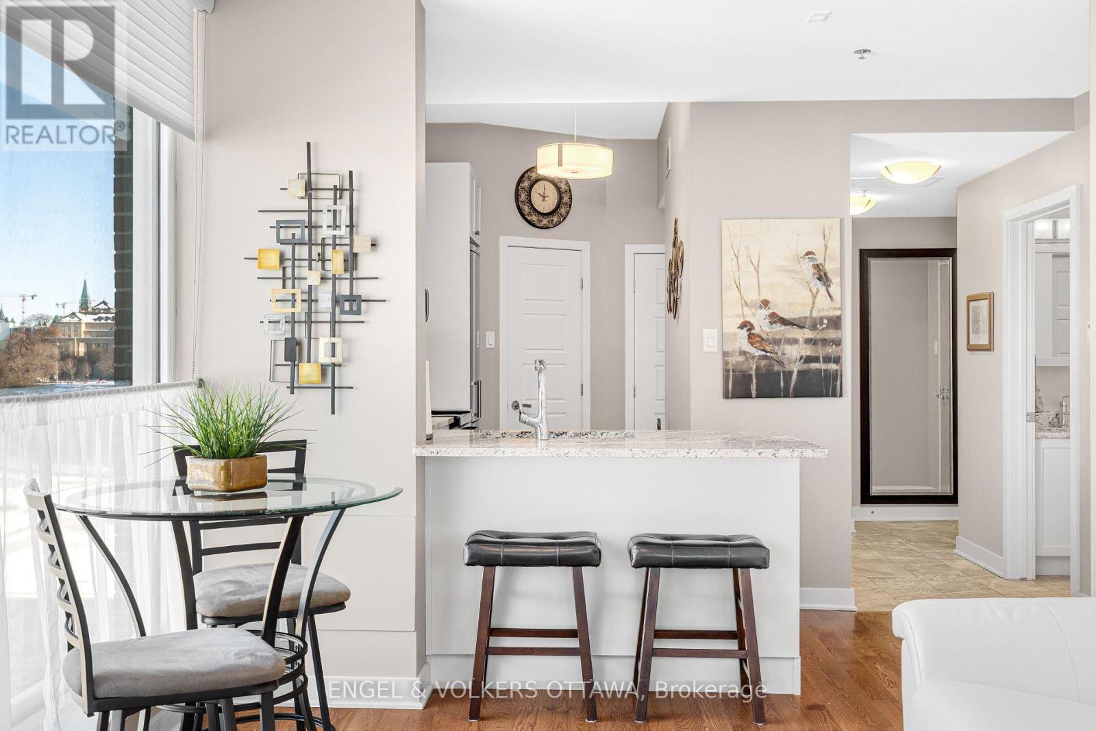 Welcome to Unit 806 at 300C Lett Street, a penthouse-level model offering approx. 728 square feet of efficient, modern living in a highly desirable community. This bright & airy corner unit features an open-concept layout that maximizes space & functionality, ideal for downsizers, professionals, first-time buyers, or investors seeking a premium unit.The kitchen has been enhanced with a smart conversion of the den into a dedicated pantry, providing exceptional storage & organization rarely found in units of this size. The living & dining space flows seamlessly & is complemented by large windows that fill the unit with natural light, made even more appealing by its elevated penthouse positioning.The bedroom is well-proportioned & offers a comfortable retreat, while the bathroom showcases clean, contemporary finishes. Every square foot of this condo has been carefully utilized to deliver comfort, style, & practicality. Residents of 300 Lett Street enjoy access to outstanding building amenities, including a stunning rooftop terrace with amazing views, a fully equipped gym, and an outdoor pool - ideal for relaxing or entertaining during the warmer months. Lebreton Flats is one of Ottawa's most dynamic & rapidly evolving neighbourhoods, perfectly positioned along the Ottawa River & surrounded by some of the city's most iconic destinations. Enjoy easy access to scenic river pathways, parks, & waterfront views, all just steps from your door. The area offers exceptional walkability to downtown amenities, including Parliament Hill & Sparks Street, while also providing quick connections to the vibrant dining & cultural scenes of Little Italy, Chinatown & Hintonburg. Nearby LRT access & excellent transit options across the city to destinations such as the University of Ottawa, the Rideau Centre & even the Ottawa Airport is effortless. Lebreton Flats seamlessly blends urban convenience, natural beauty, & cultural energy, making it one of Ottawa's most desirable places to live.